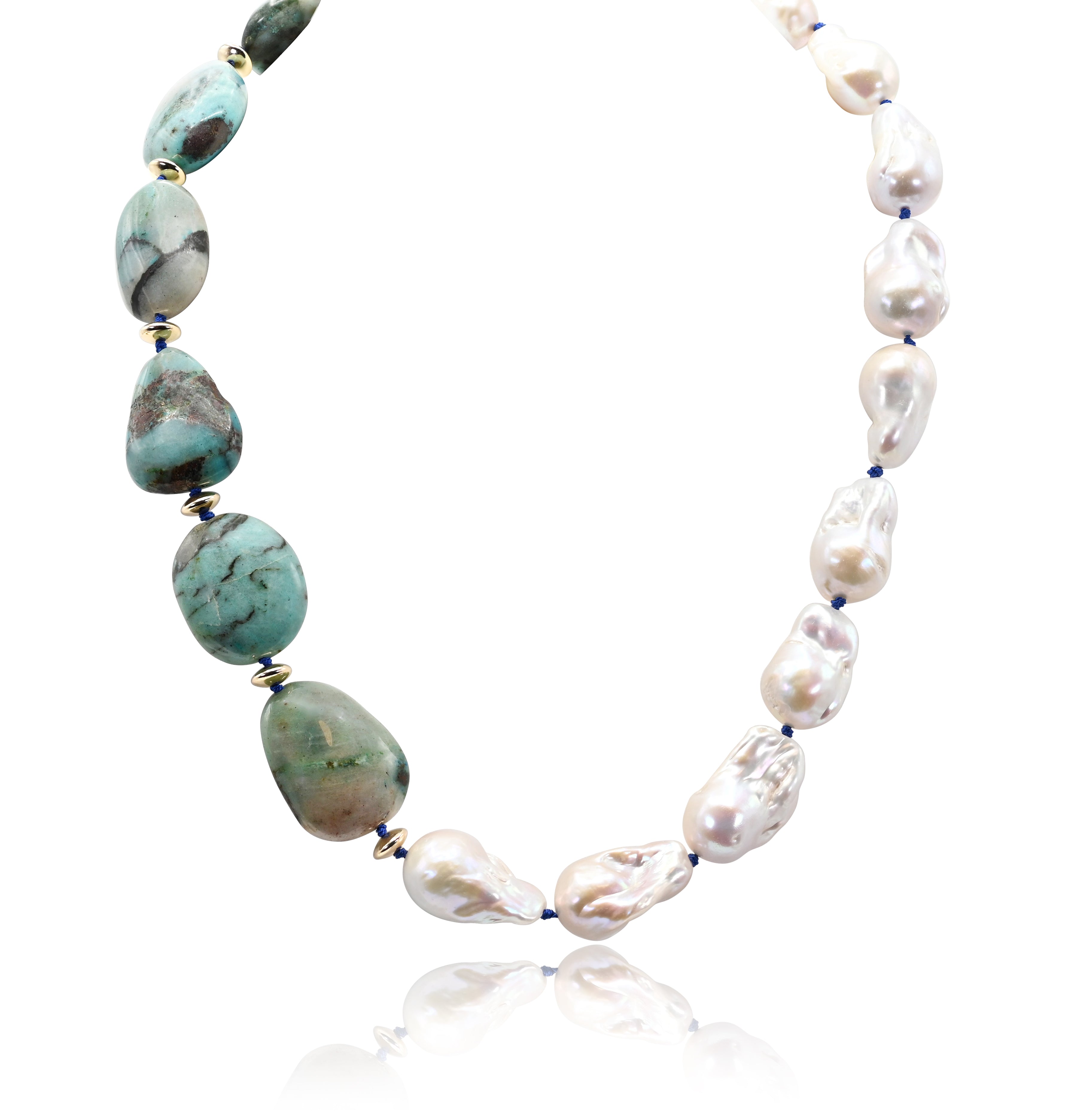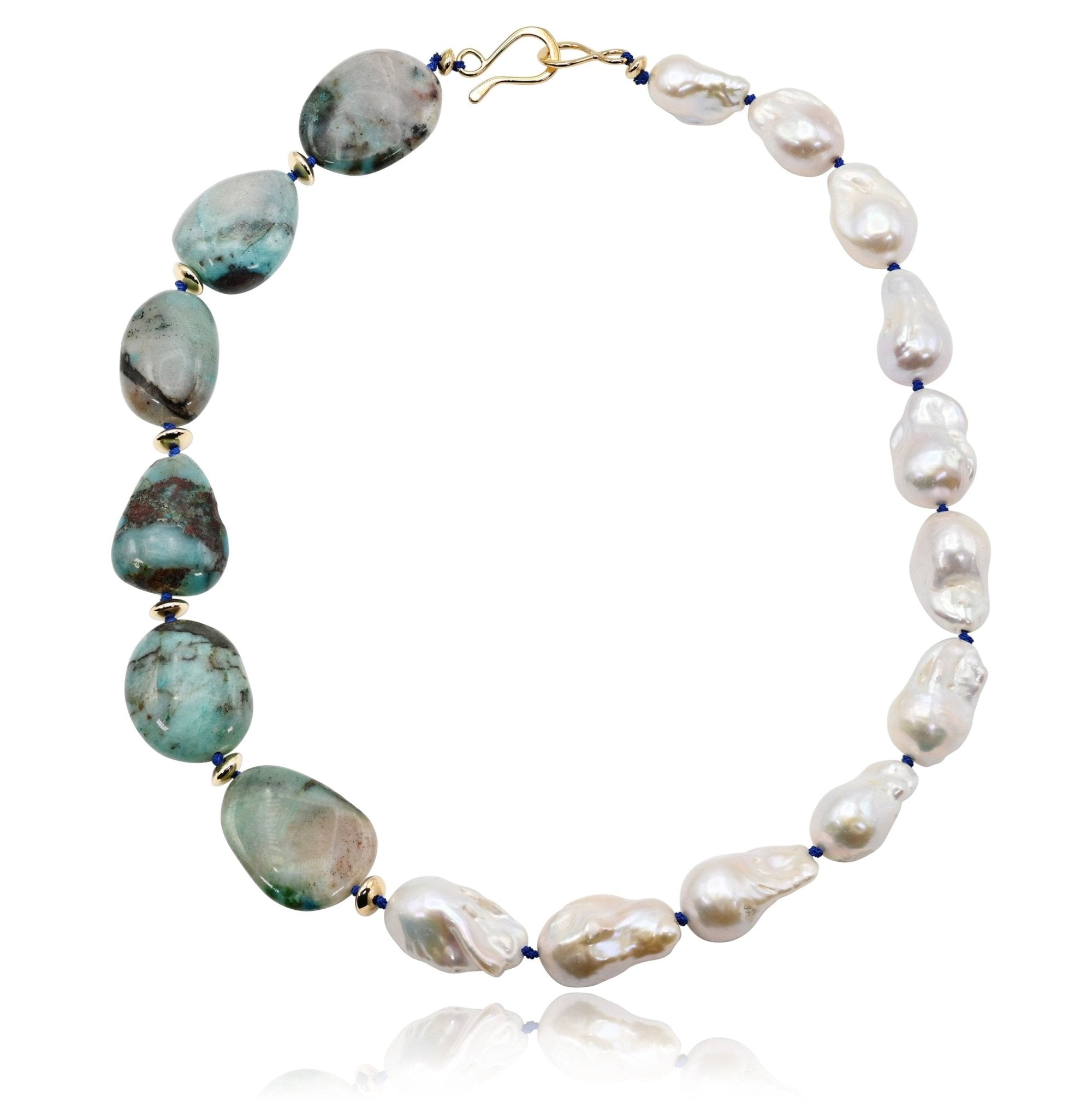 Adina Large Chrysocolla Baroque Pearl Chunky Necklace