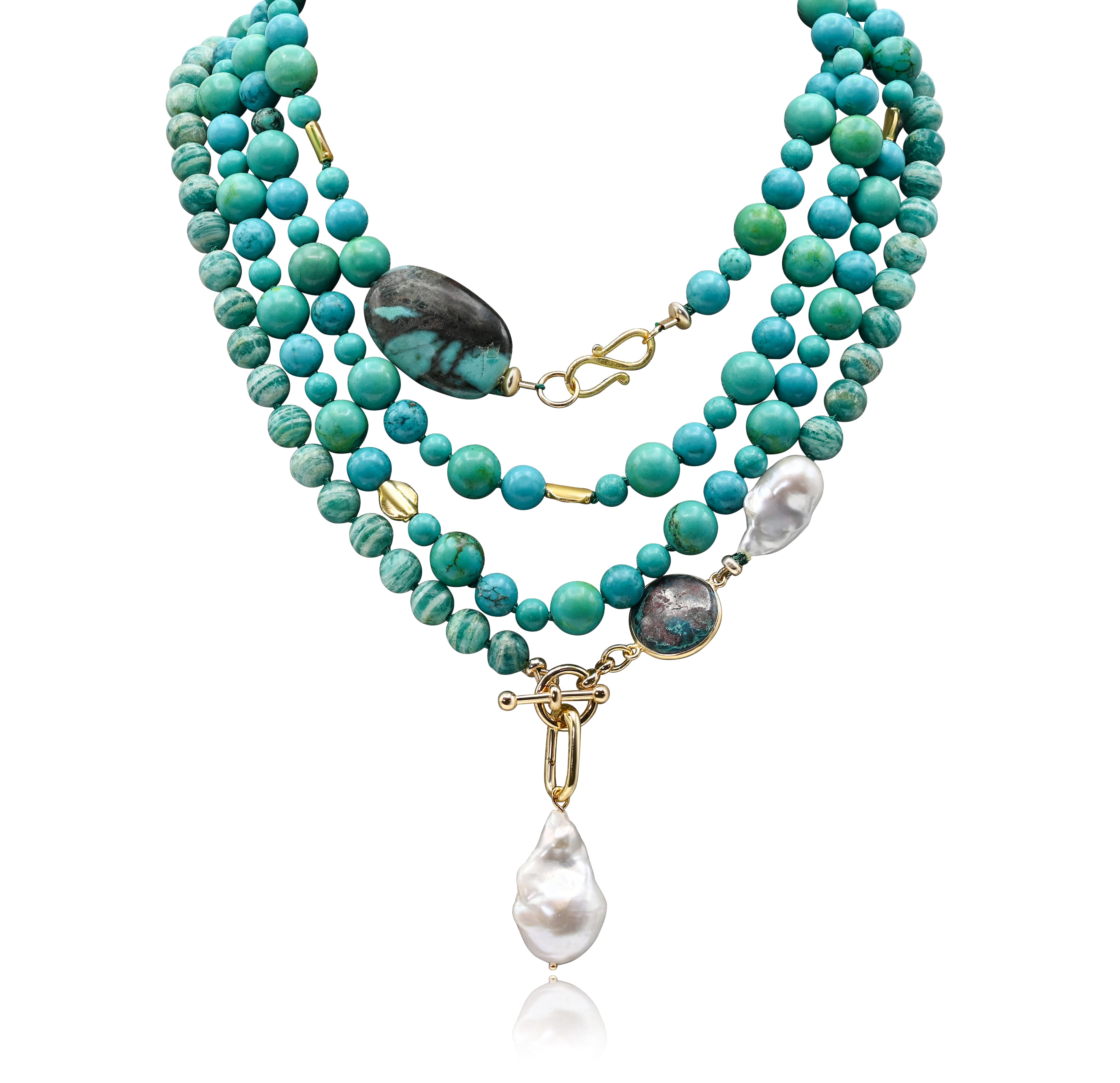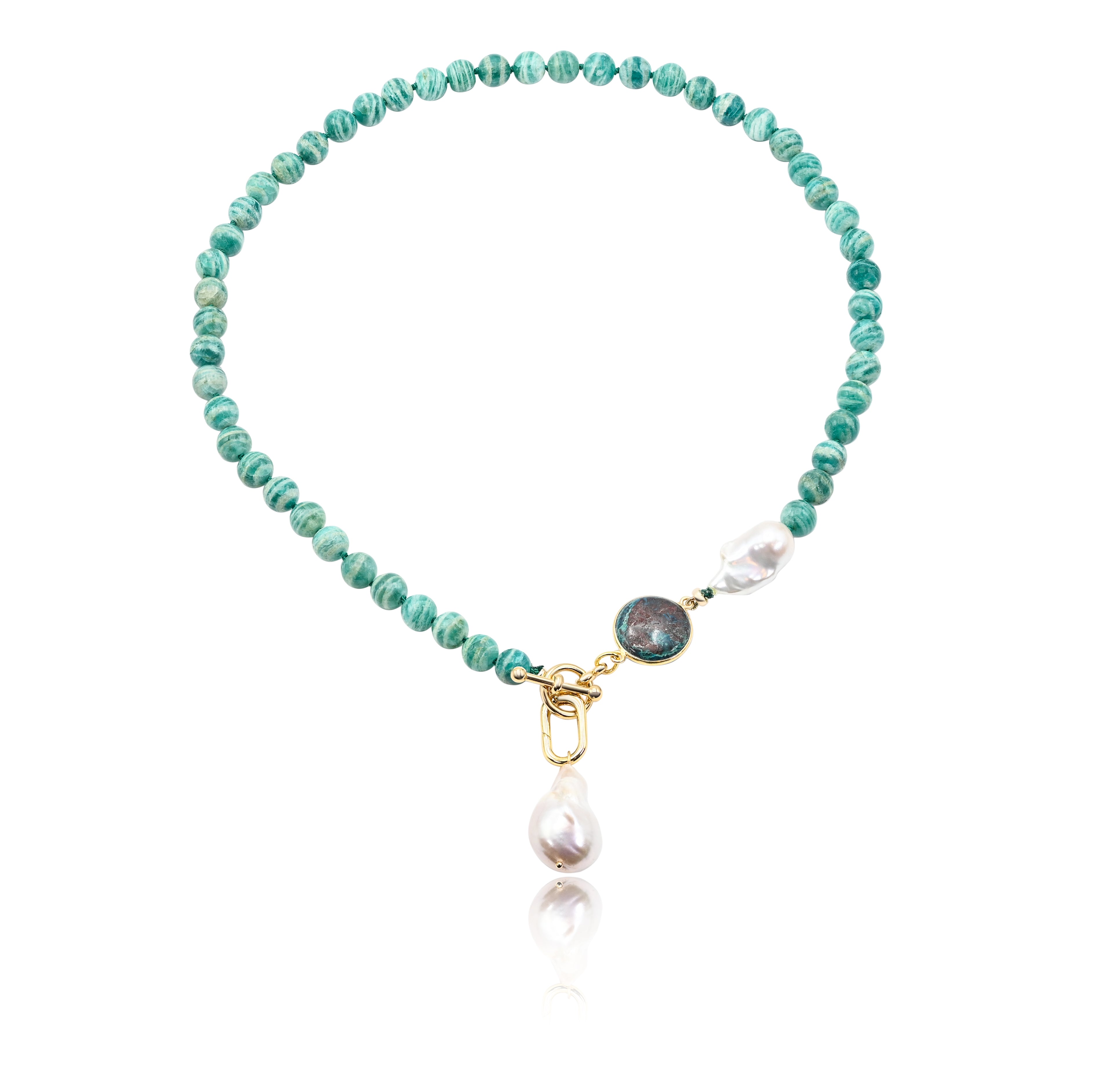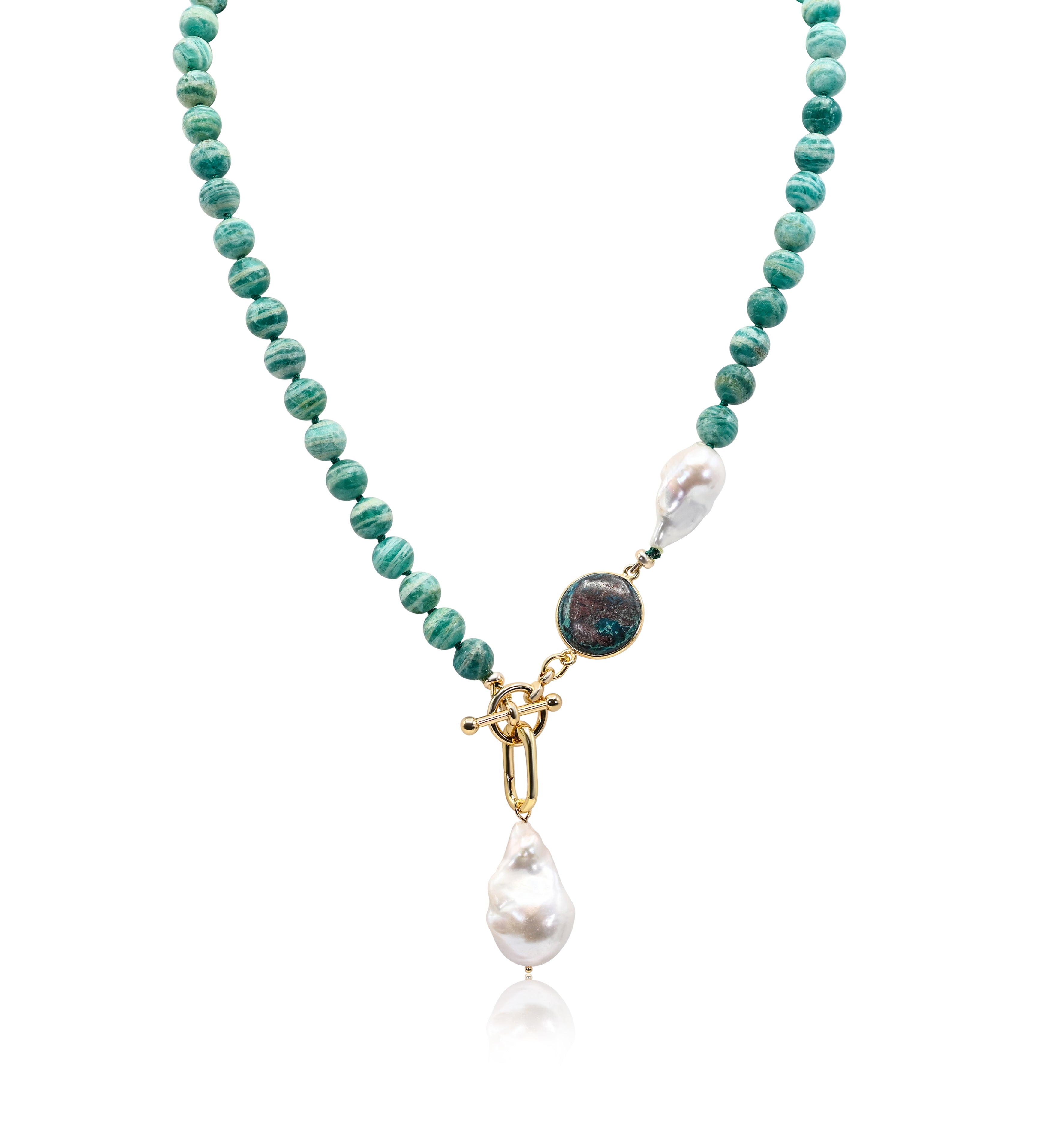 Aliya Russian Amazonite Baroque Pearl Chrysocolla Necklace