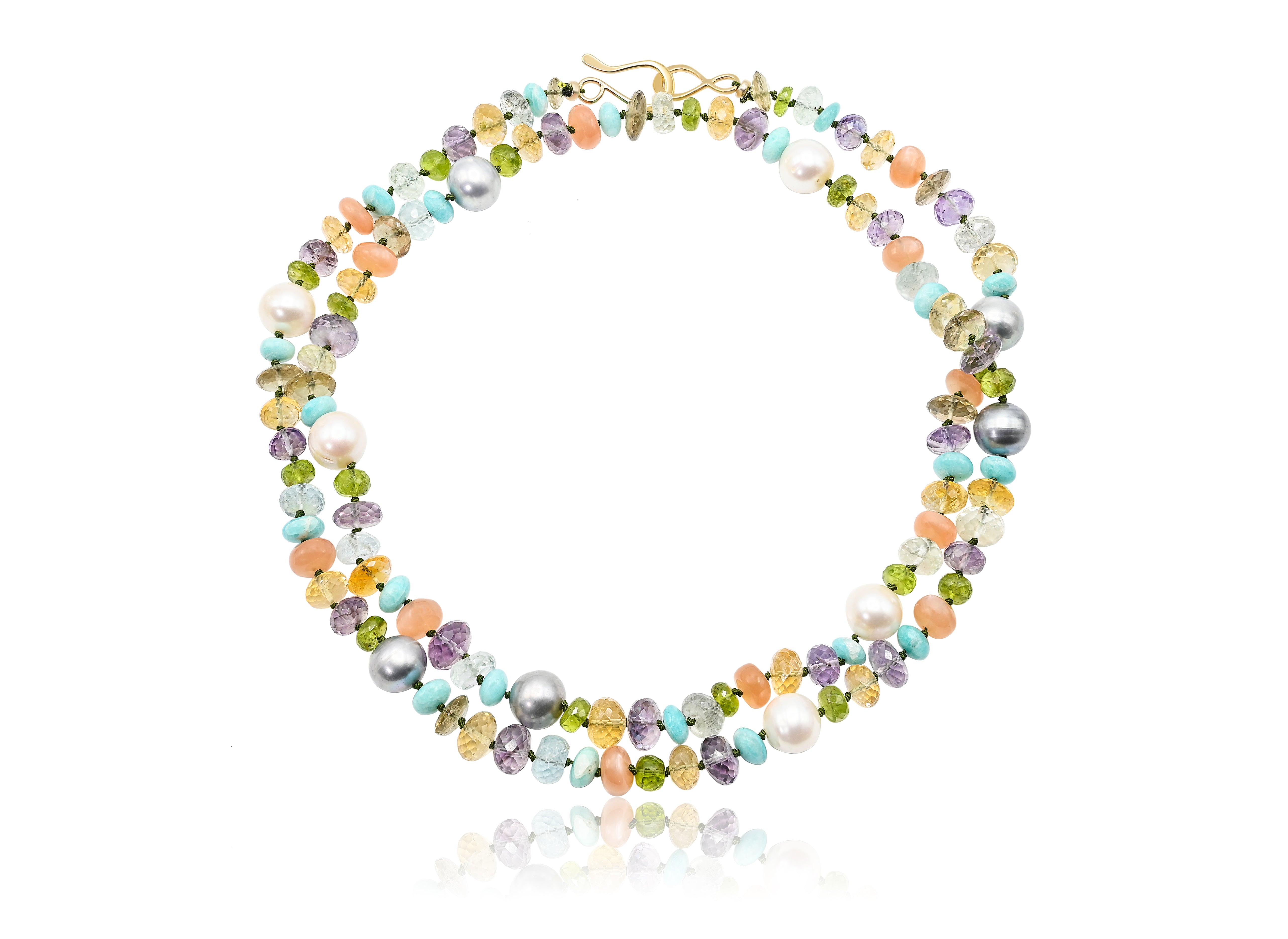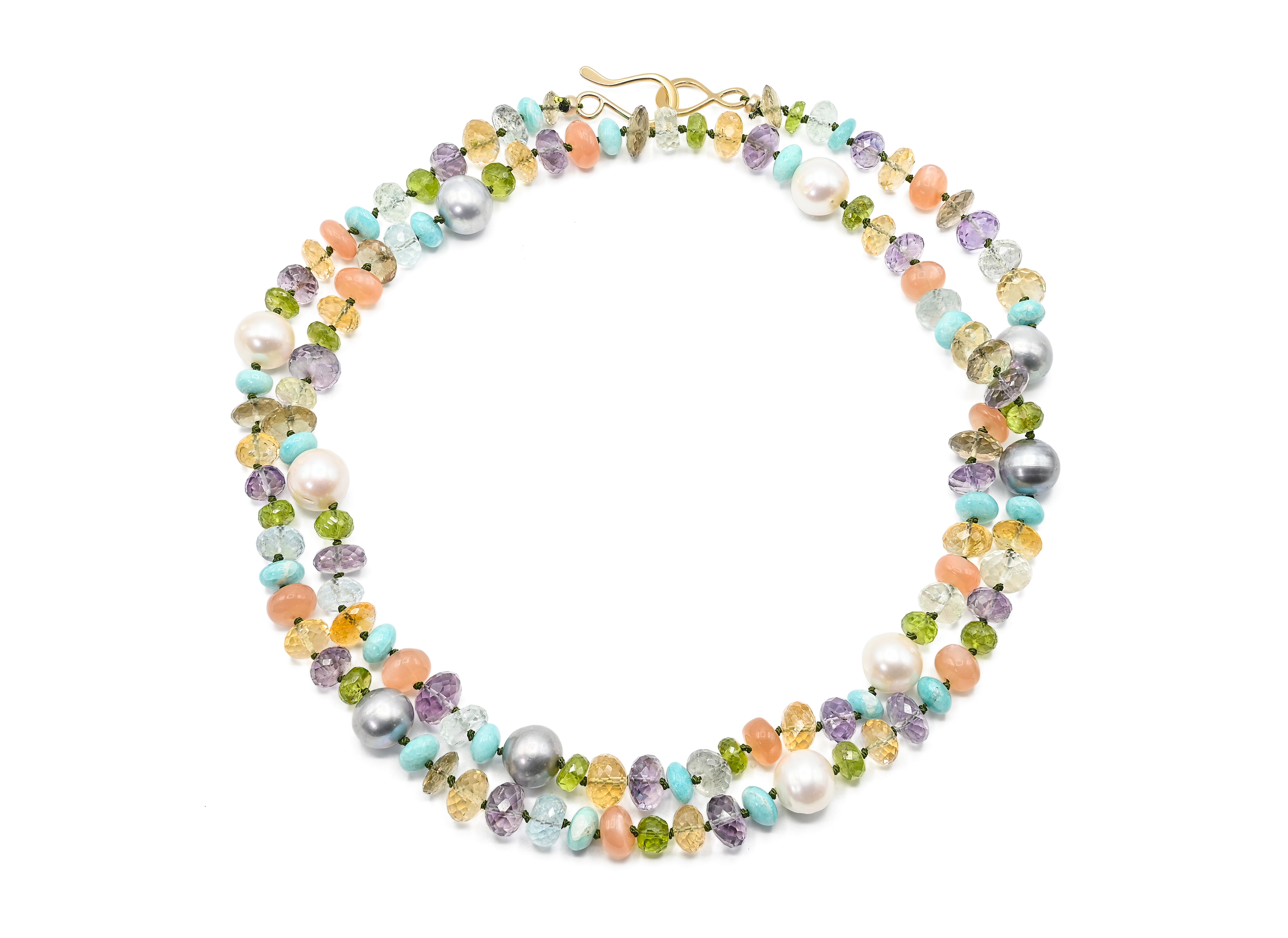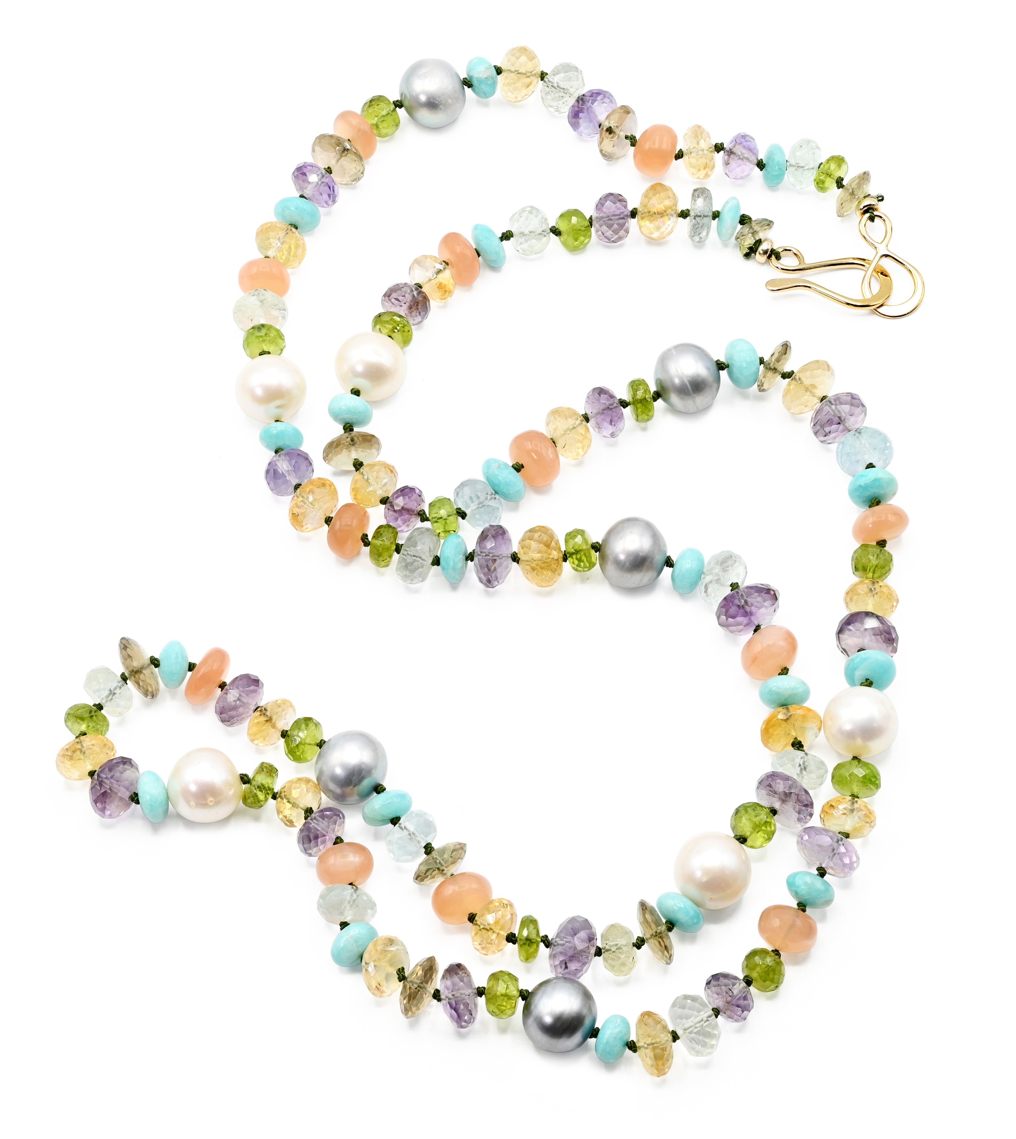 Gem Stones: Amazonite, Amethyst, Fresh Water Pearl, Peridot, Peach Moon stone and Citrine.