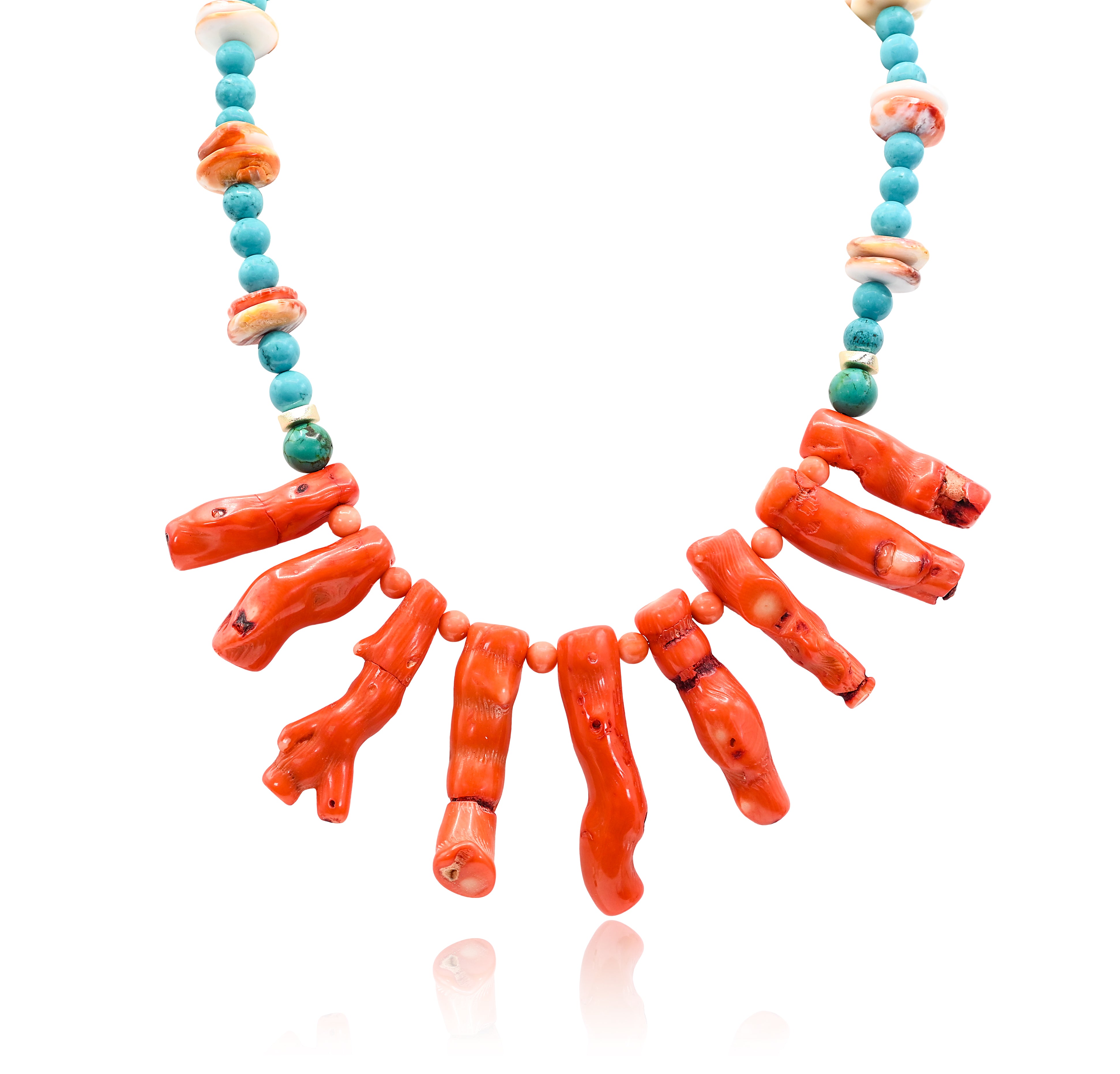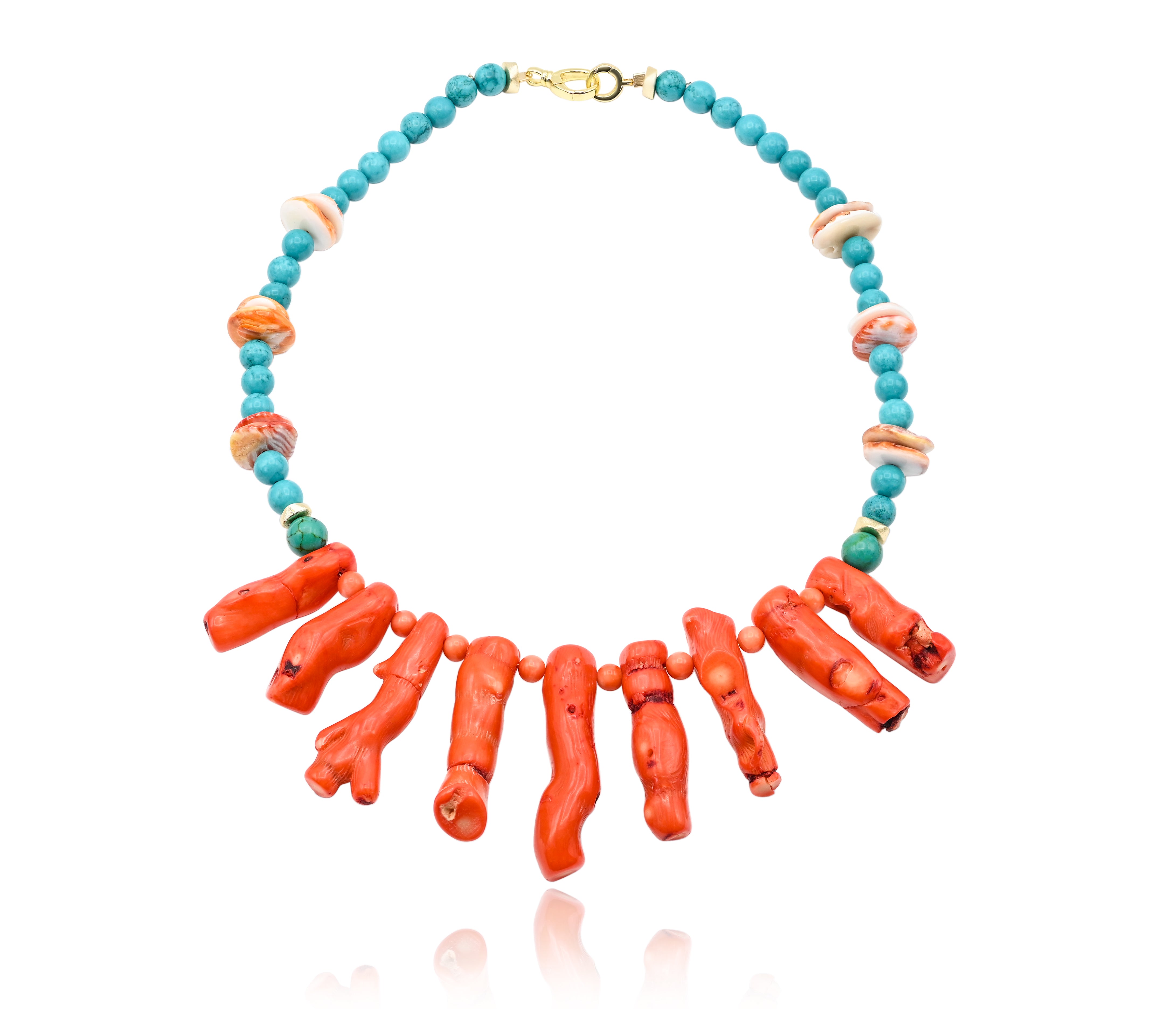 Emily Large Bamboo Coral Turquoise Beads Necklace.