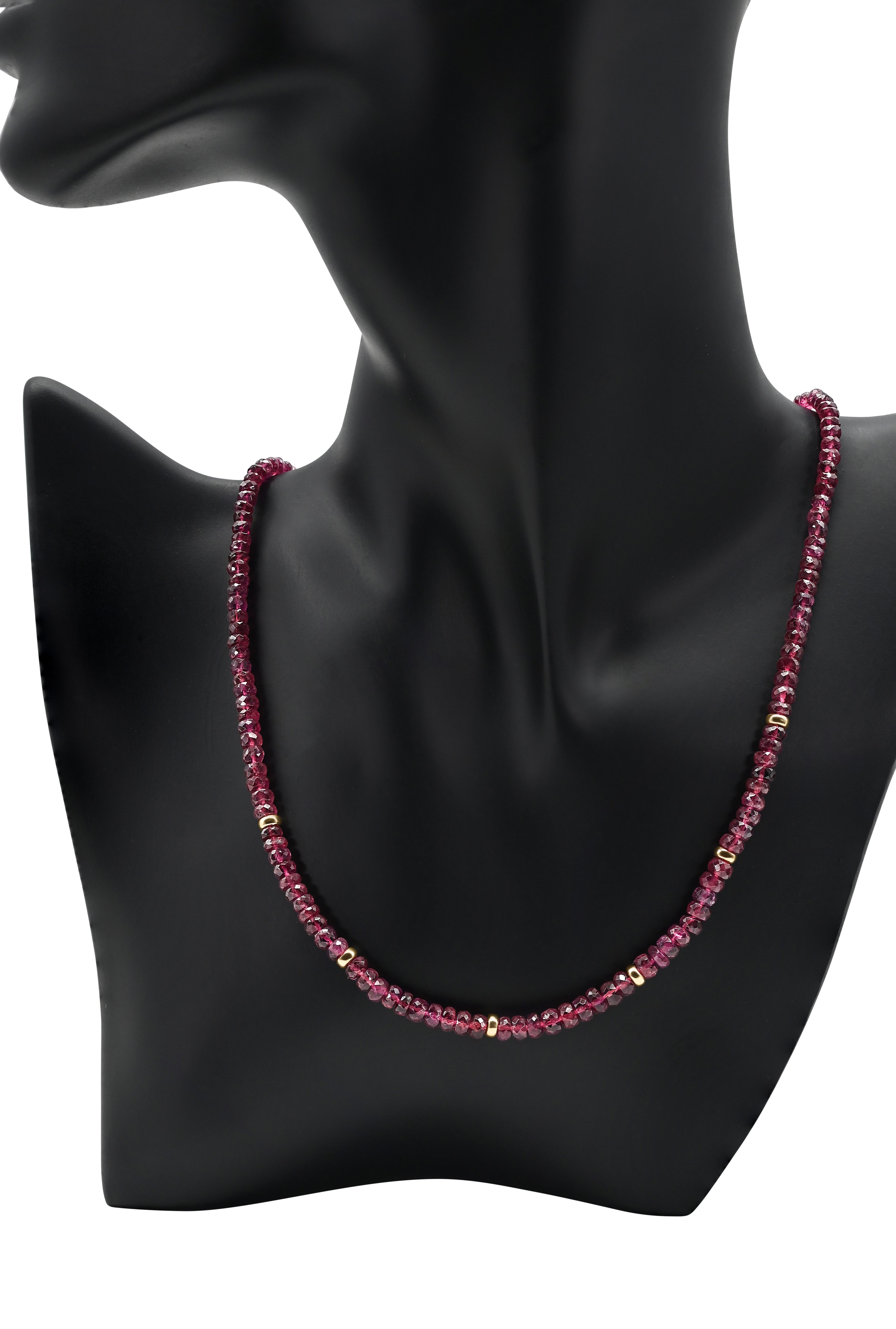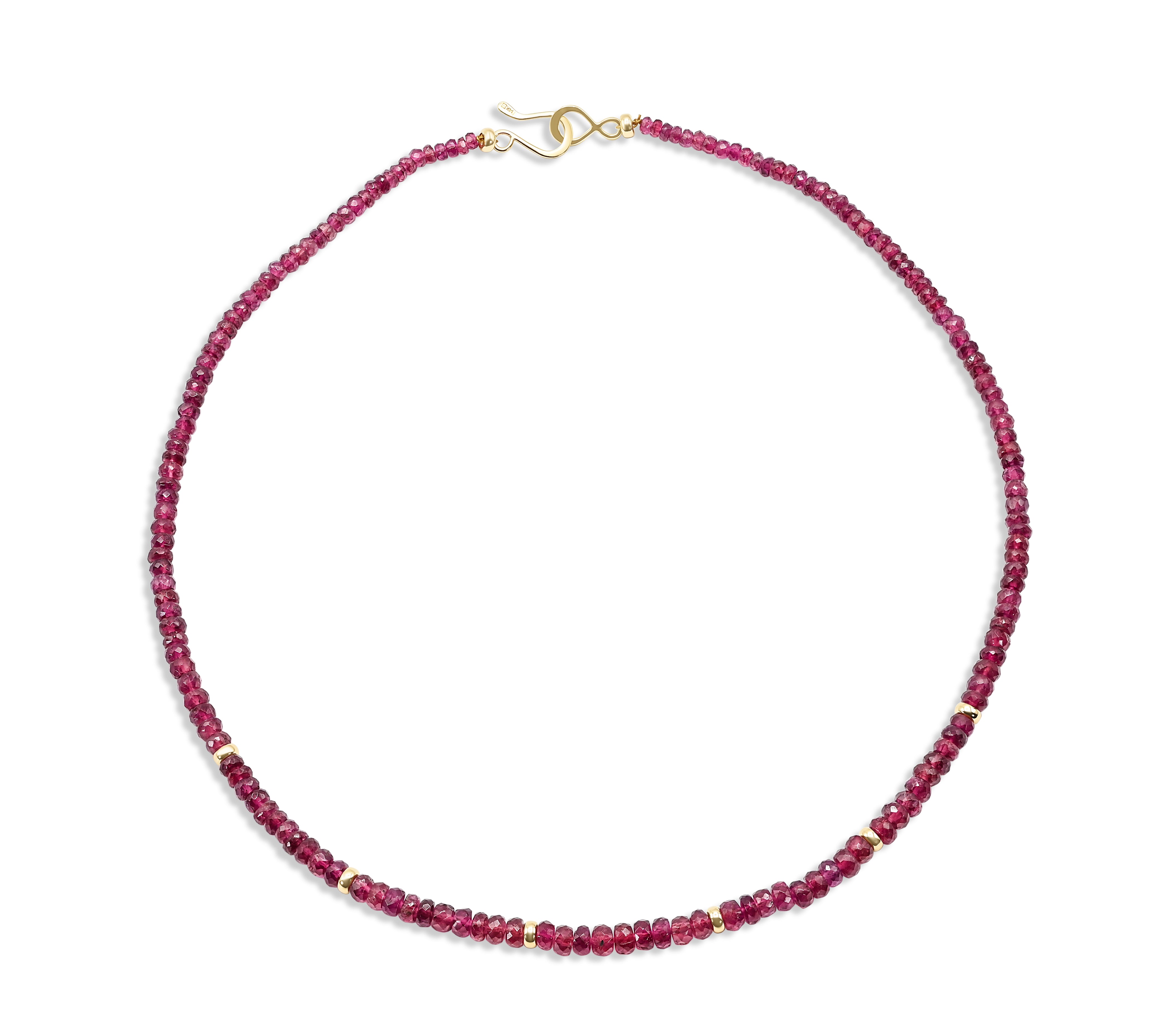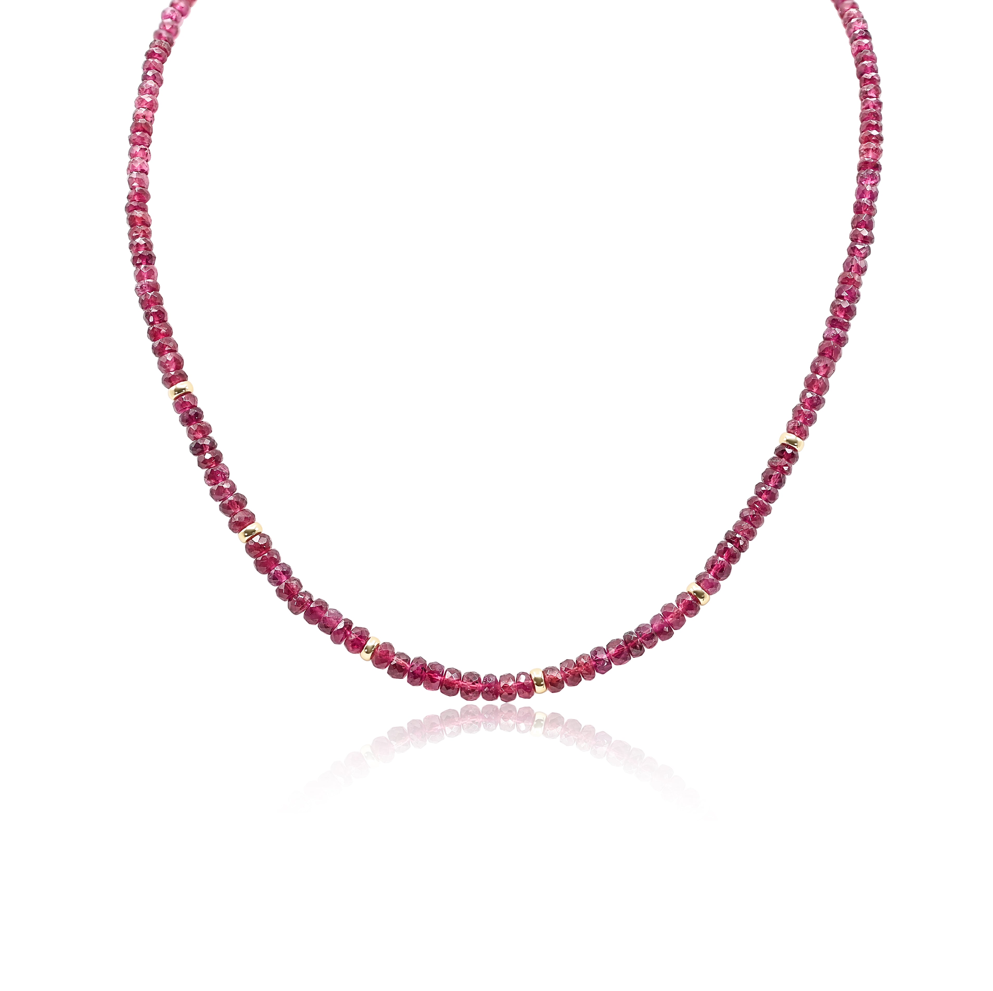 Faceted Natural Rubellite Rondell 14K Gold Beads Necklace