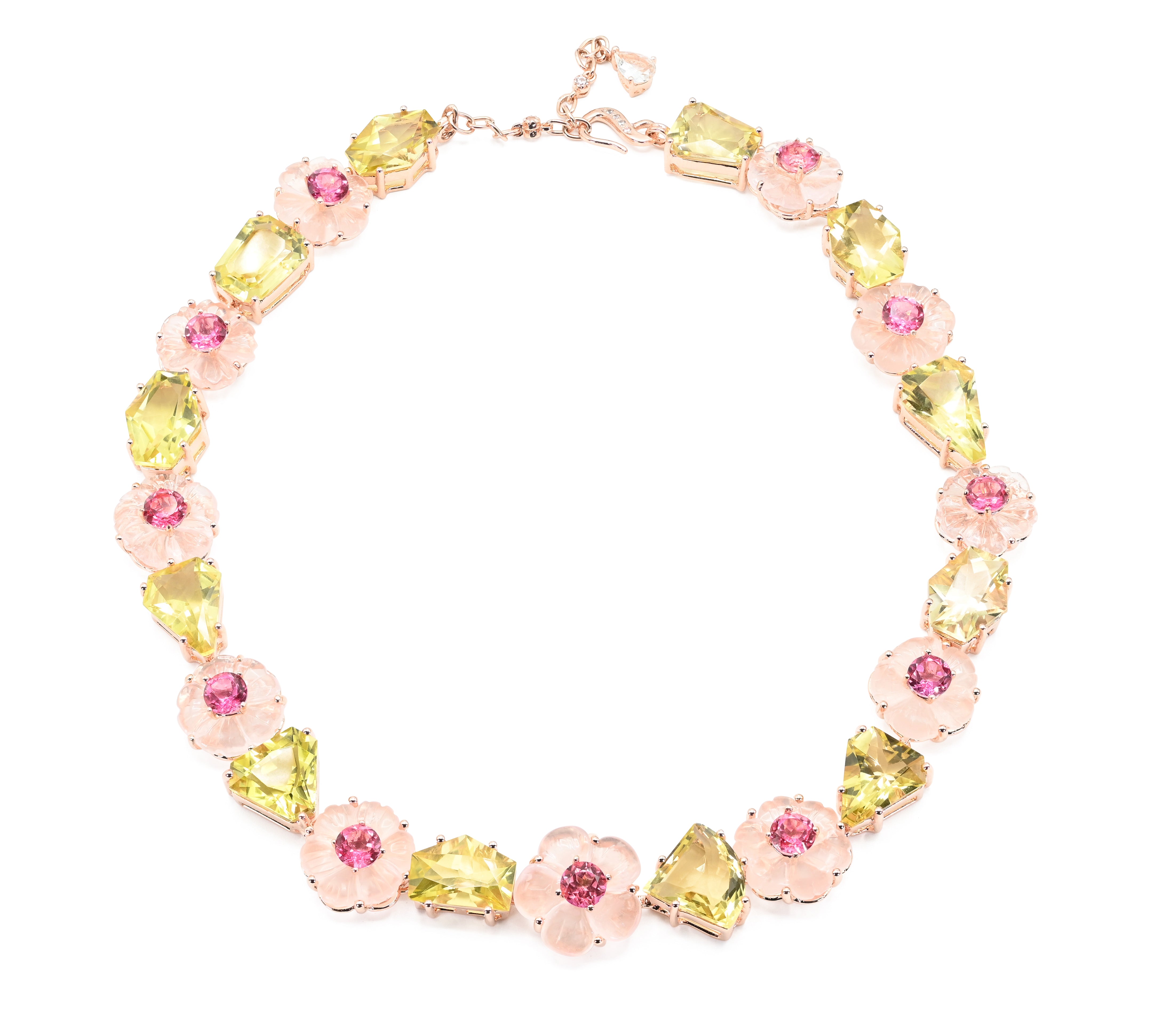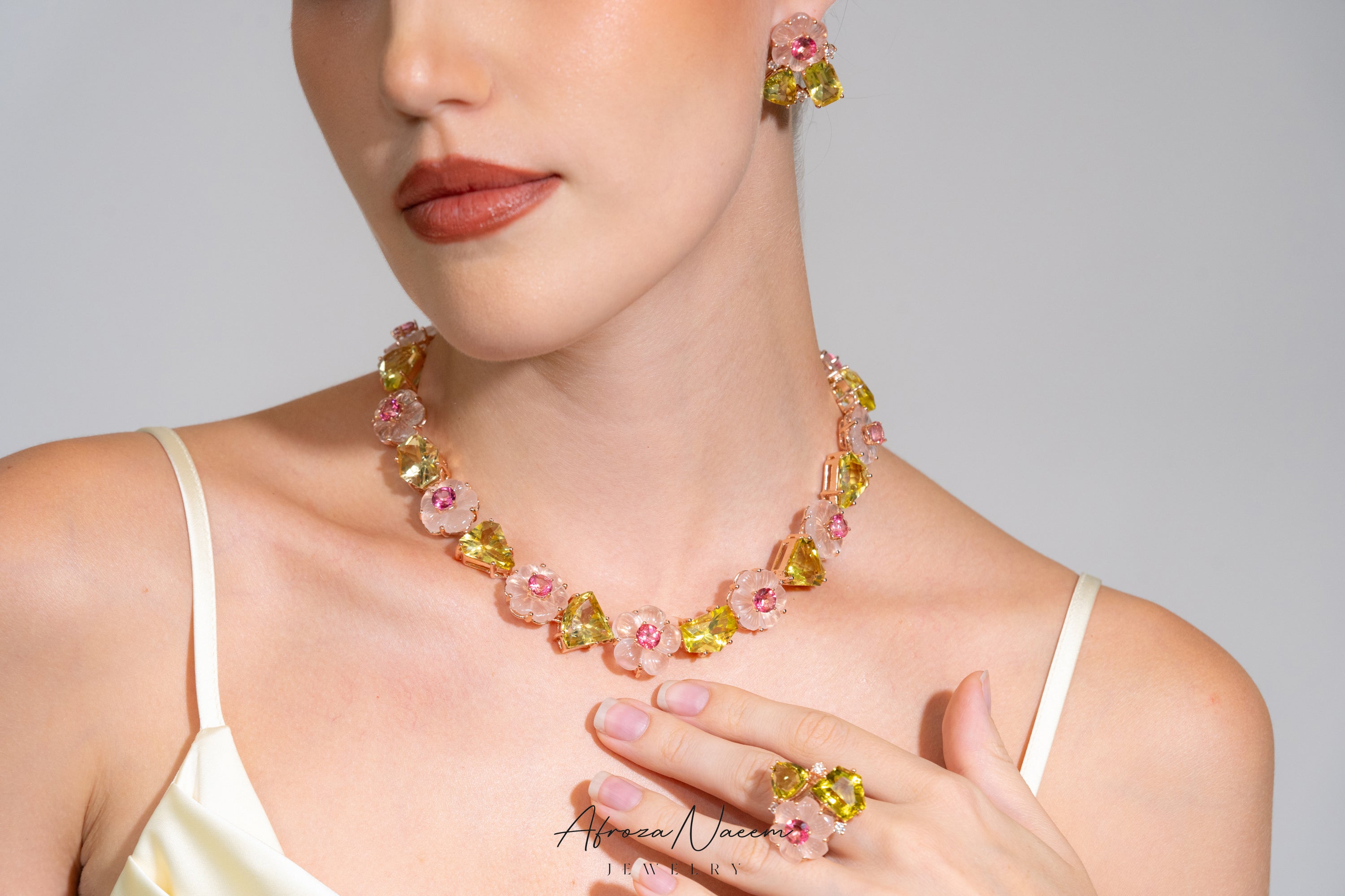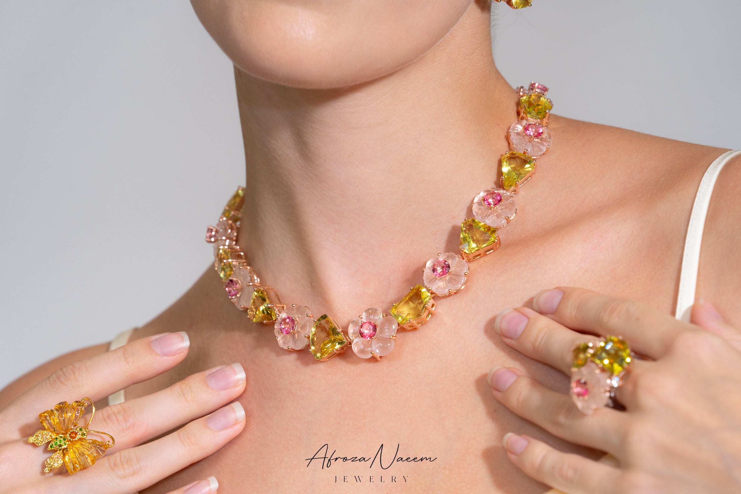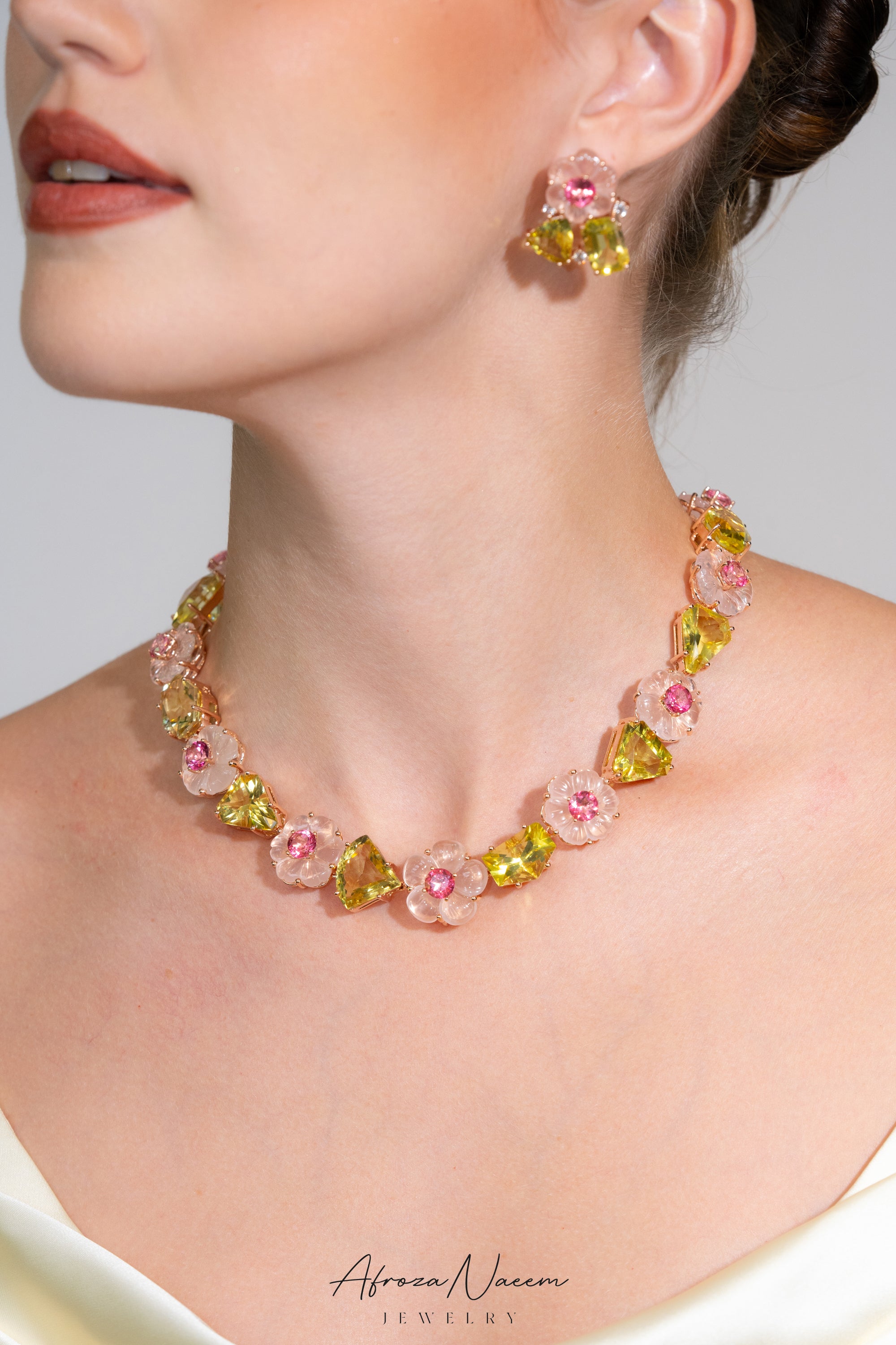 Gemstones: Hand Carved Rose Quartz , Lemon Quartz , Pink Topaz