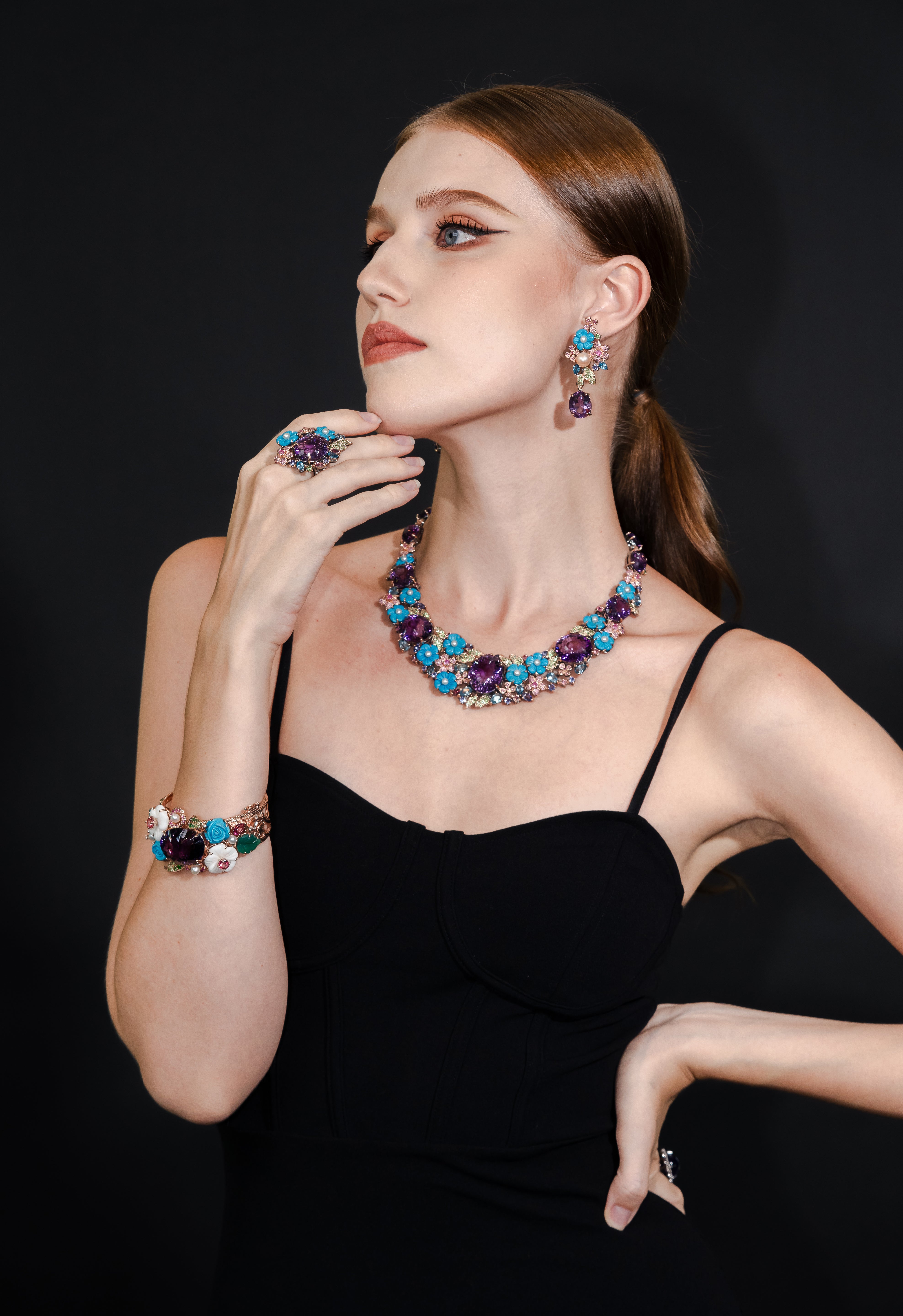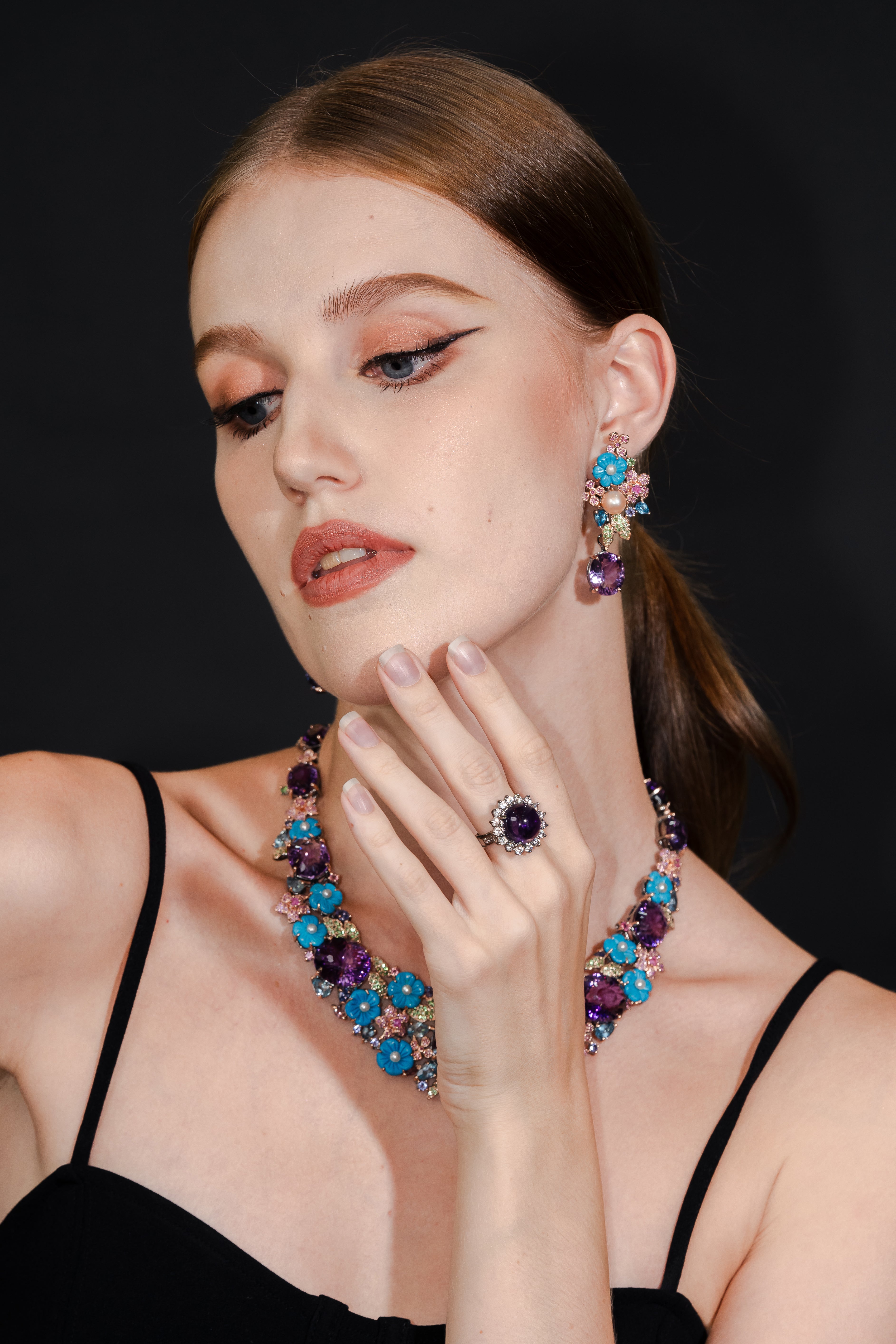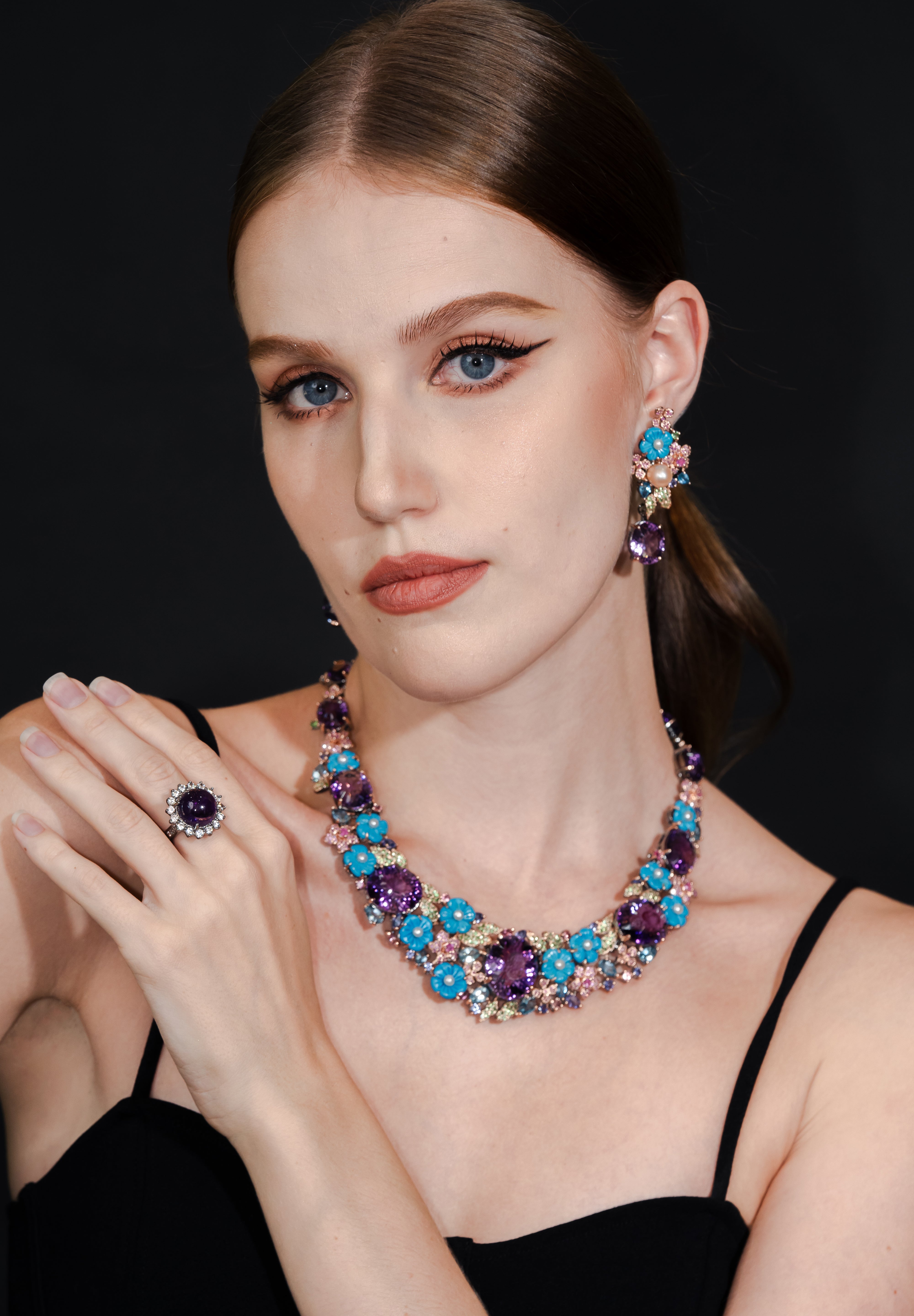 Gemstones: Amethyst, Turquoise, Pearl, Pink Sapphire, Tourmaline, Blue Topaz.