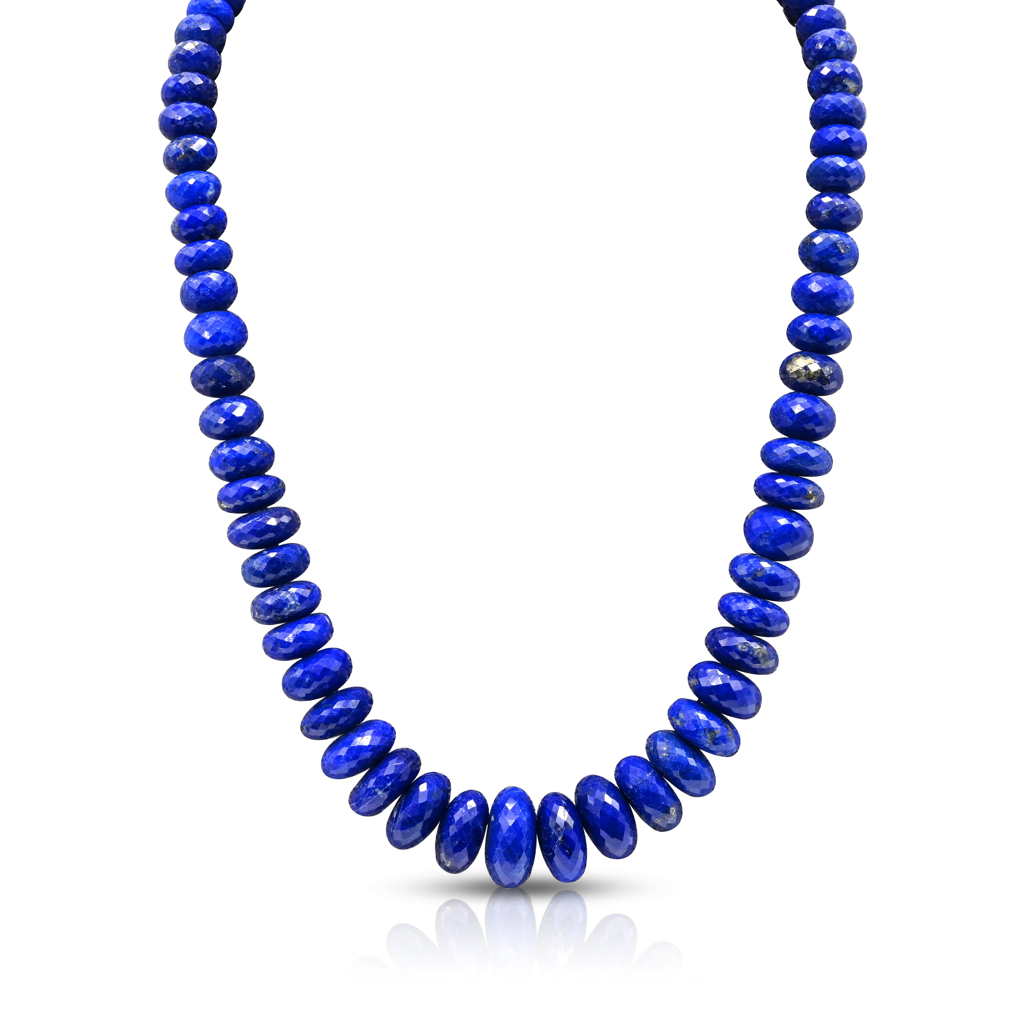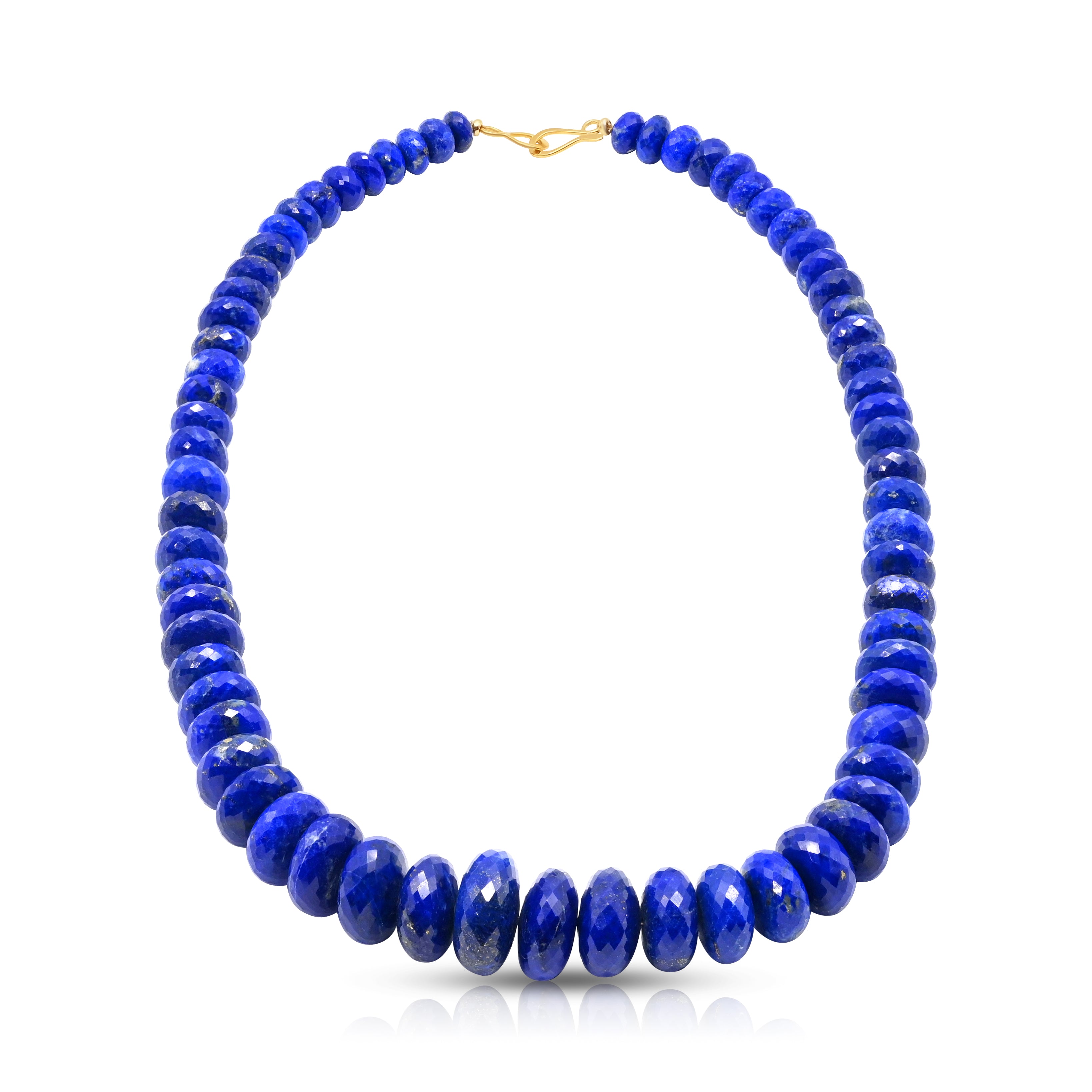 Large Faceted Rondelle Lapis Lazuli Bead Necklace w/ 14k Yellow Gold Clasp