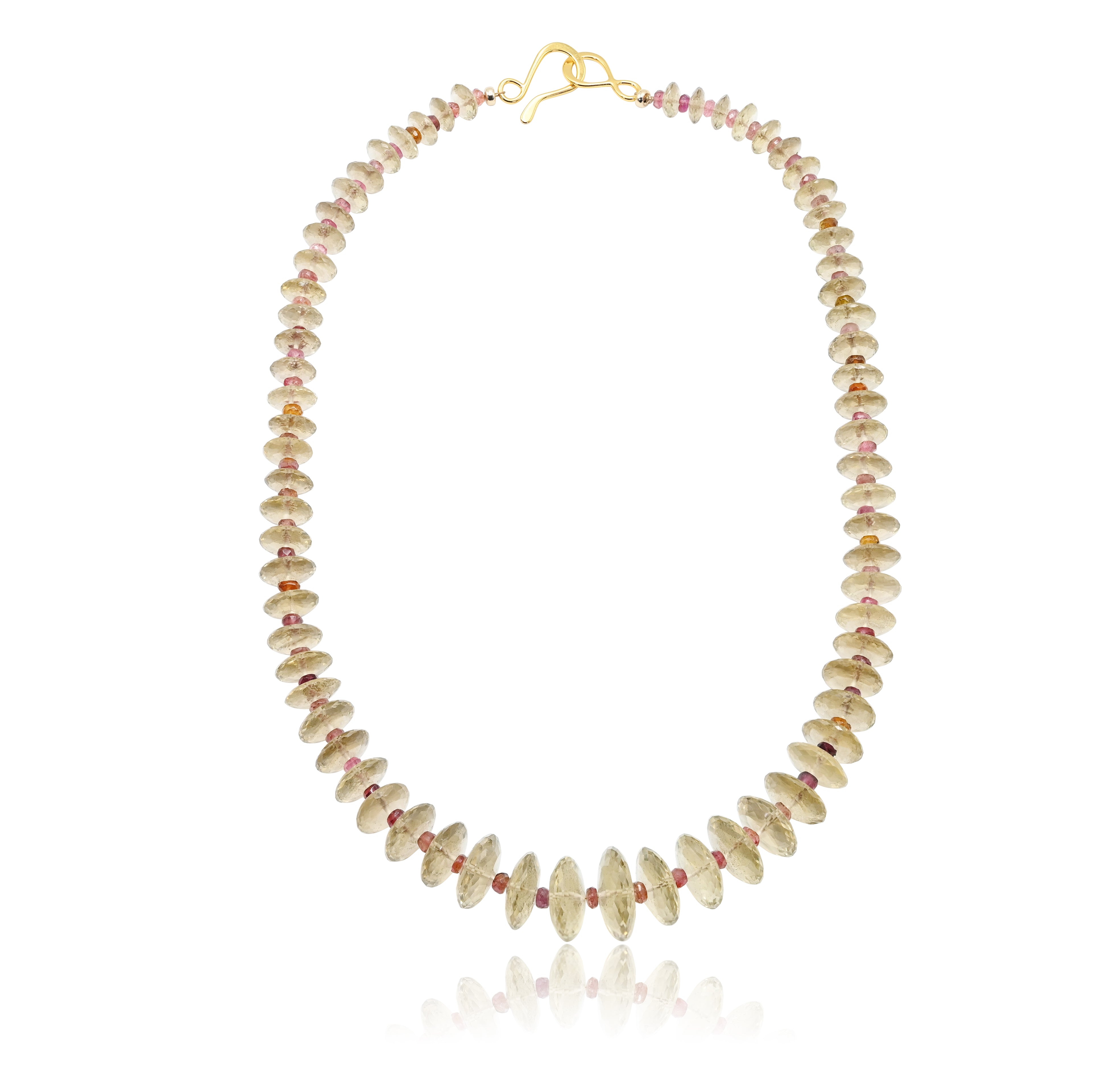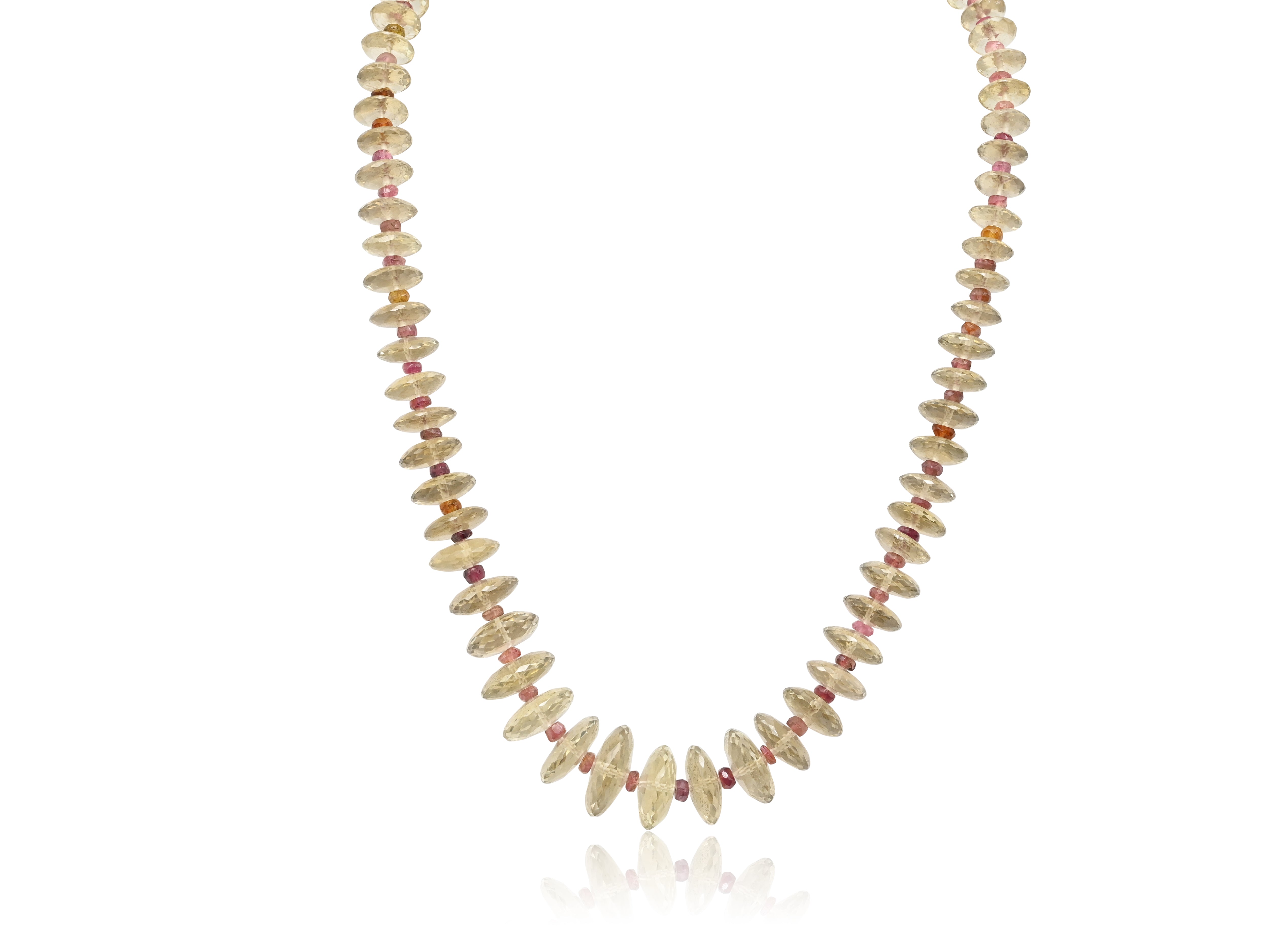 Lemon Quartz & Tourmaline Faceted Disc Bead Necklace