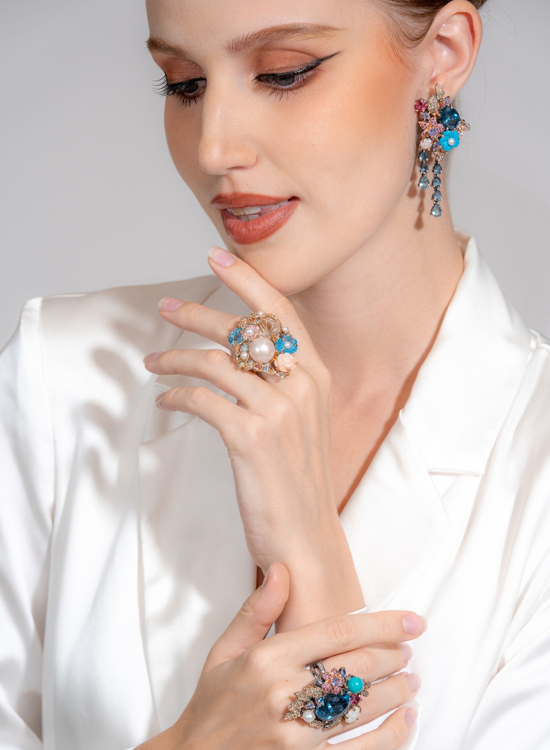 London Blue Toaz, Turquoise, Pink Topaz and Pave set Sapphire.