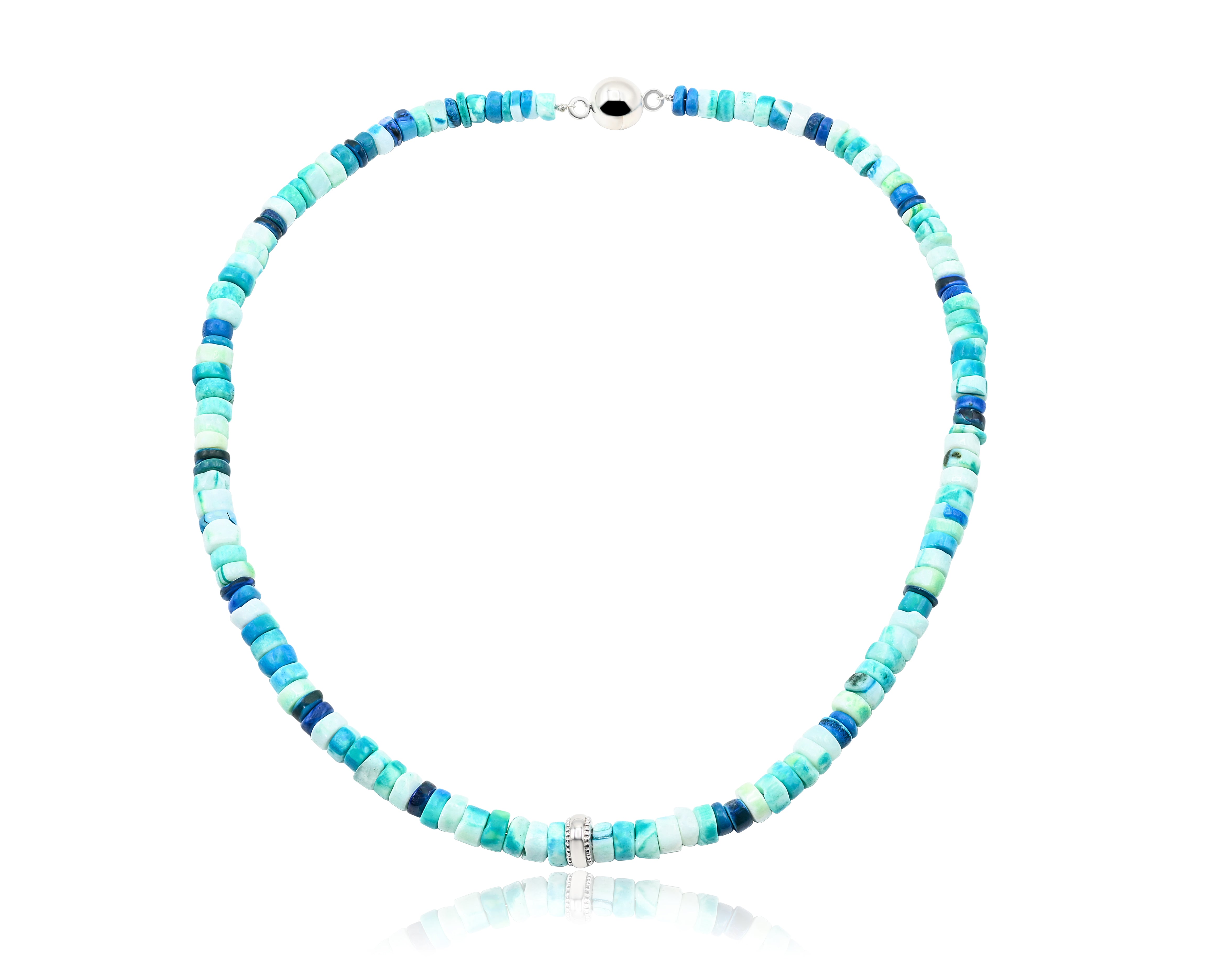 Men's Mix Blue Opal Sterling Silver Beads Necklace