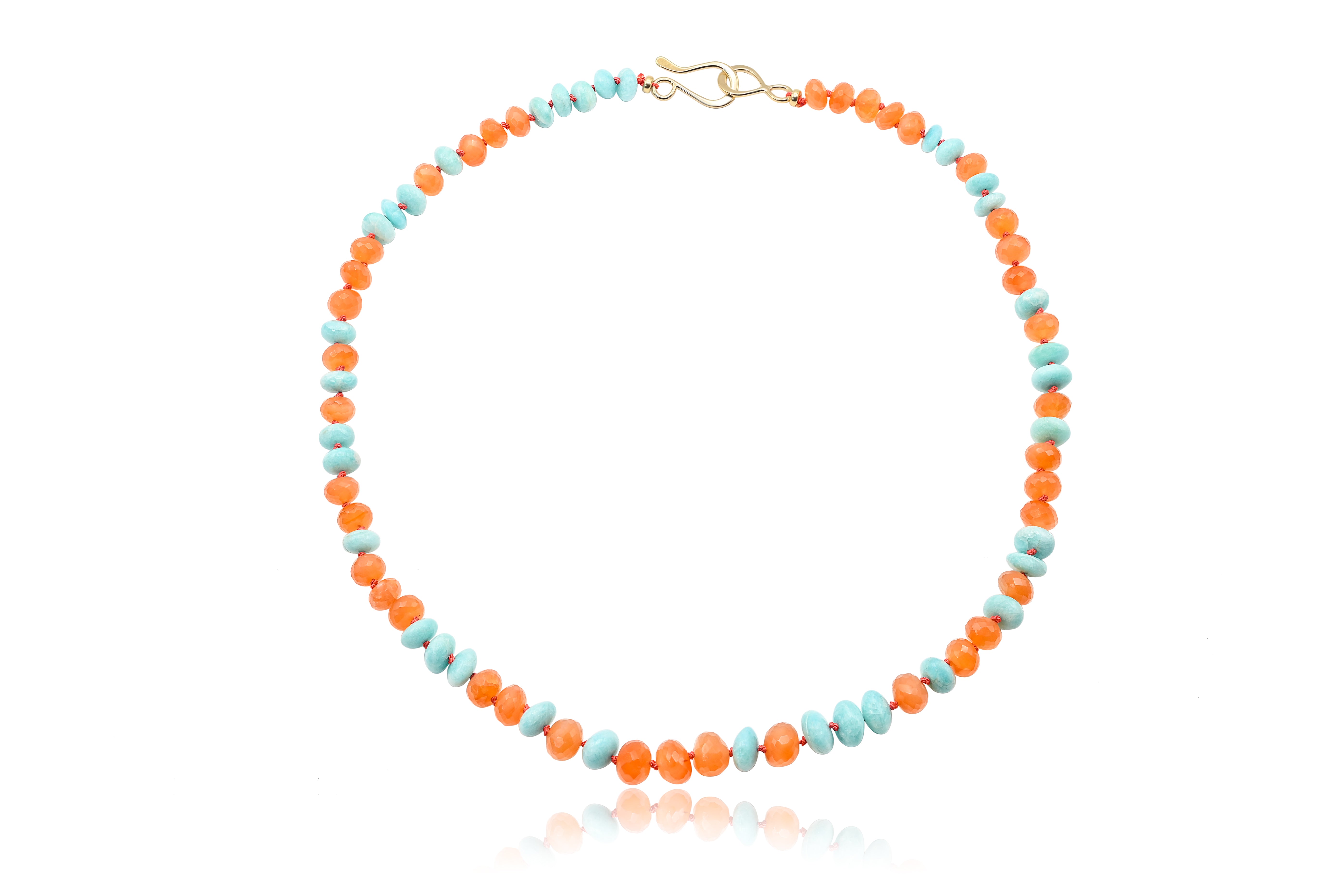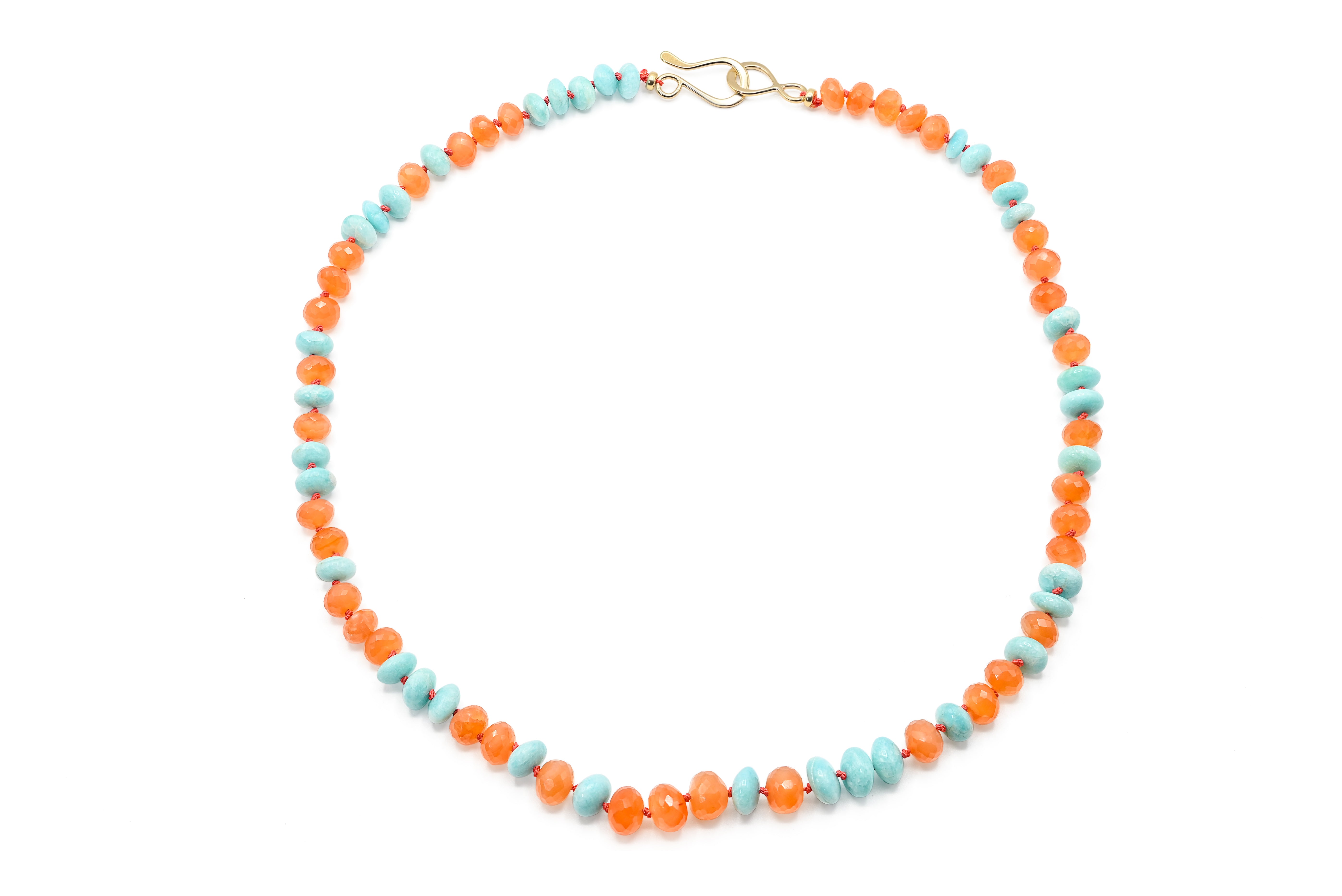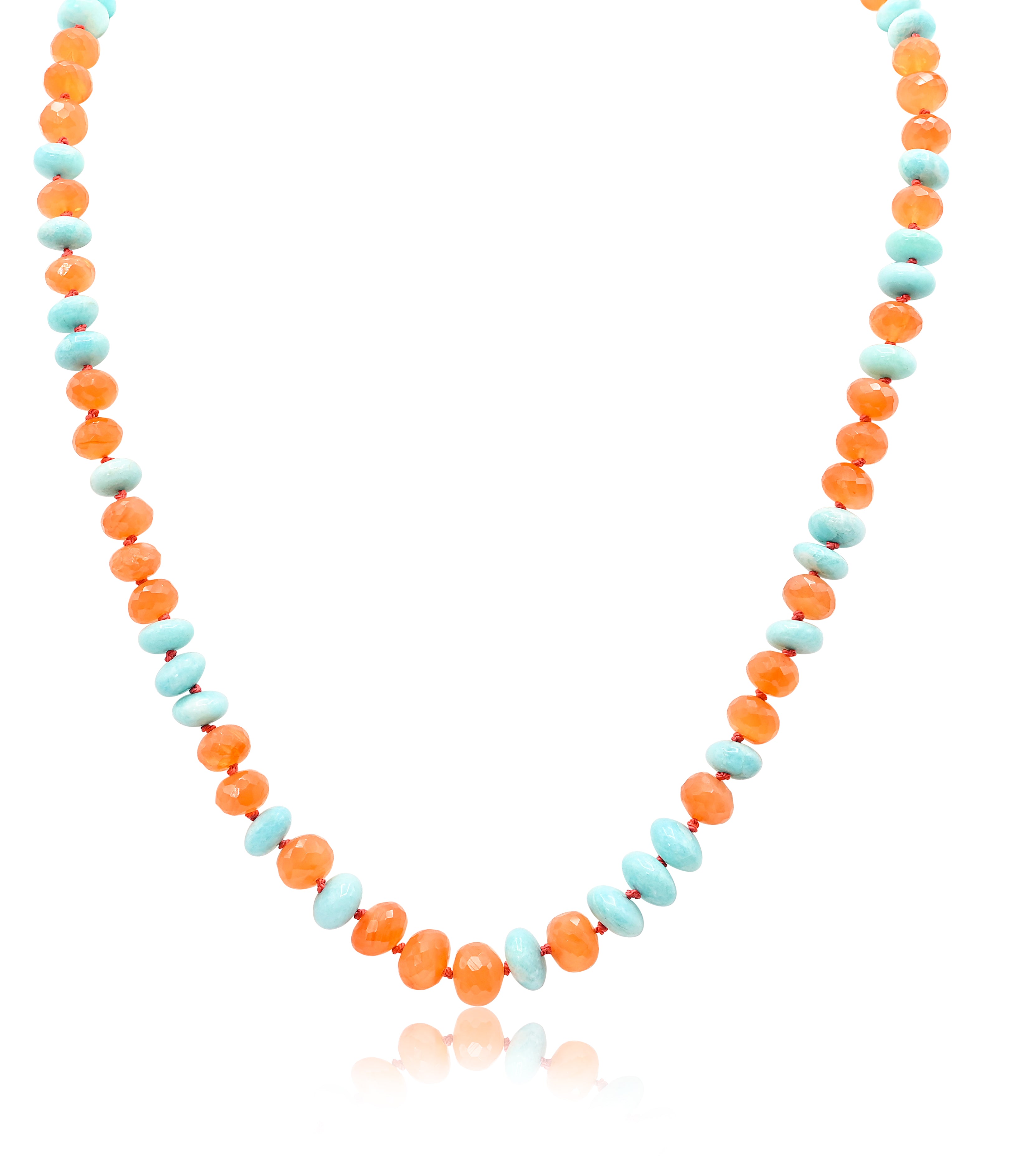 Mira Faceted Amazonite Carnelian Beads Necklace 14K Gold