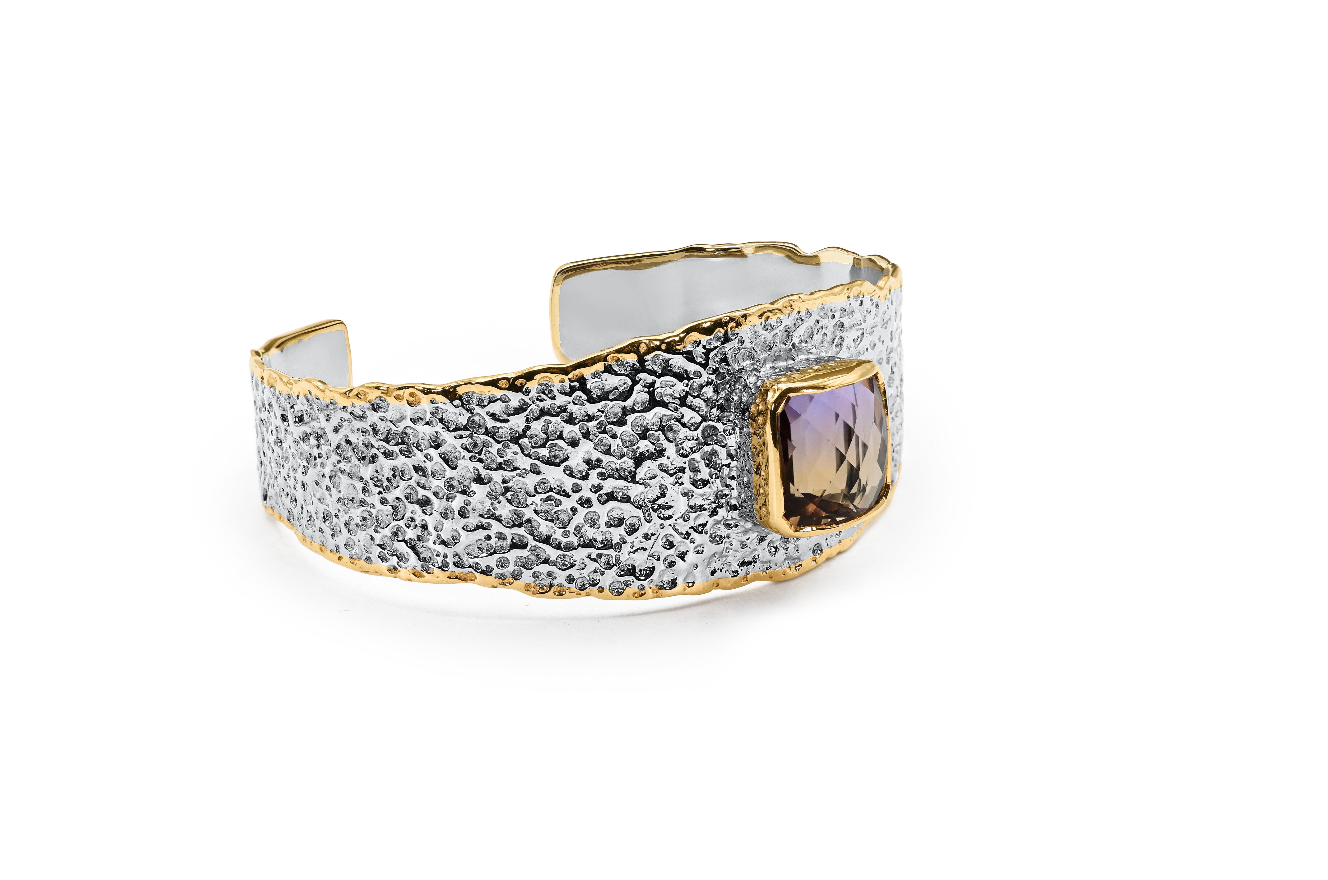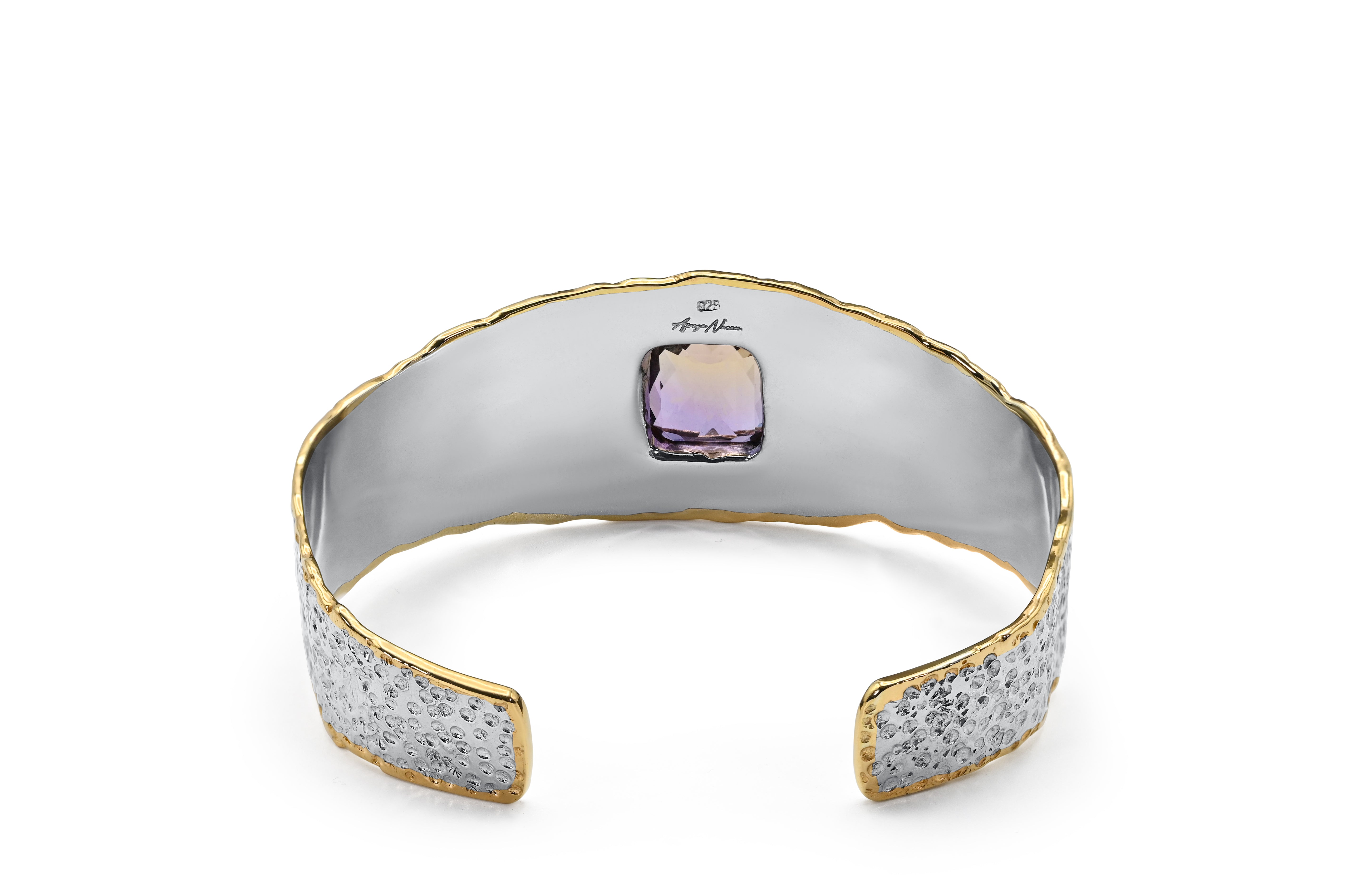 Modern Ametrine Two-Tone Hammered Bracelet Cuff