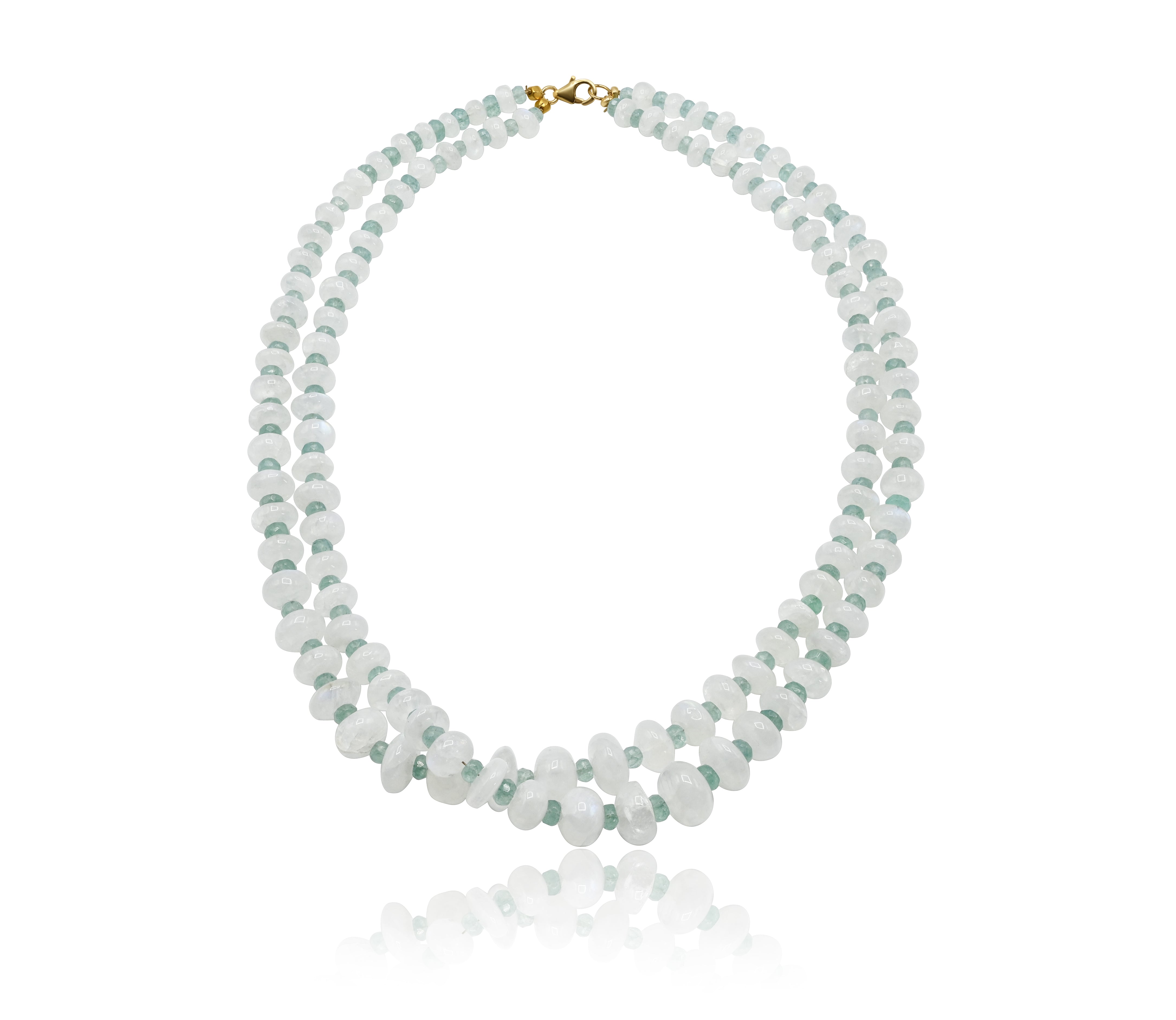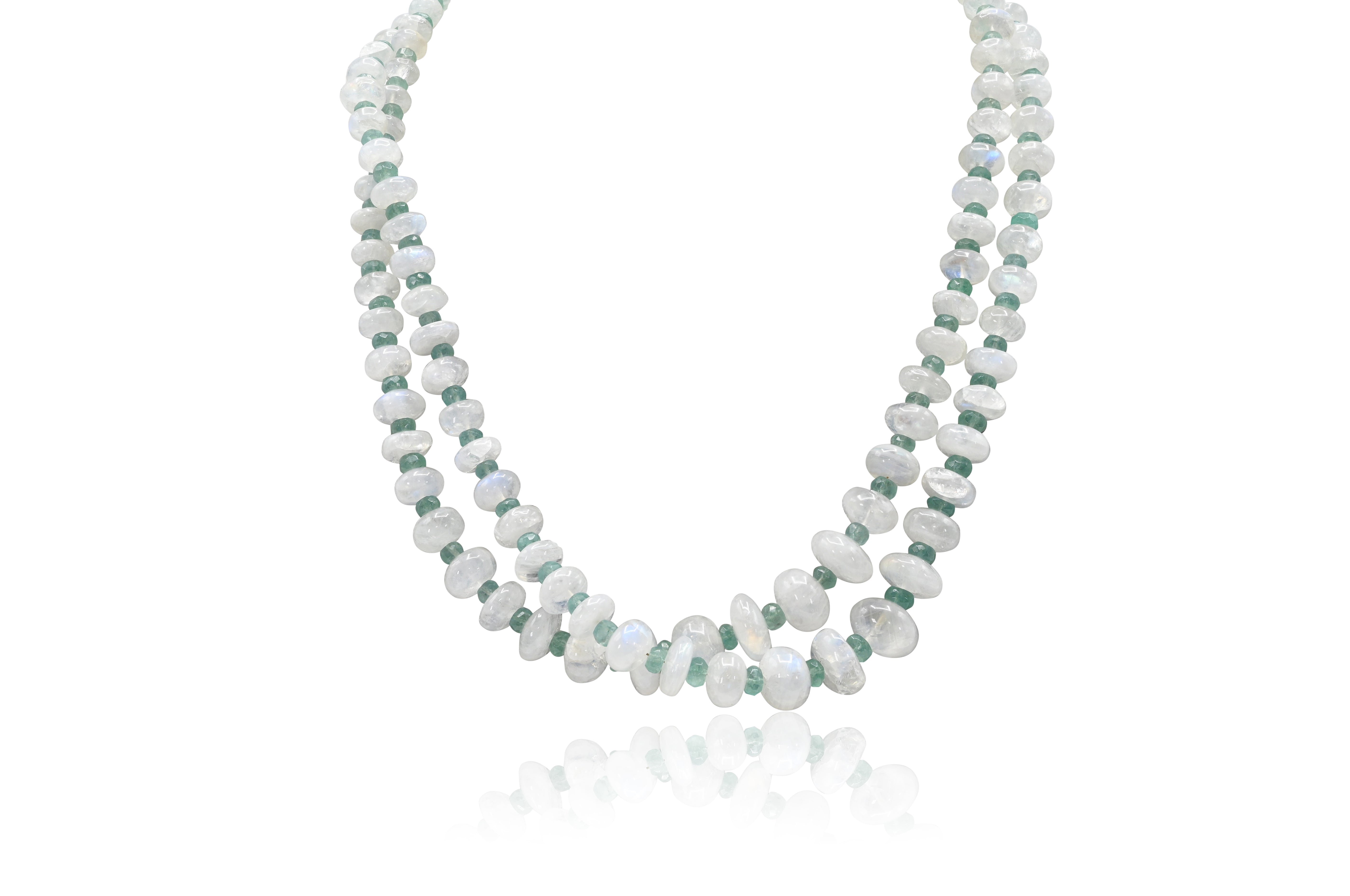 Moonstone & Emerald Rondelle & Spacer Bead Double Layer Necklace
