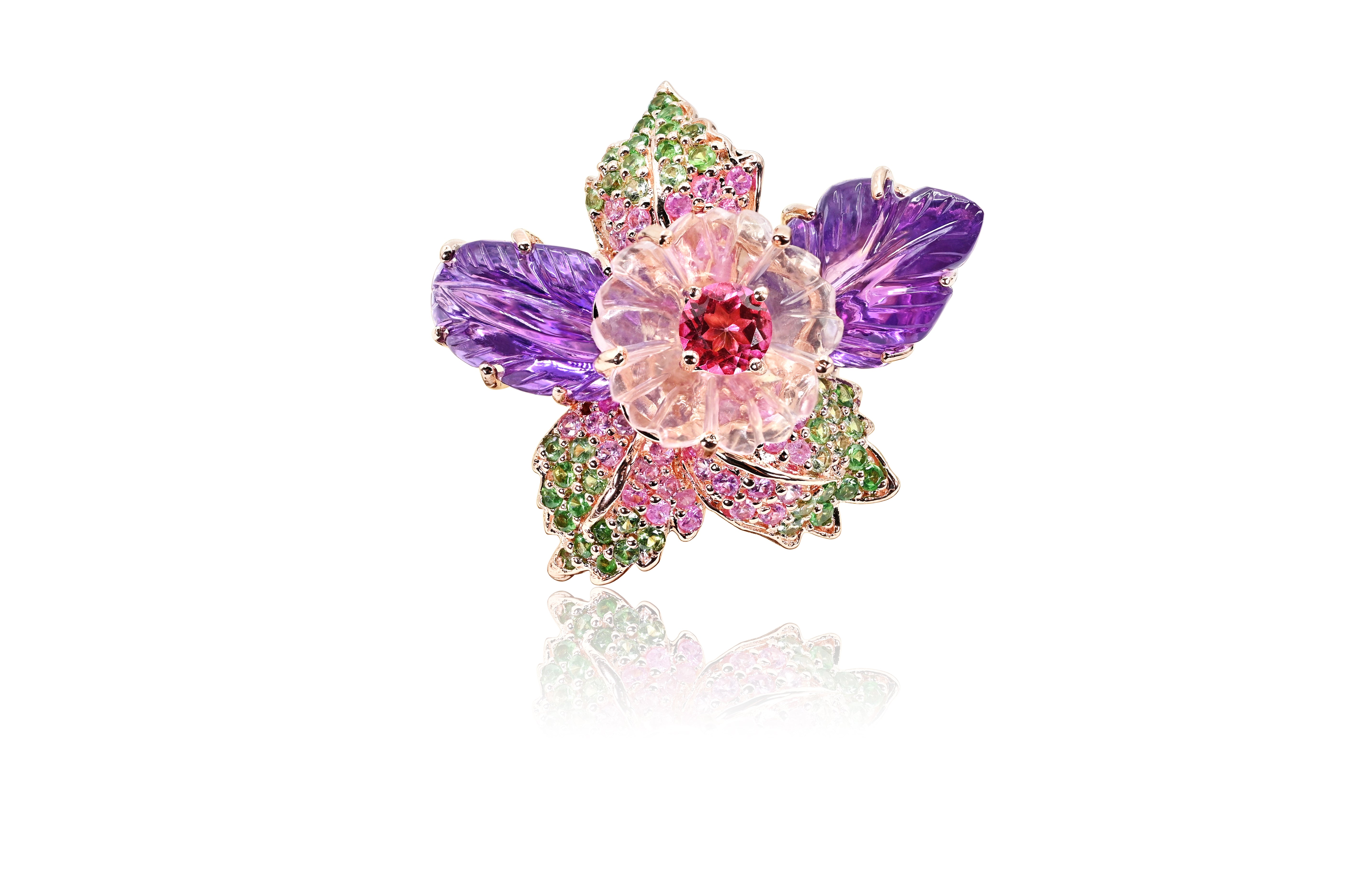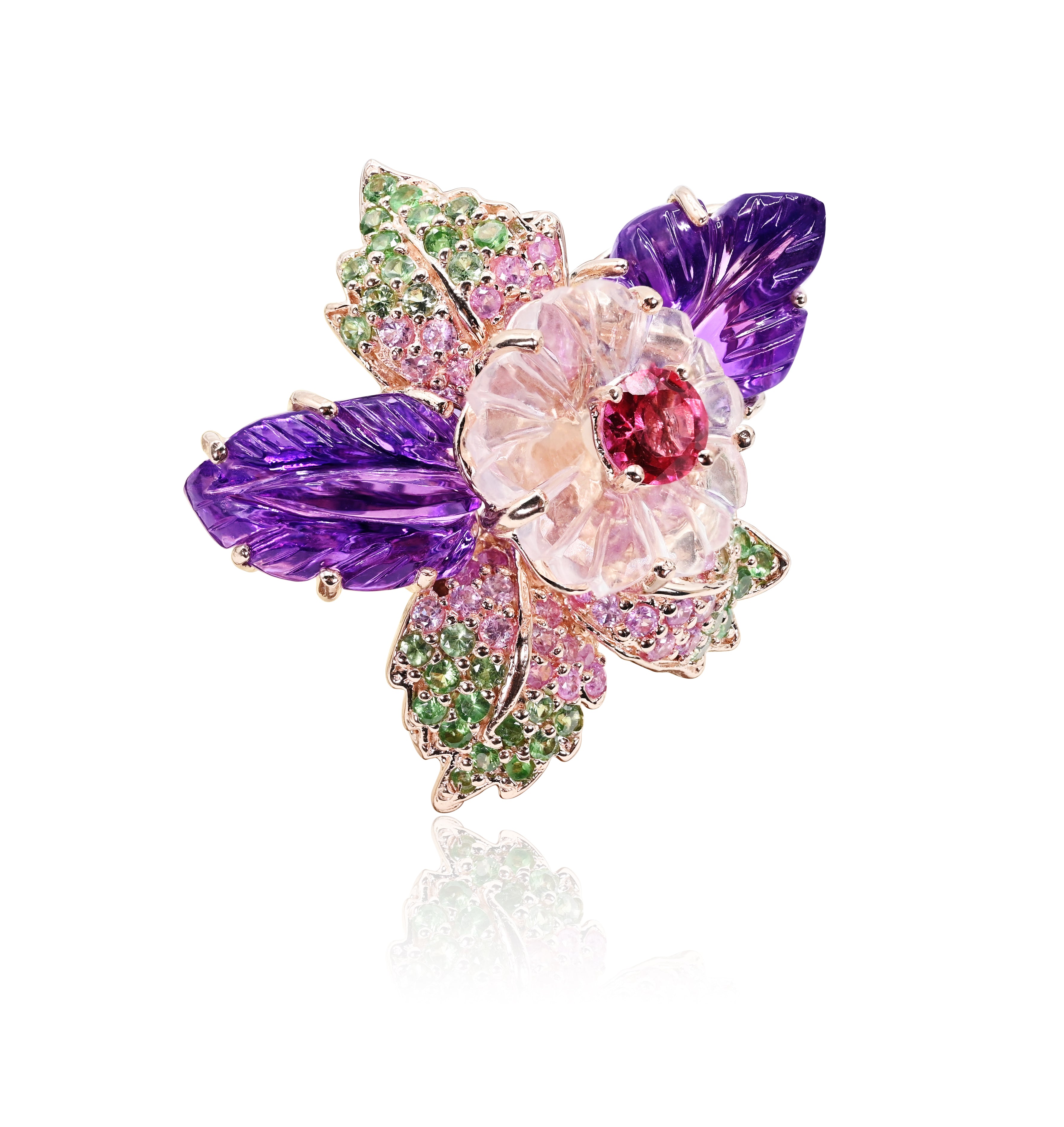 Gemstones: Rose Quartz , Pink topaz, amethyst, pink sapphire, tsavorite