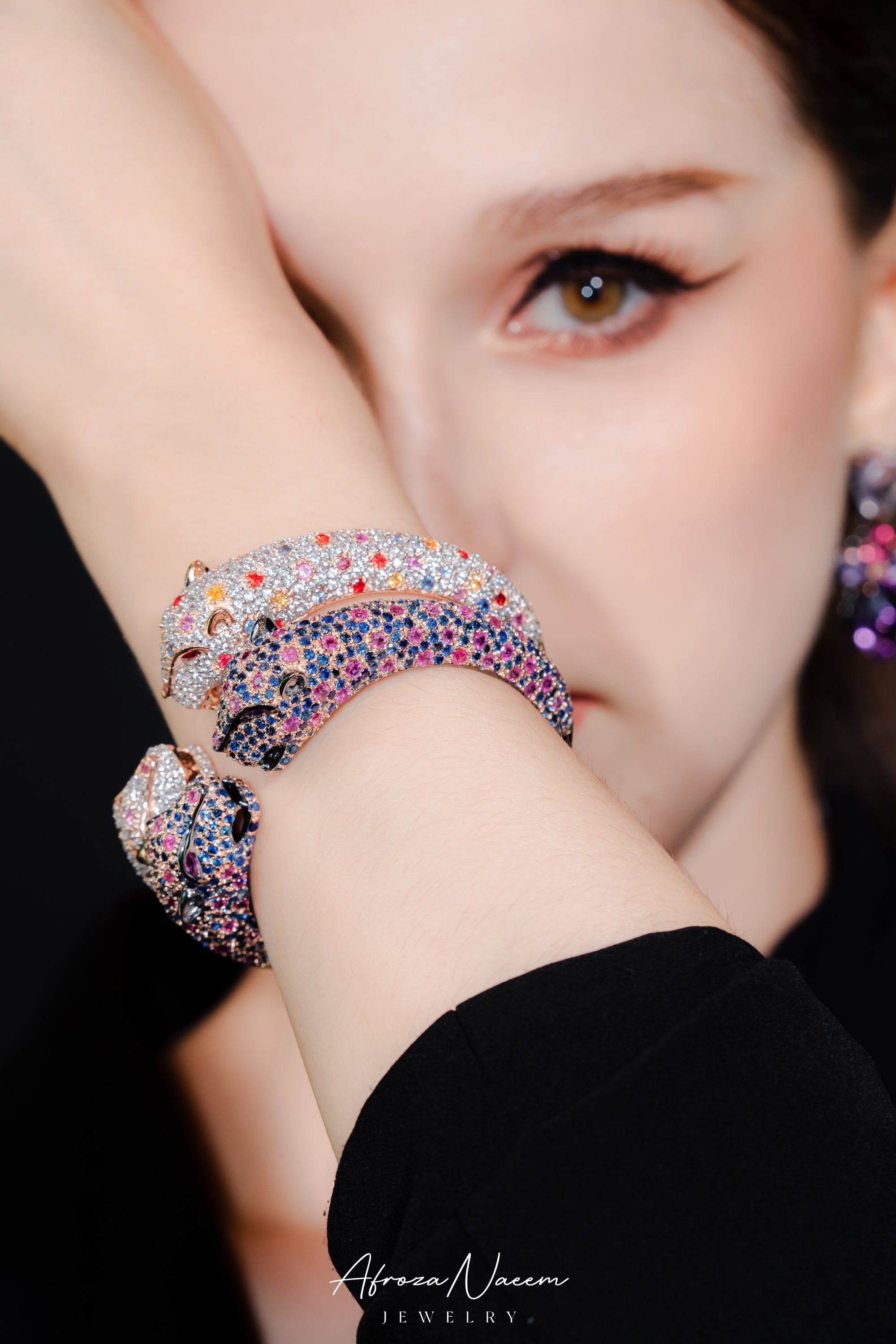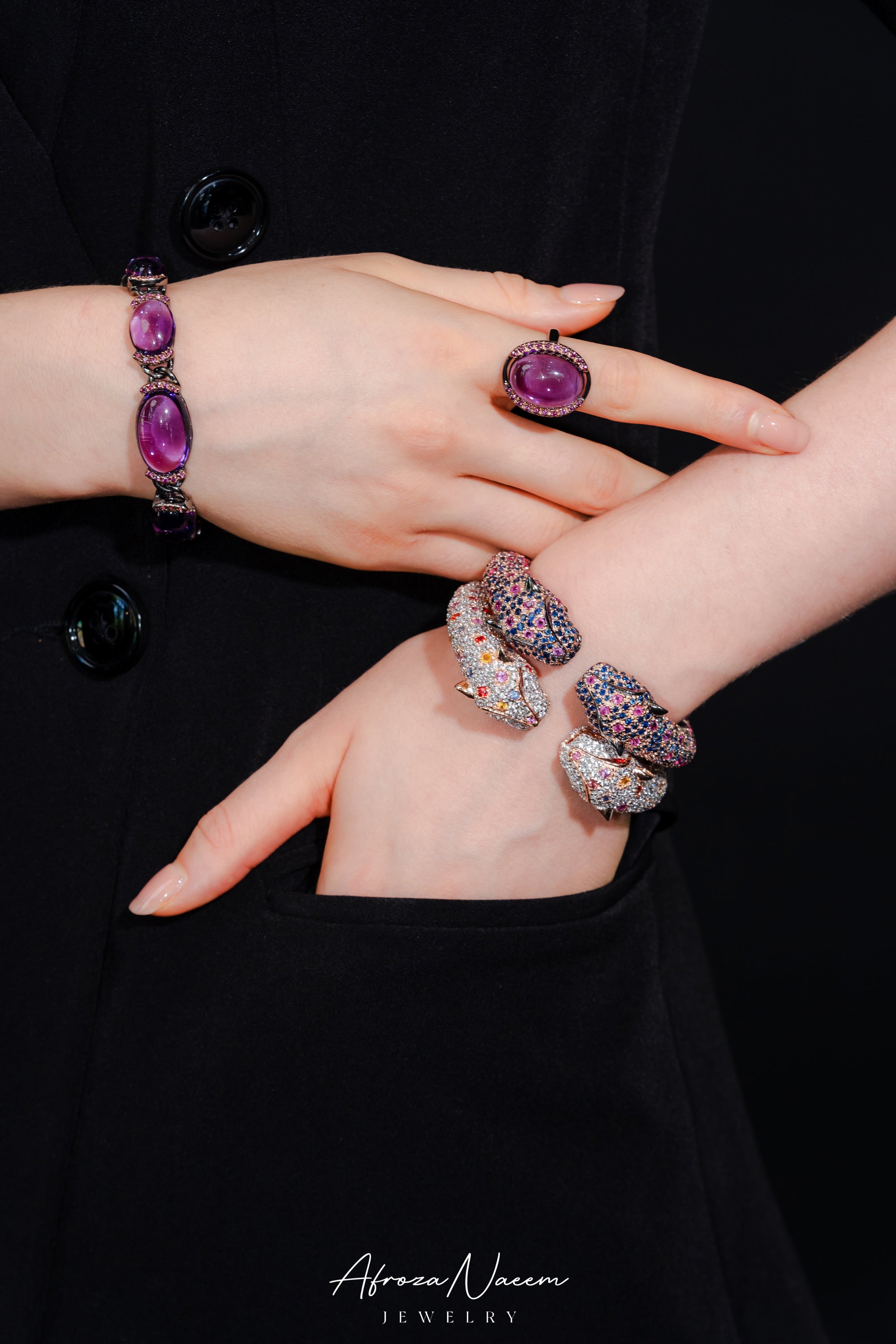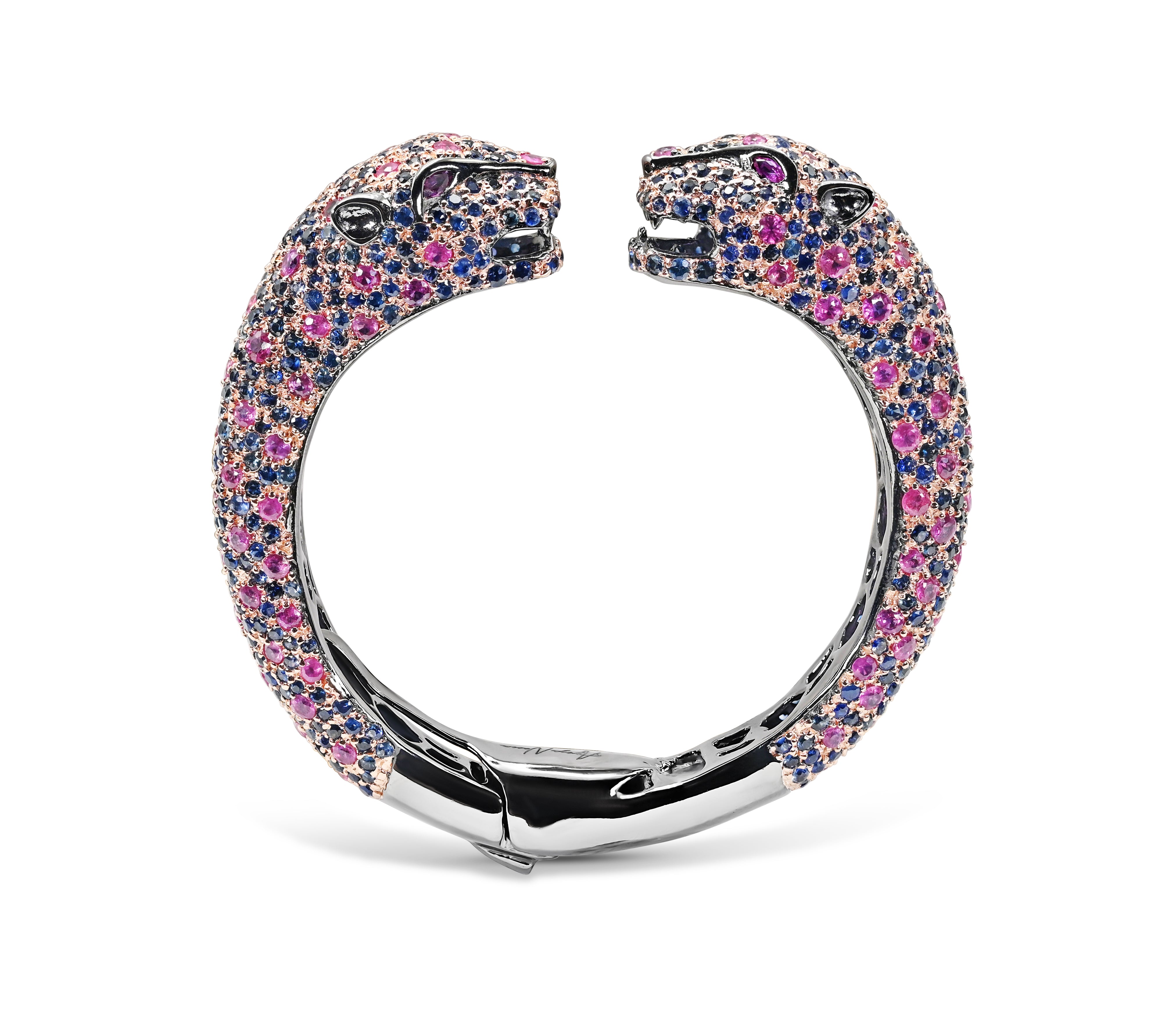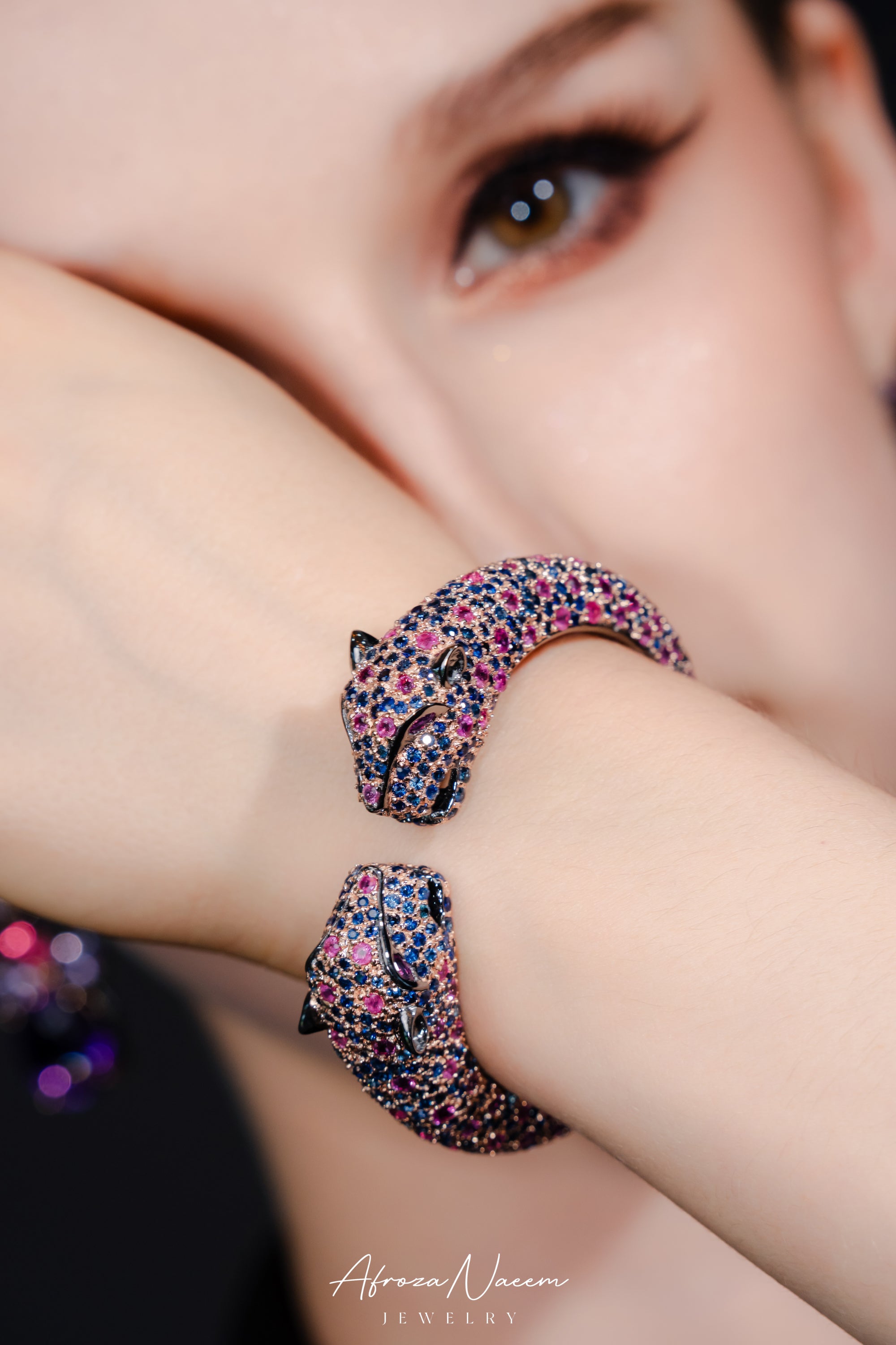 Pink & Blue Sapphire Tiger Cuff Bracelet