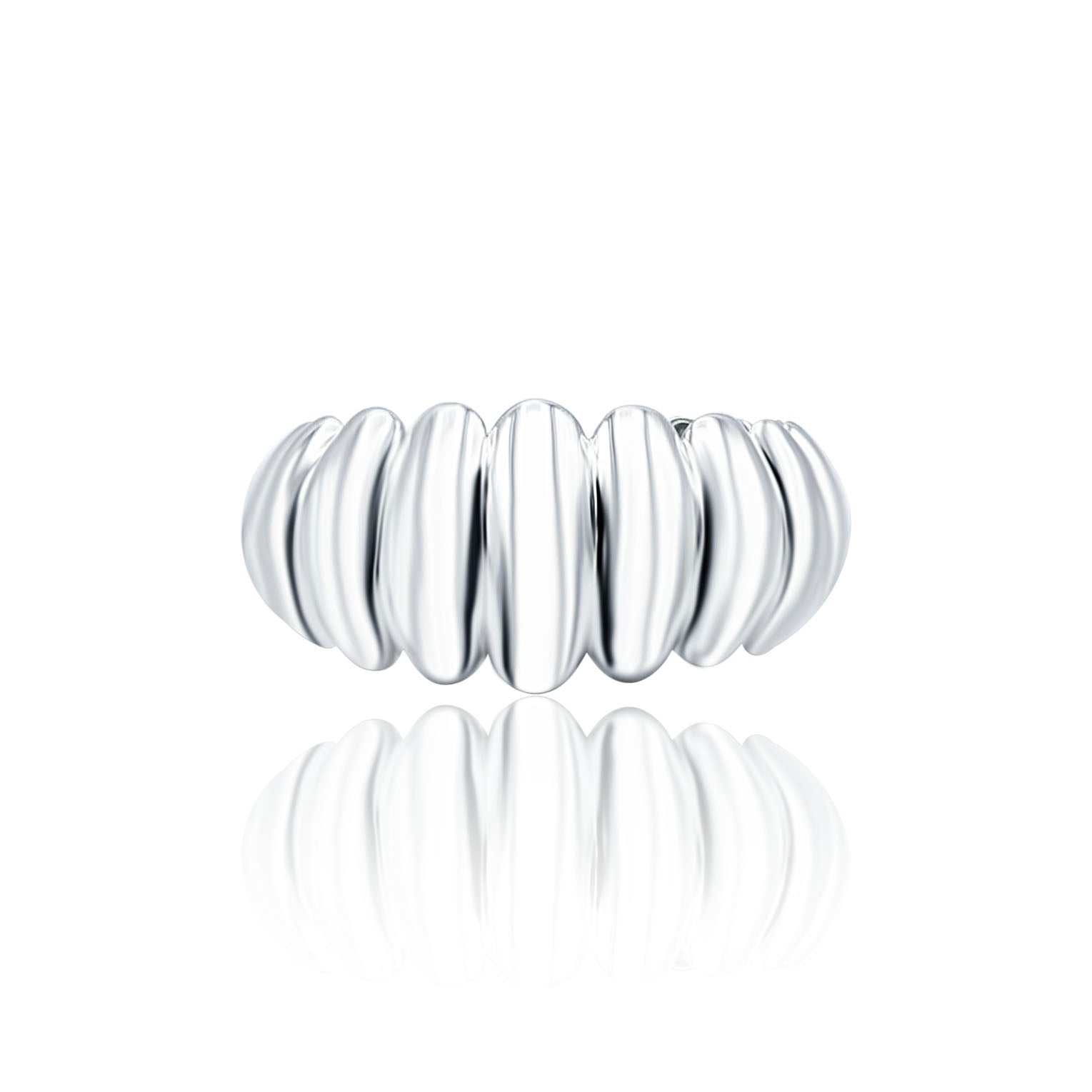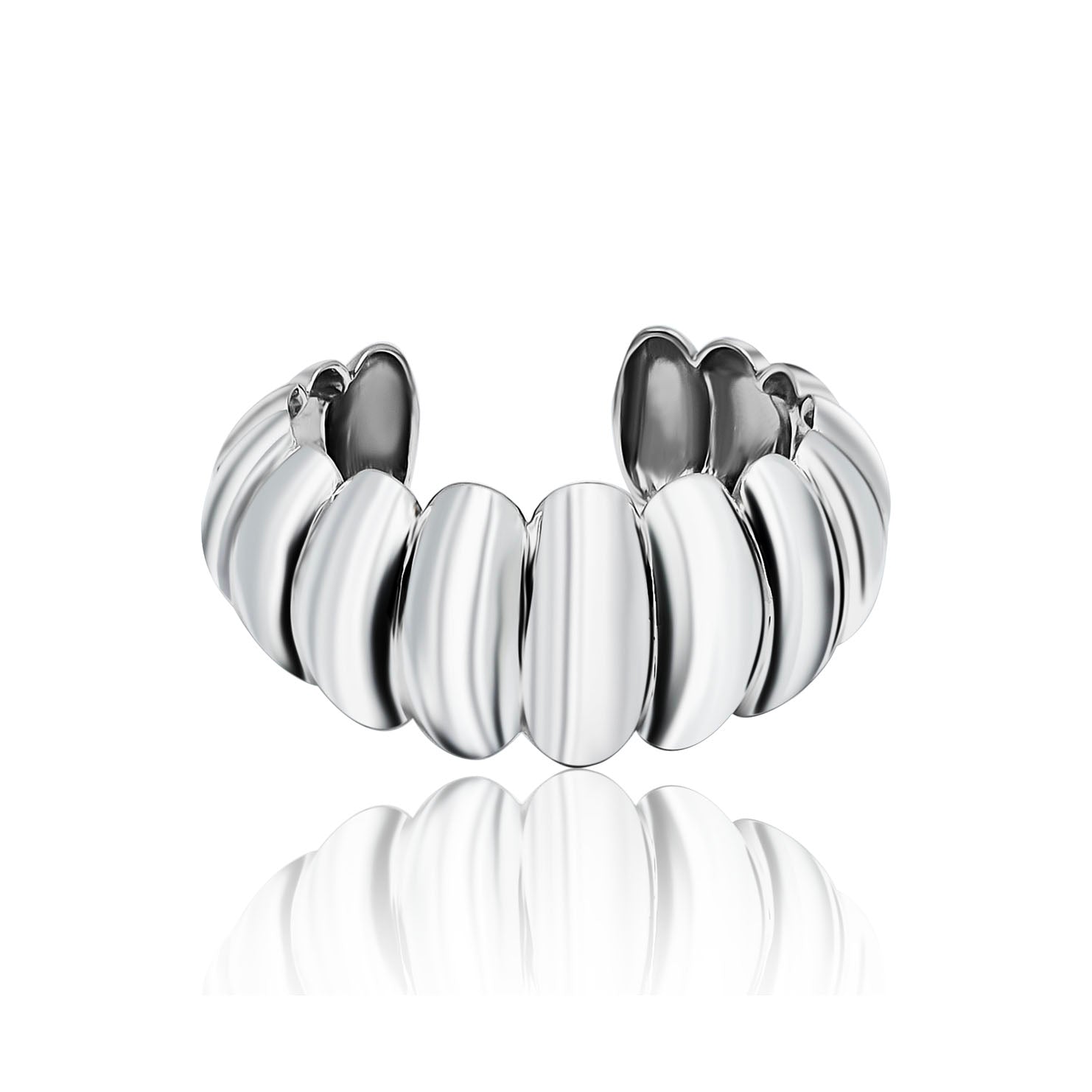 Elevate your style with this ultra-luxe sterling silver cuff, created with a striking dimensional ribbed design in a brightly polished shine. A smooth interior with a dome shape hugs the wrist elegantly when worn, showcasing the unique details of this silver bracelet. An opening on the bottom lends comfort to this artistic bangle, giving it a contemporary glamor with a puffed top.