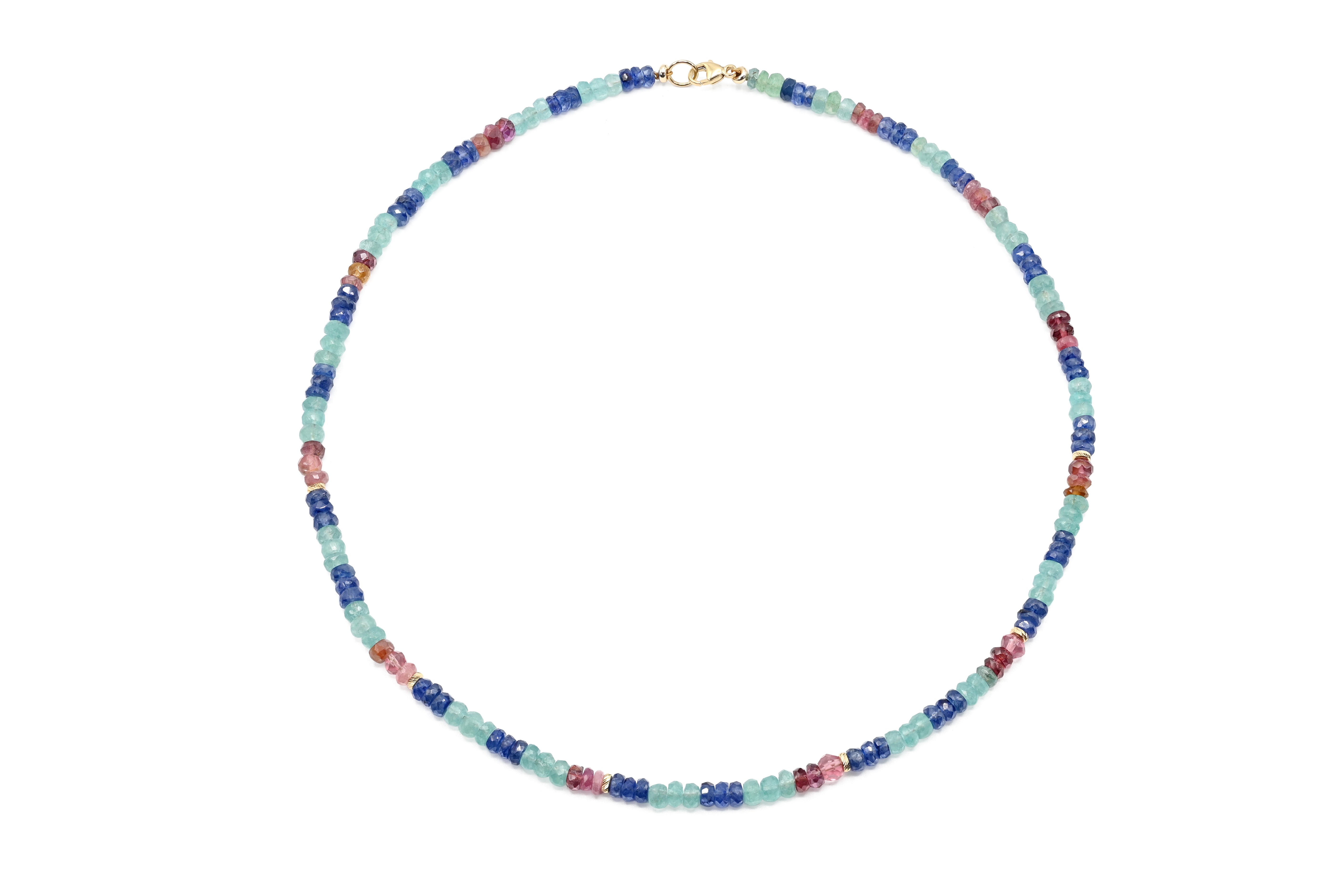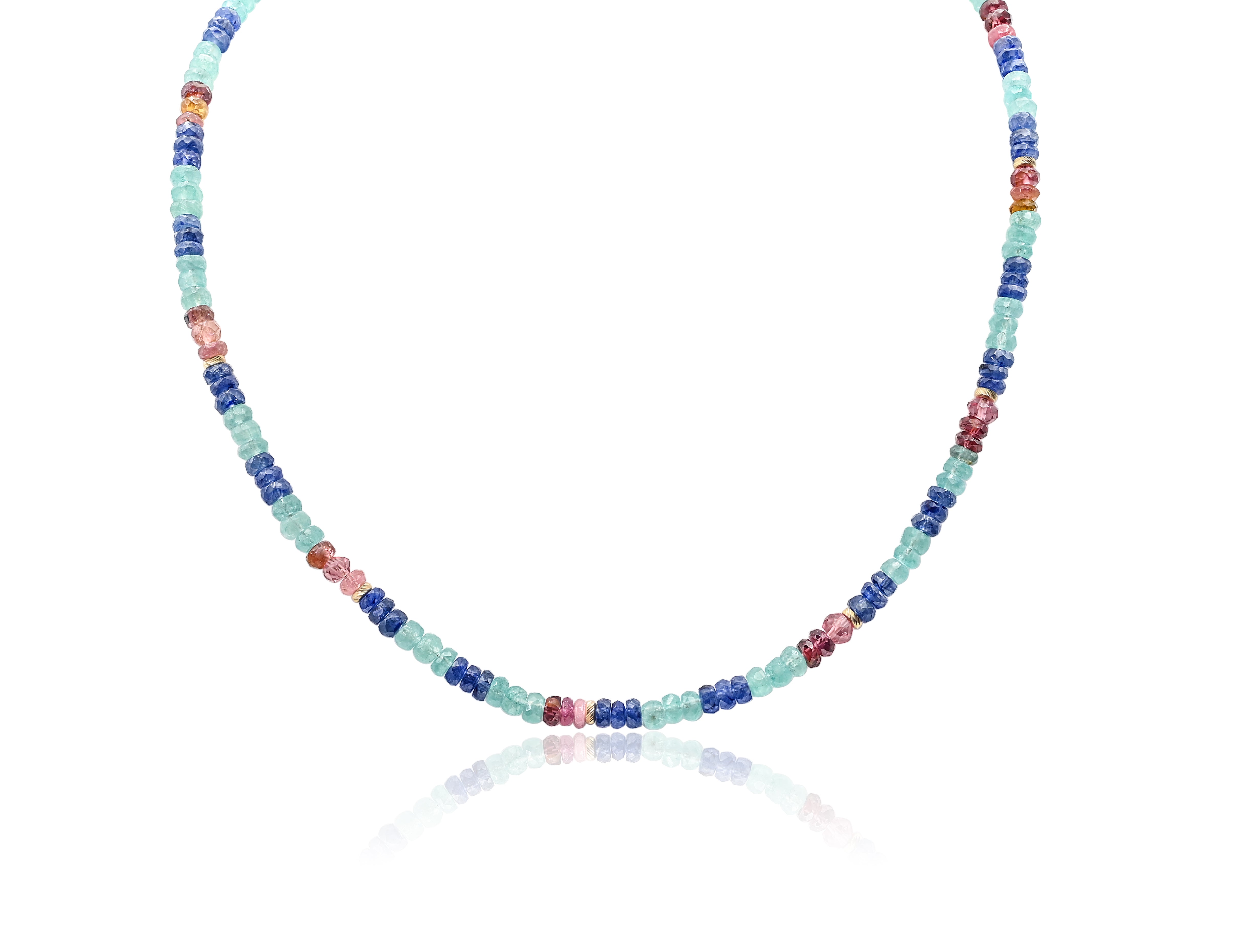 Sapphire Emerald Tourmaline Beads Necklace 14K Gold