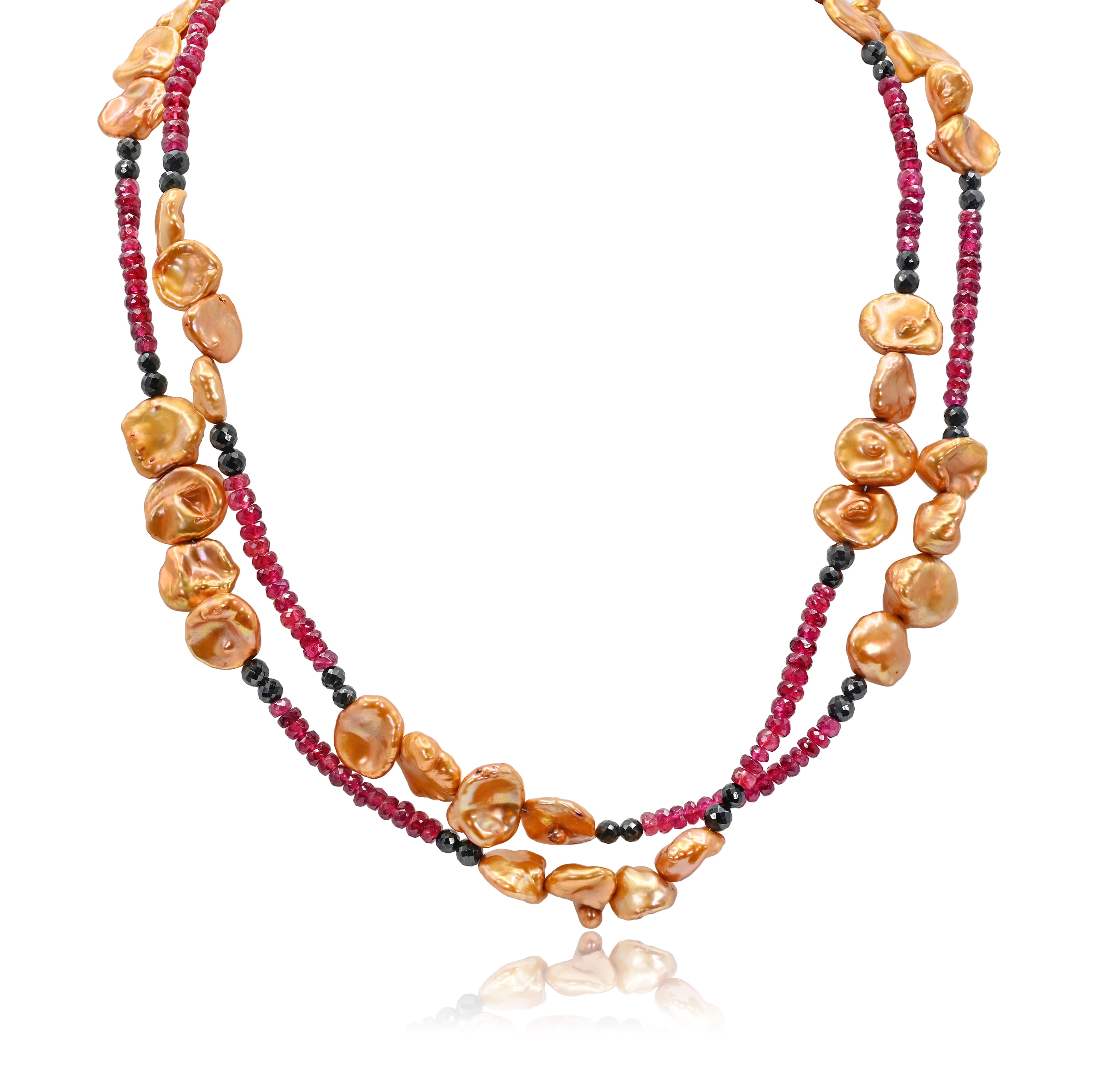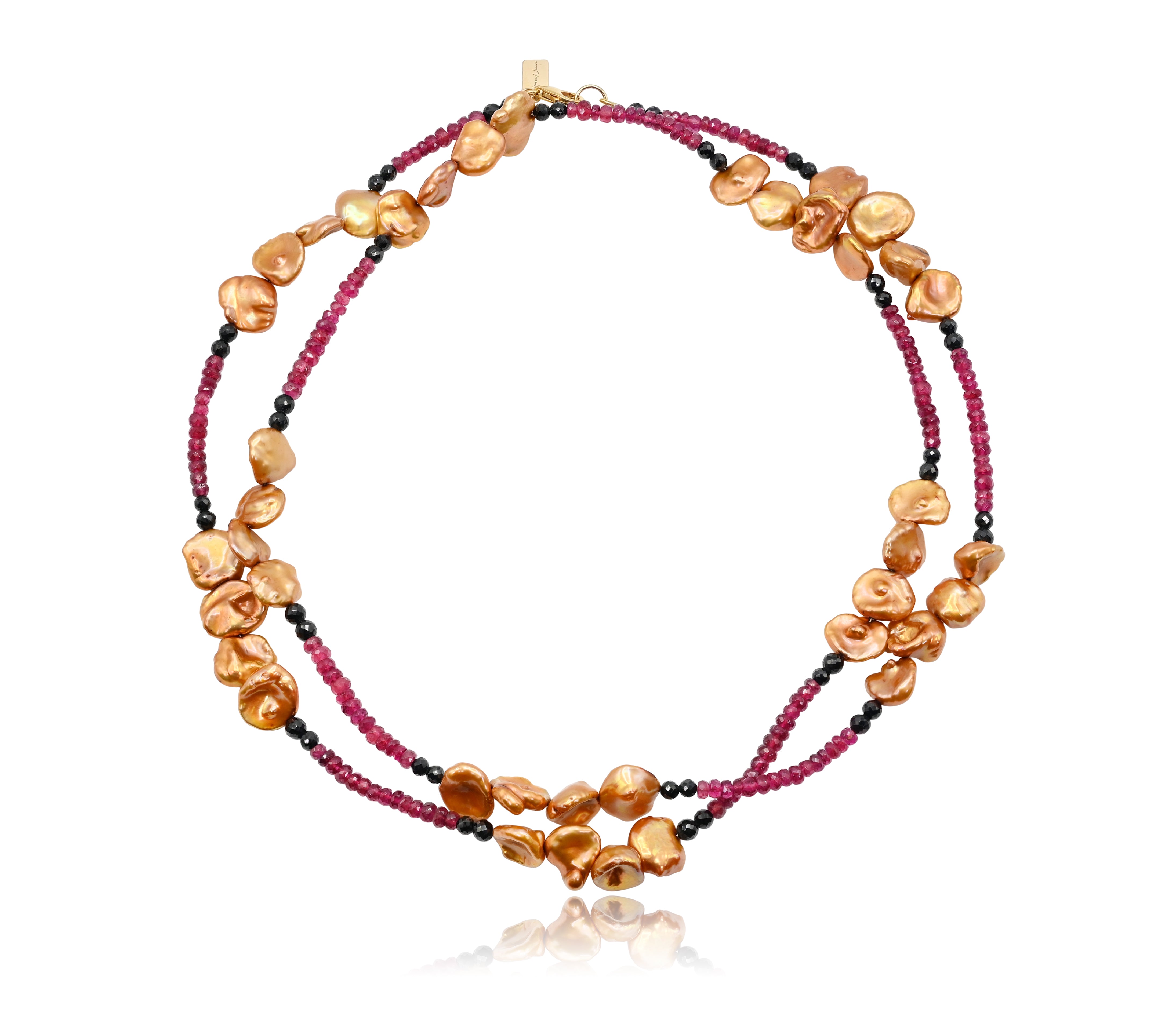 Sienna 38" Long Golden Keshi Pearl Garnet Black Spinel Necklace
