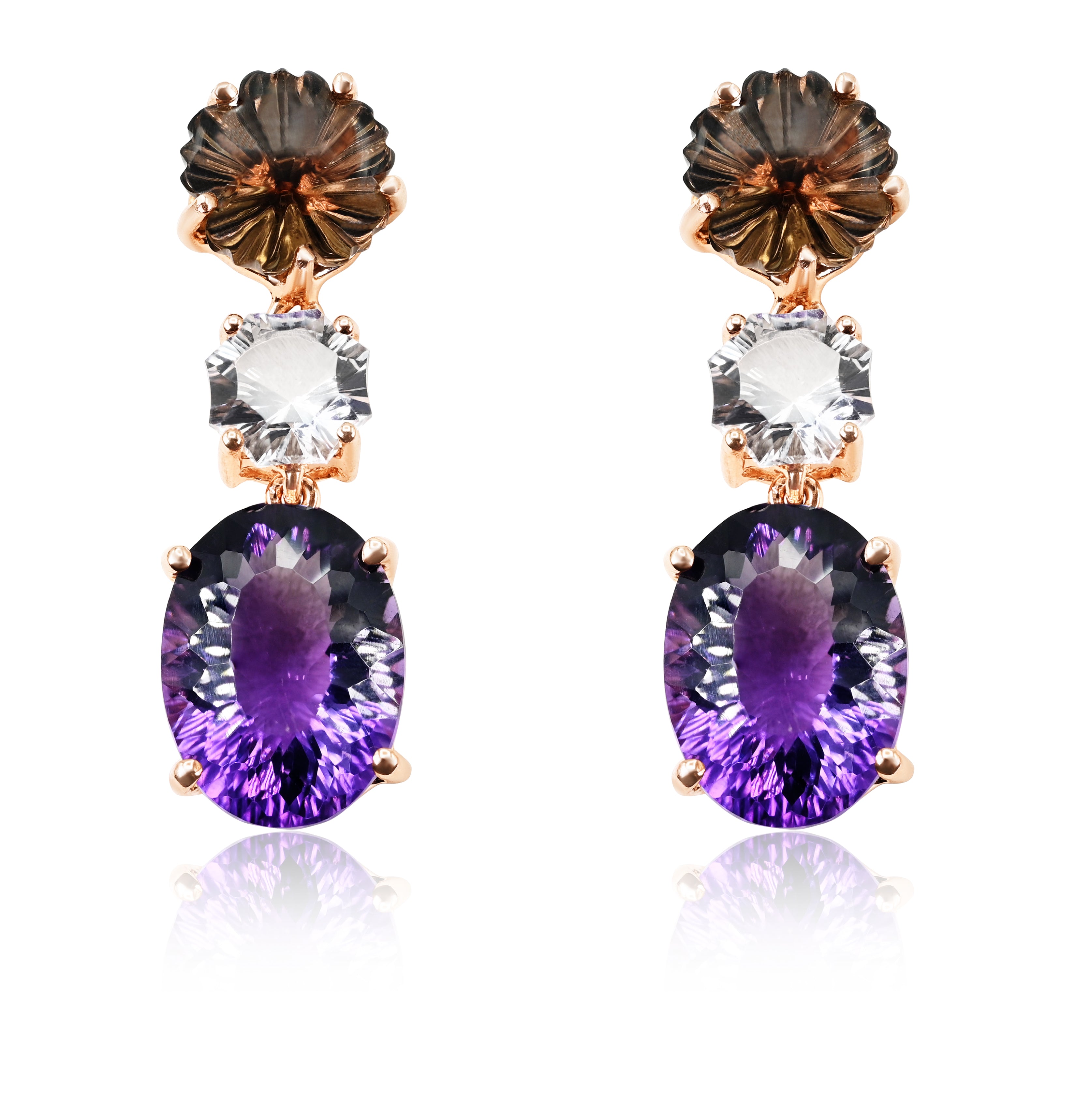 Stones: Flower shaped Smoky quartz, white topaz, and amethyst