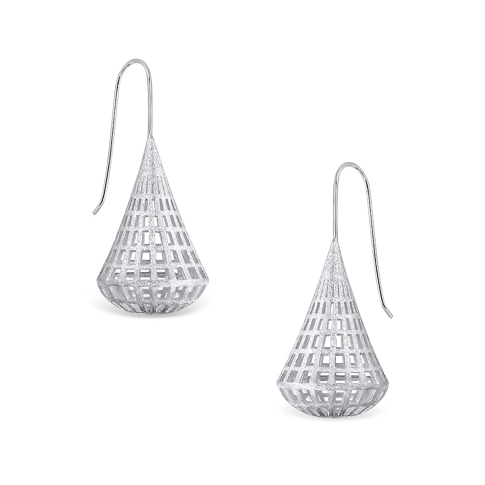 Sterling Silver 3D Design Filigree Puff Drop Matte With E-Coating Earrings