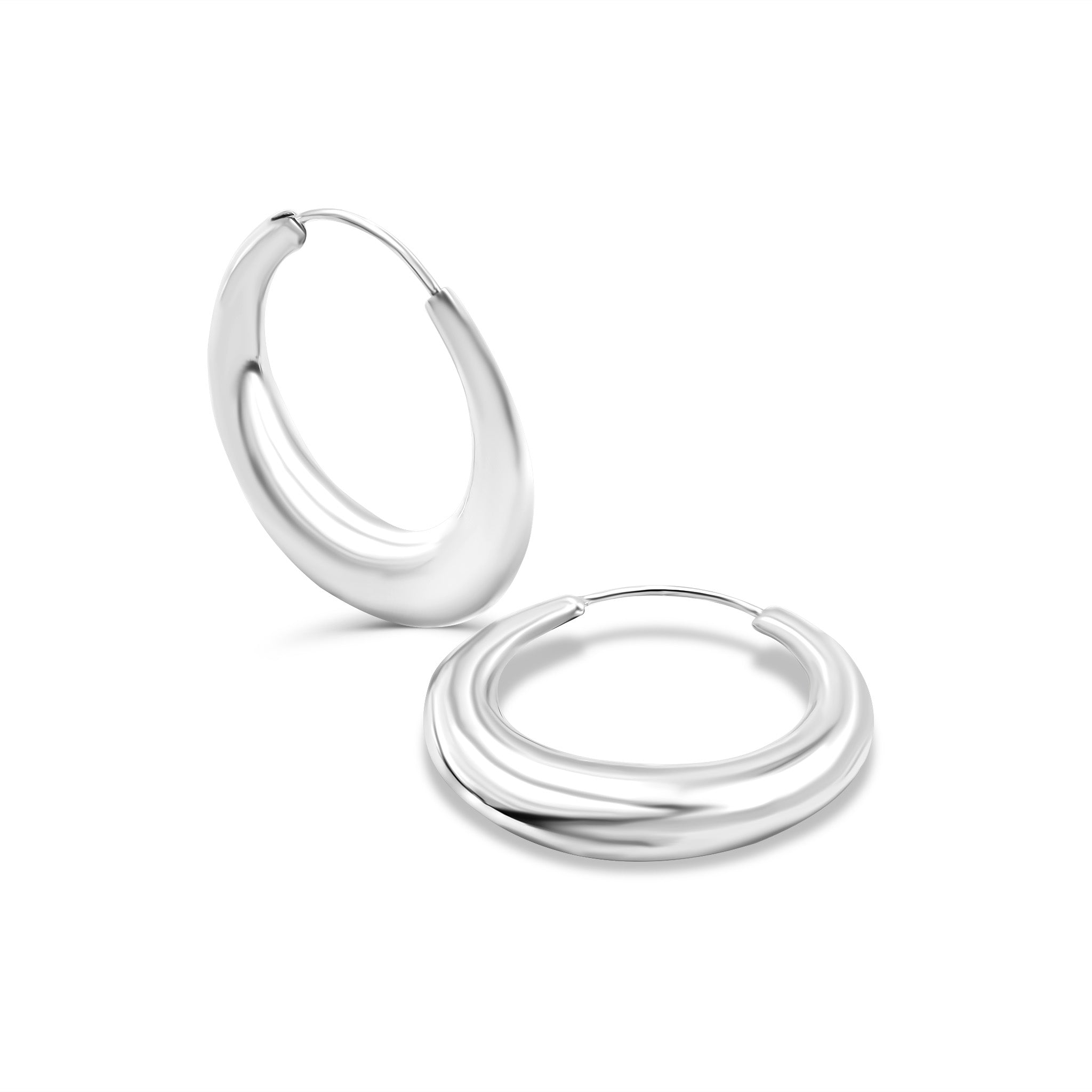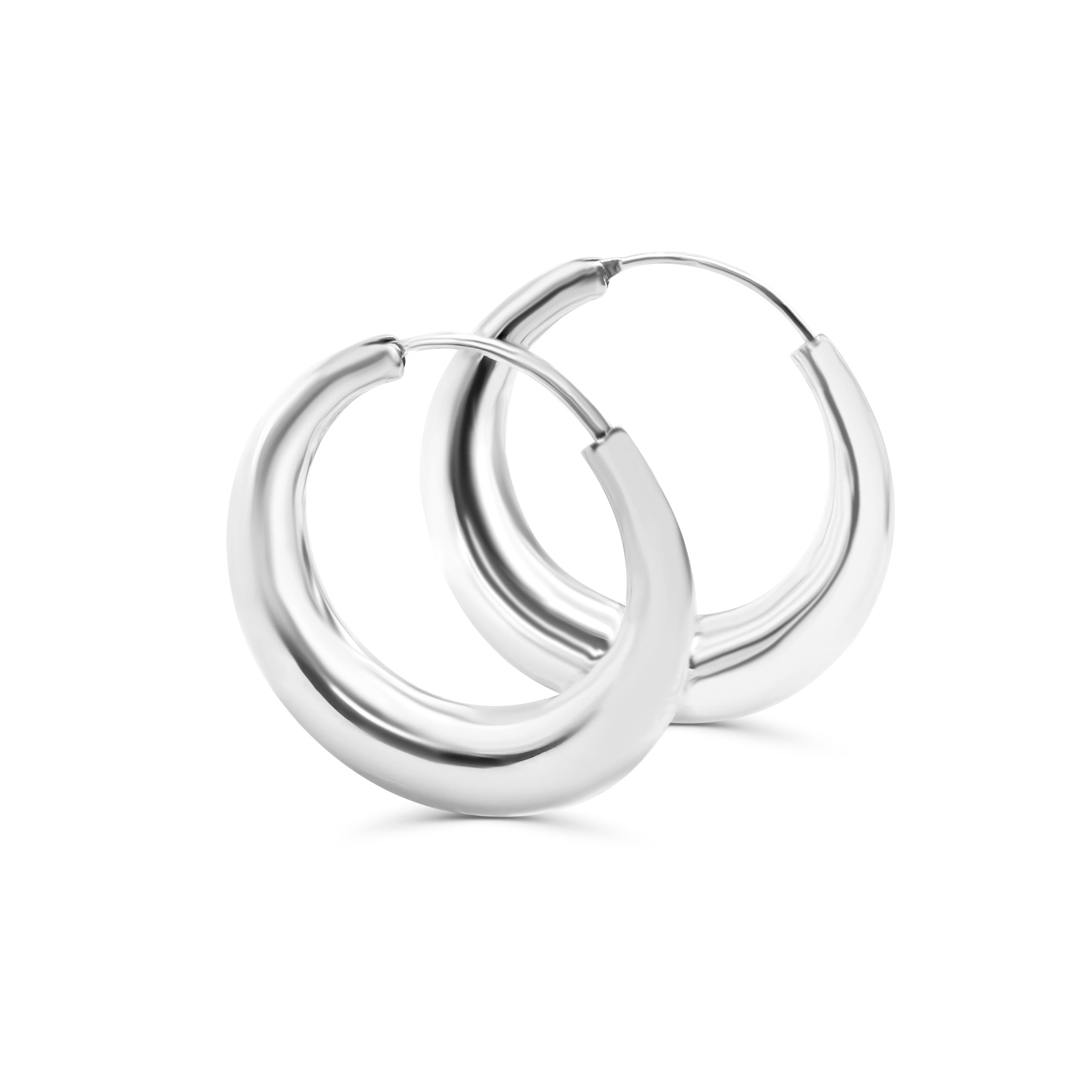 Upgrade your Ear Party looks or wear these lightweight sterling silver hoops solo with their slim-fitting silhouette and graduated graceful shape. Shiny tubular crescent hoops sit on curved posts, giving them an endless infinity style as they rest comfortably on the earlobes.