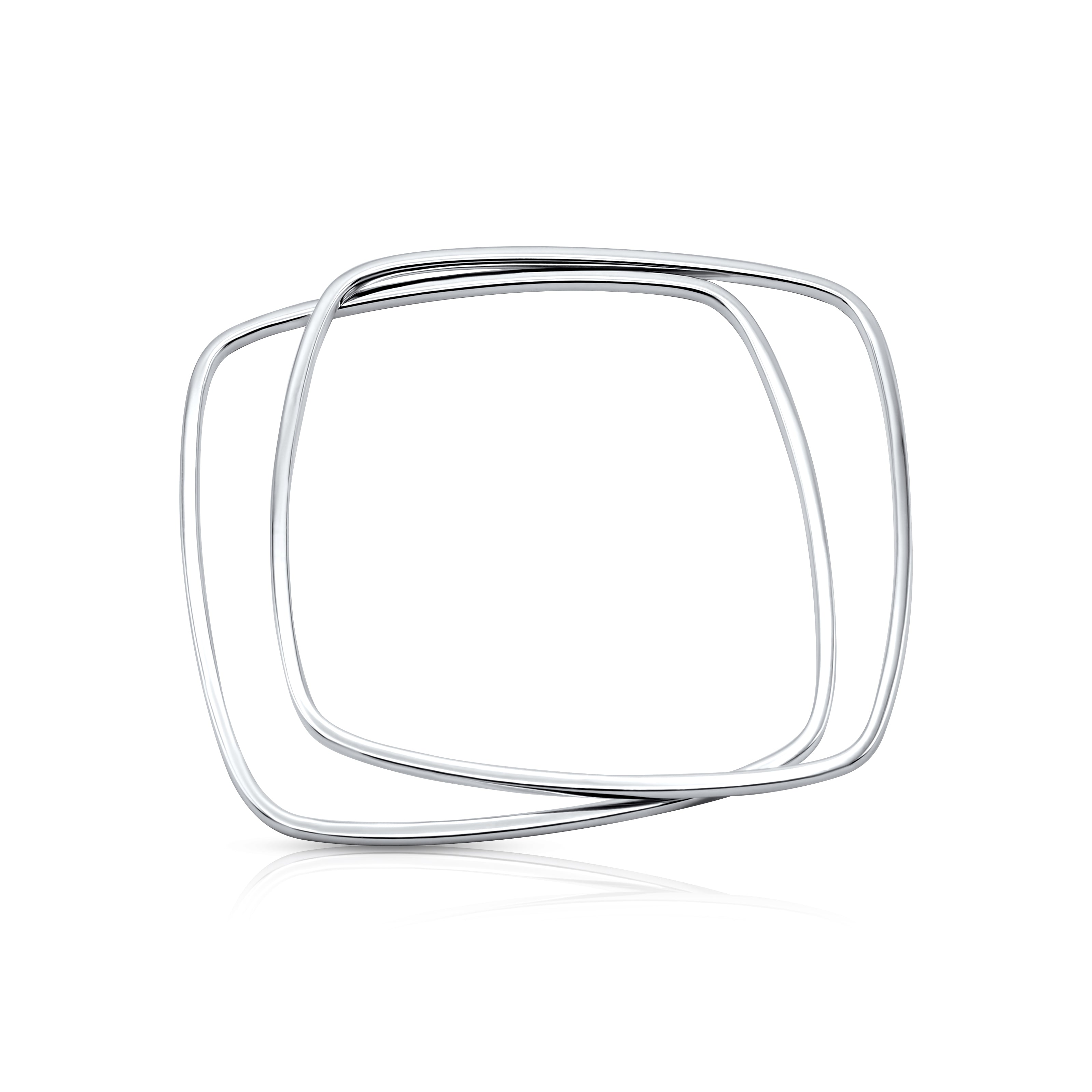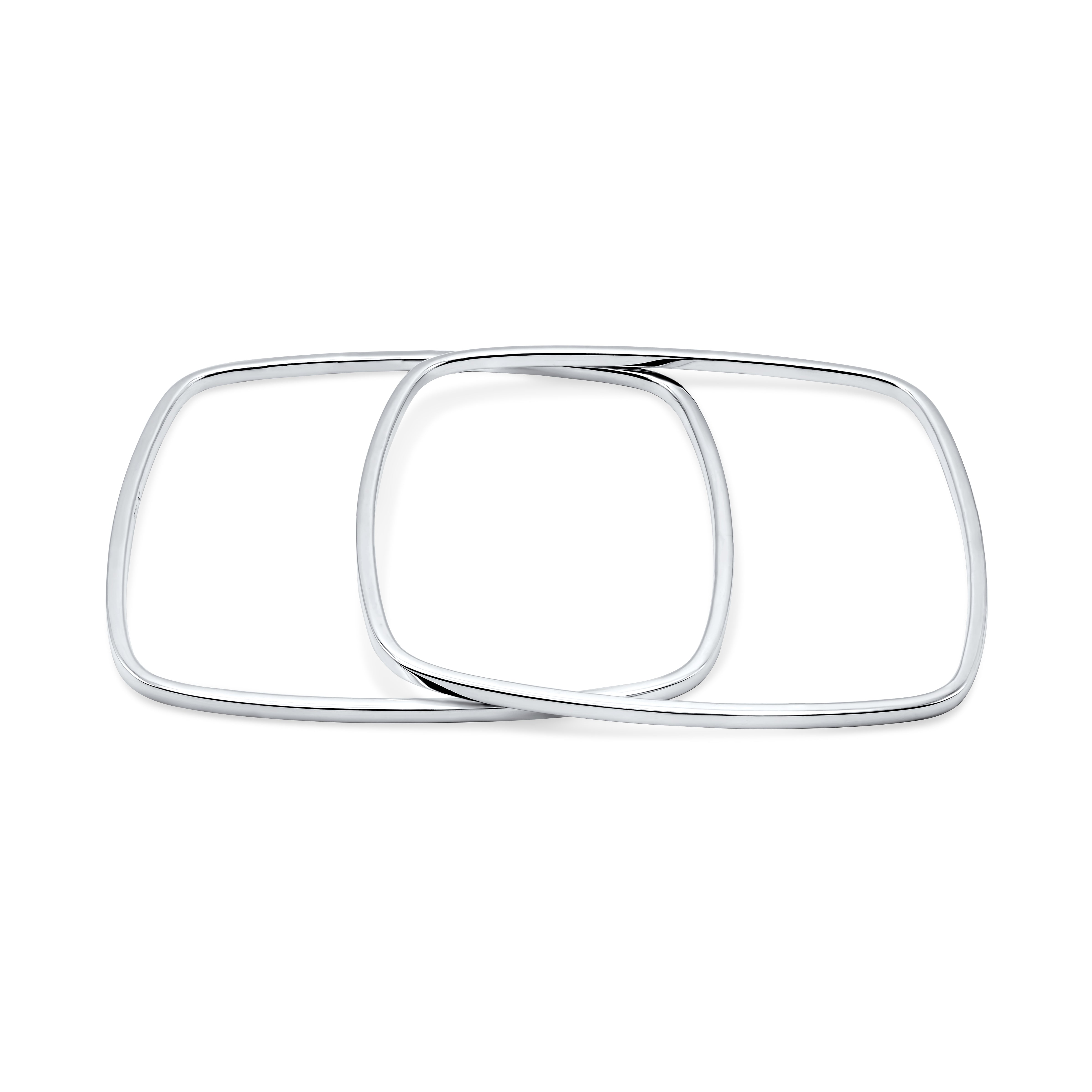 Sterling Silver Double Stack Square Bangle Bracelets - Set of 2