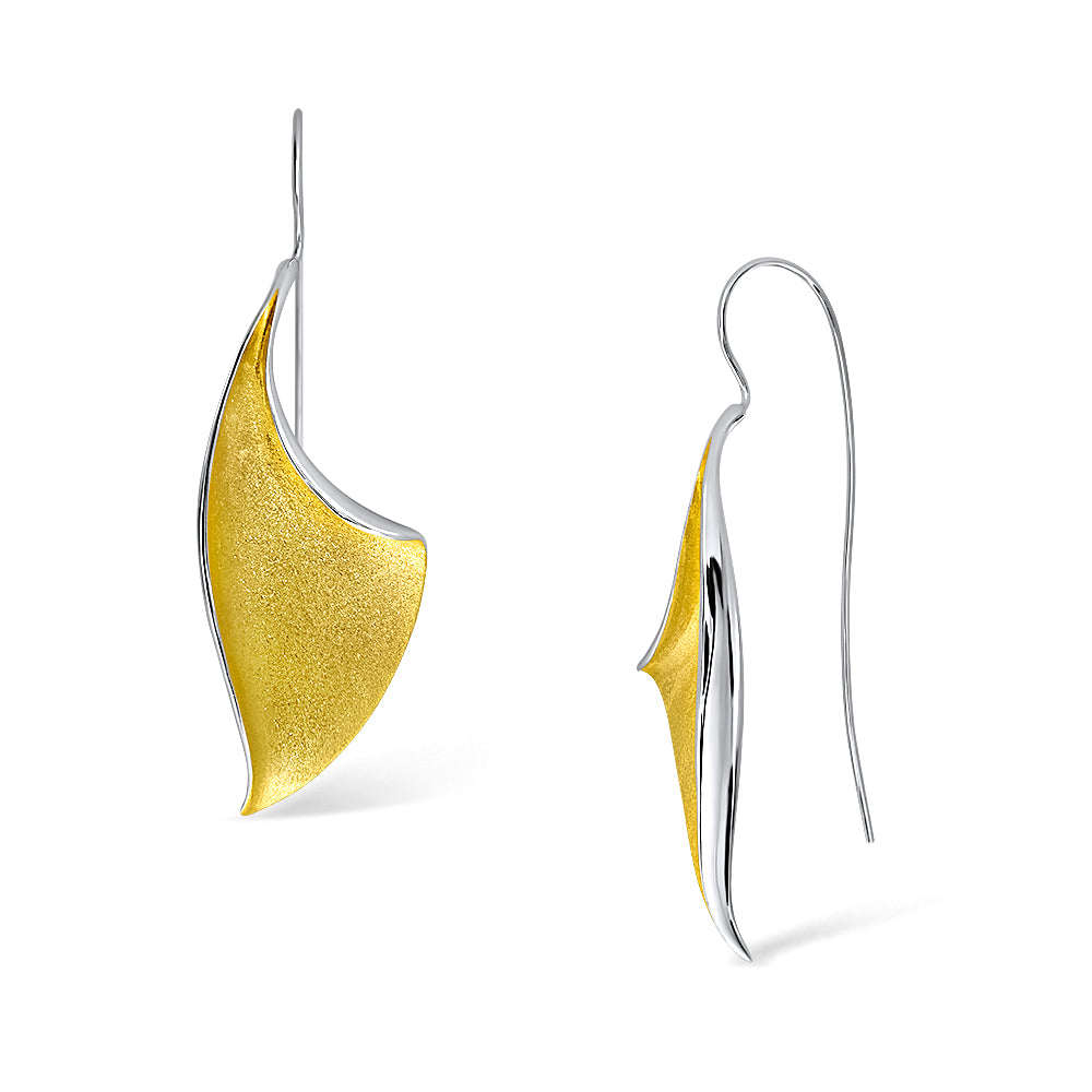 Sterling Silver Freeform Lily Petal Matte Silver and 18K Gold Plated Earrings