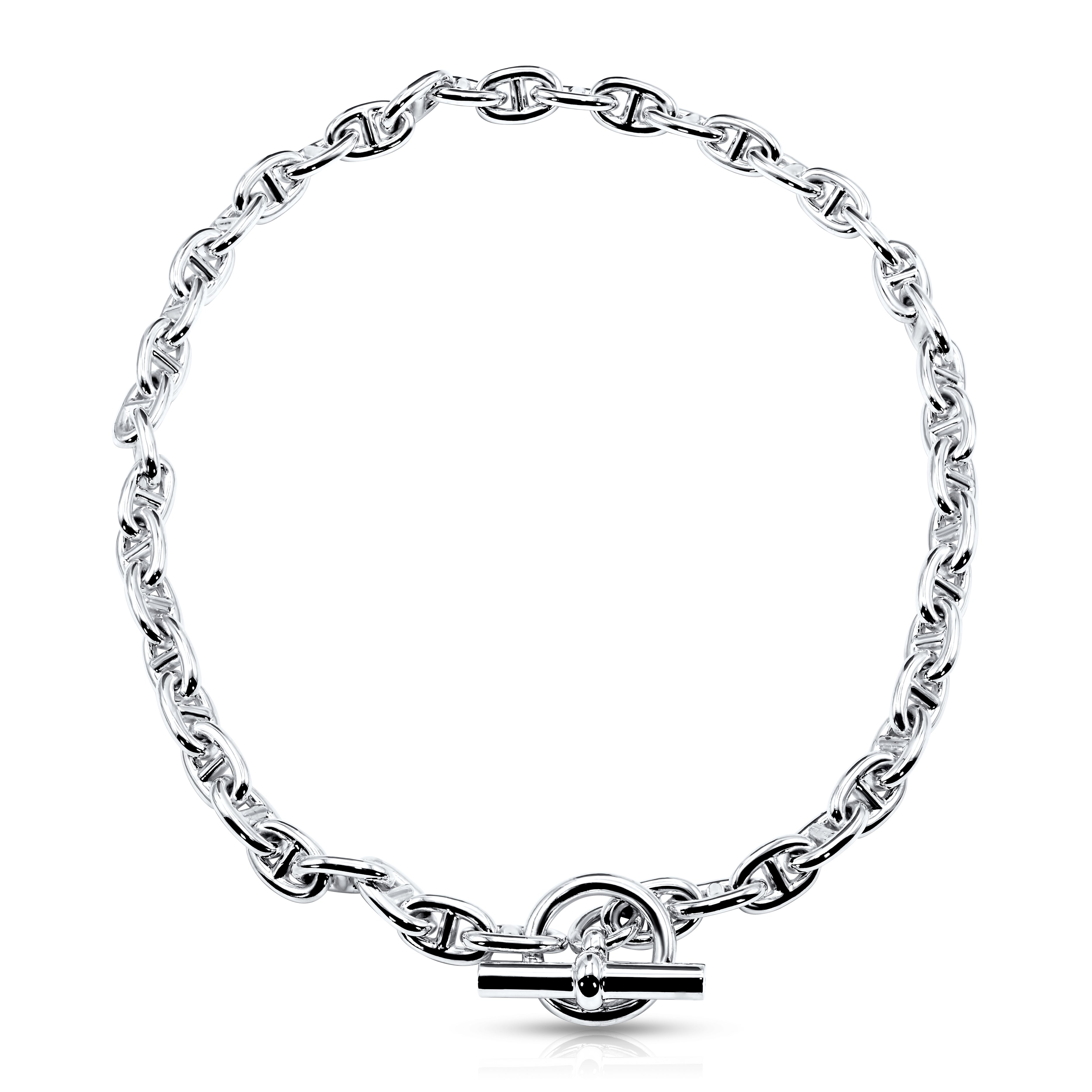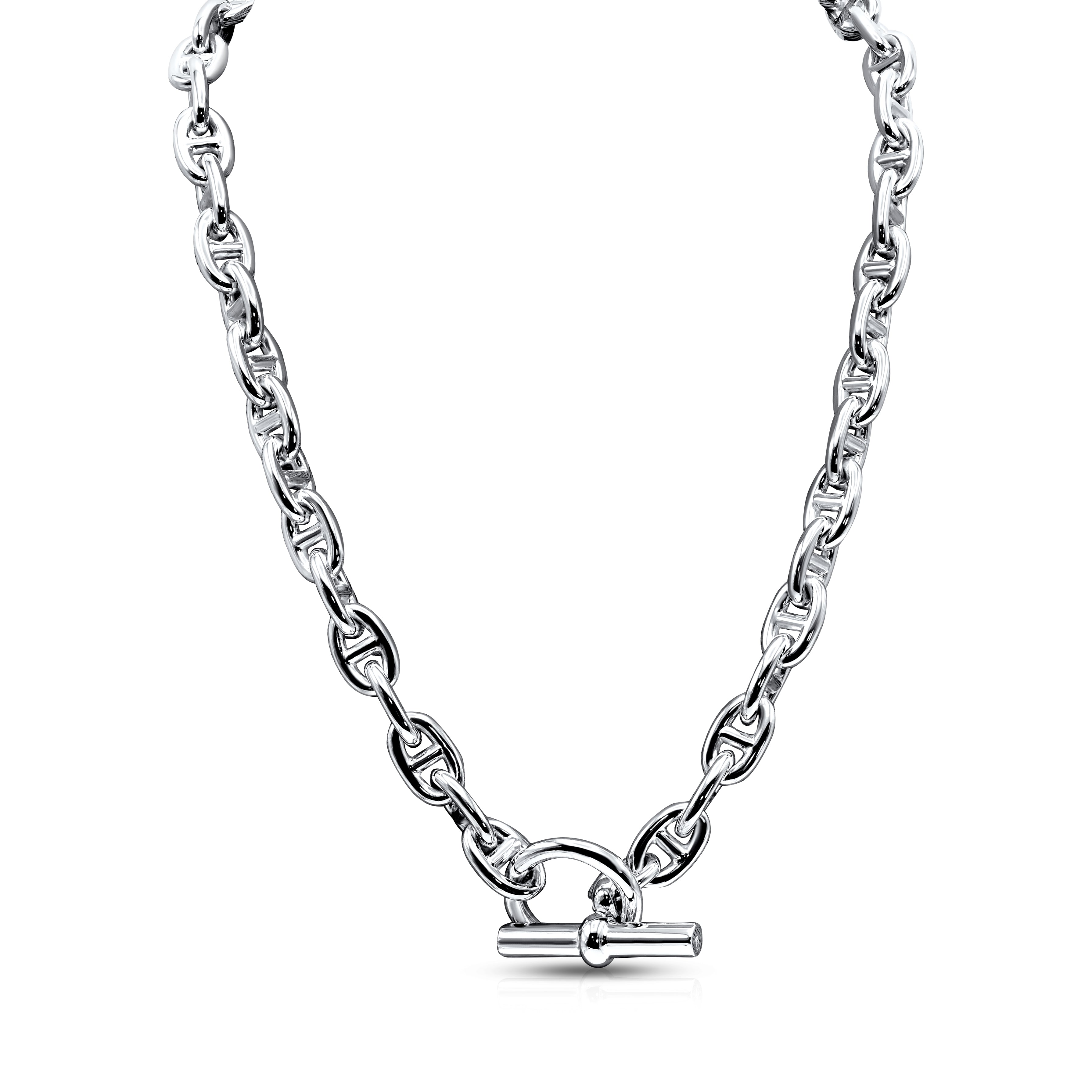 This sterling silver classic link chain gets a luxurious upgrade with an oversized toggle clasp, adding a statement-worthy detail as it keeps it in place. Inspired by the ocean and the scenic marine with its beautiful oval t-bar links, this durable, high-quality necklace is perfect for layering if desired.