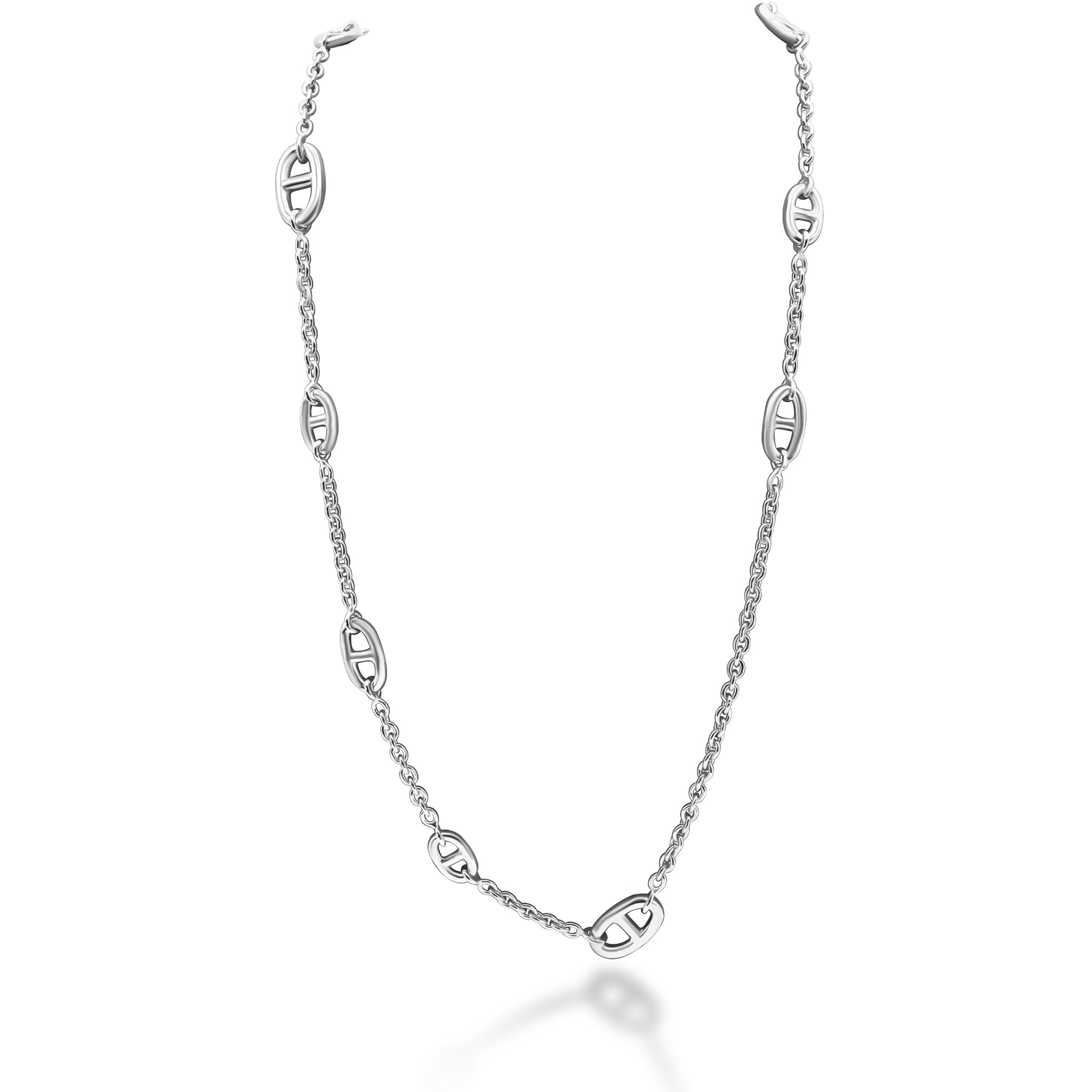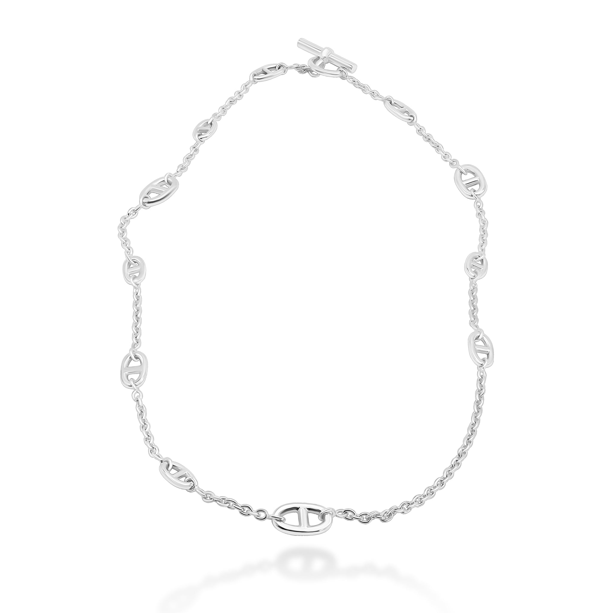 This slim, brightly polished sterling silver necklace features mariner links set on a delicate cable chain station style, giving it intervals of eye-catching asymmetry with two classic links. Finish any look with this fine quality, ultra-versatile chain, or layer it with other simple necklaces for a different style each time.
