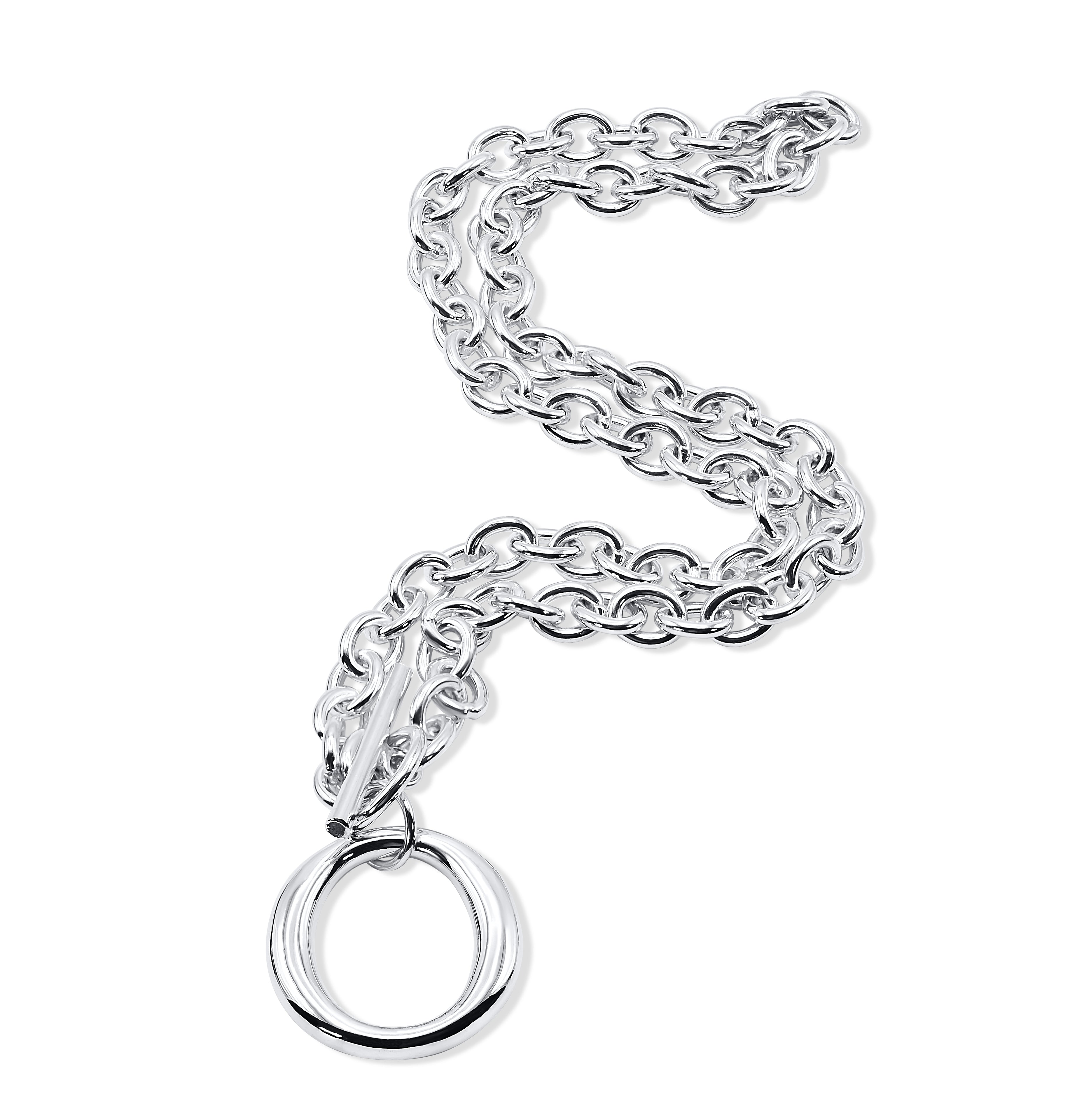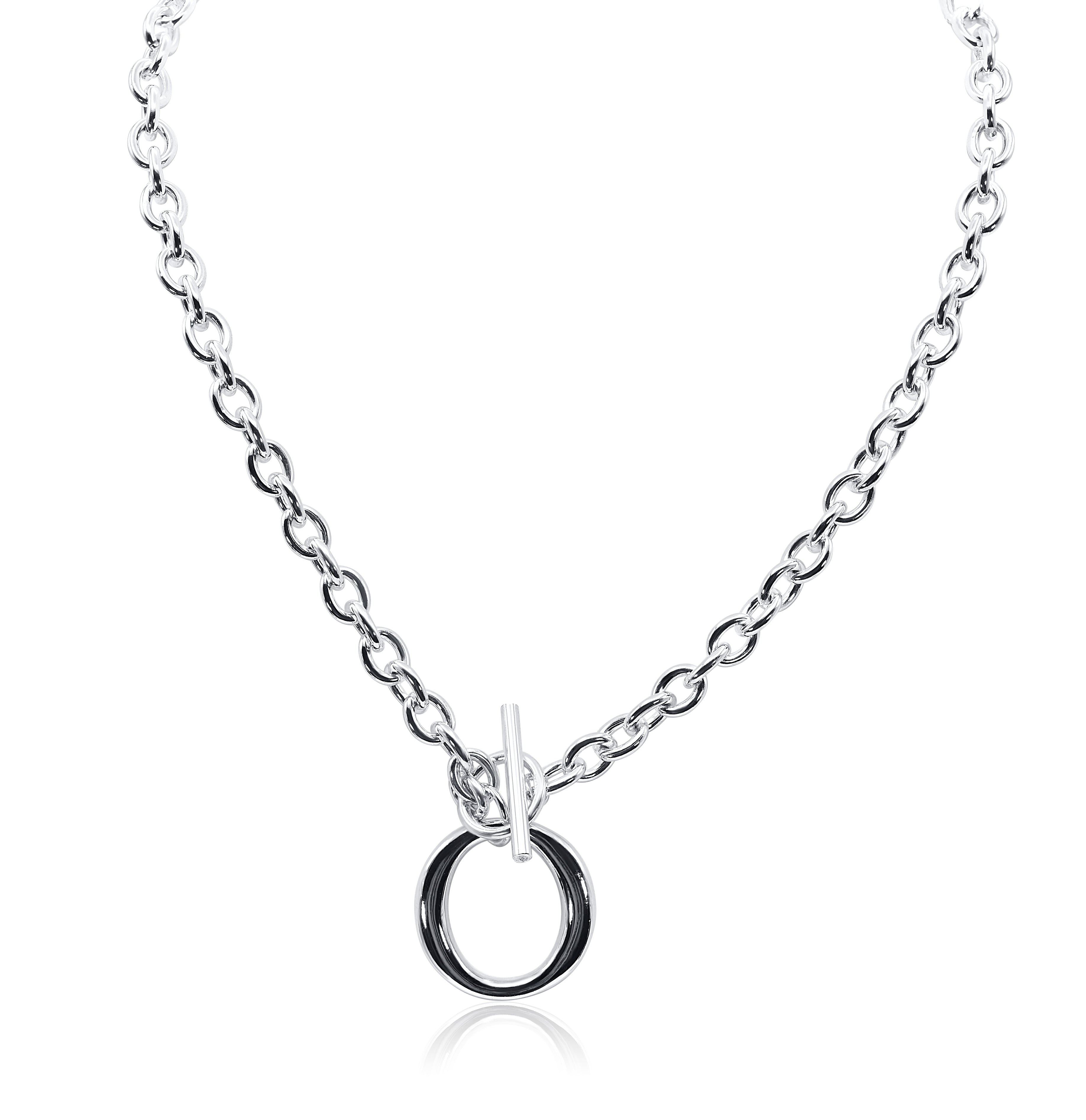 This necklace features an “O” infinity circle pendant with rich, high-quality black enamel inlay. A toggle clasp in the center keeps this chunky rolo chain necklace in place, highlighting its unique interplay of classic elegance and modern trends, all crafted in high-quality sterling silver.