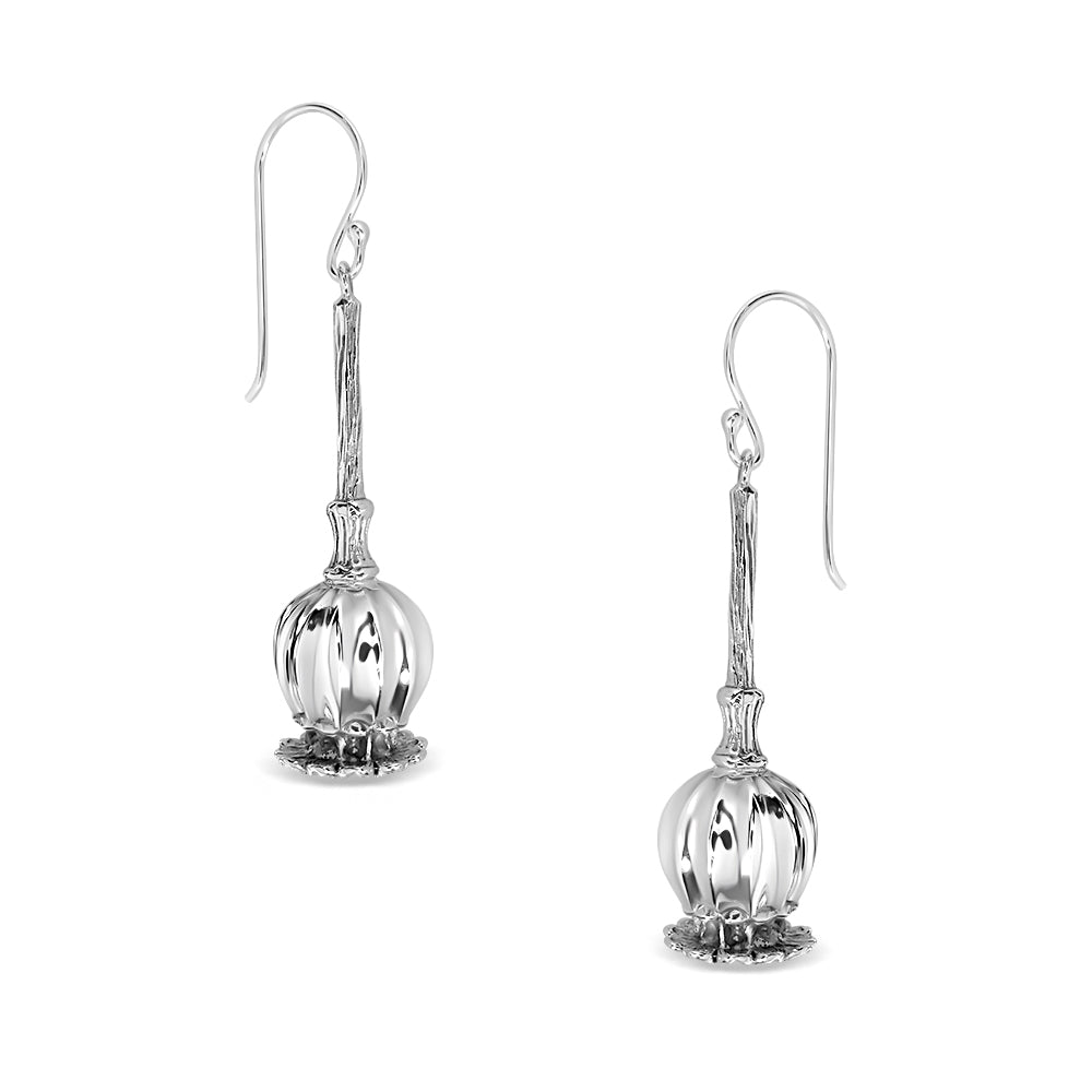 Sterling Silver Opium Flower Long Drop Oxidized Earrings