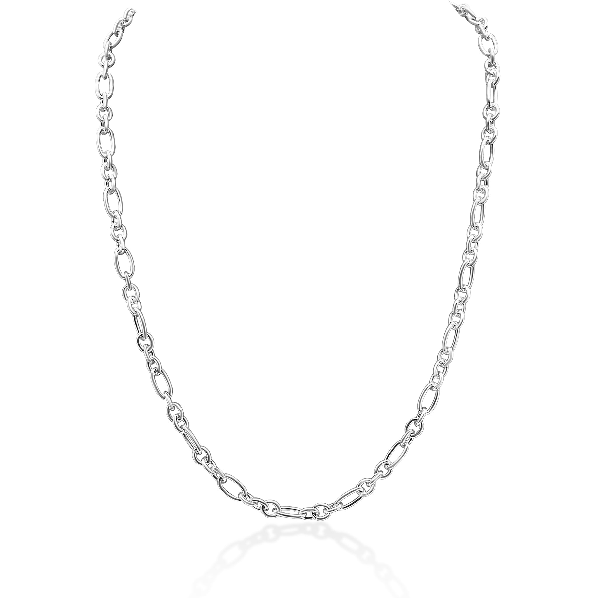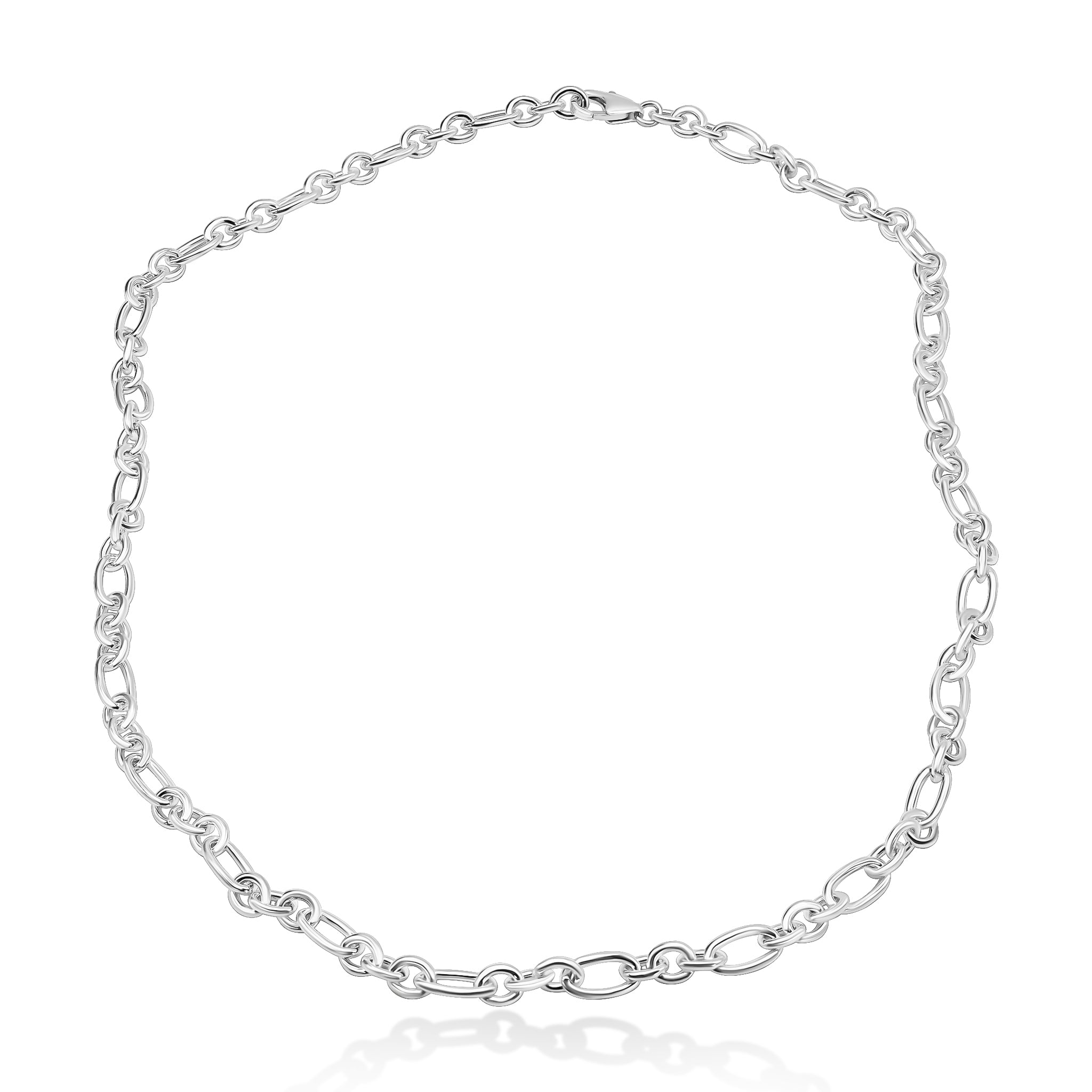 Sterling Silver Slim Oval & Round Mixed Link Cable Chain Necklace