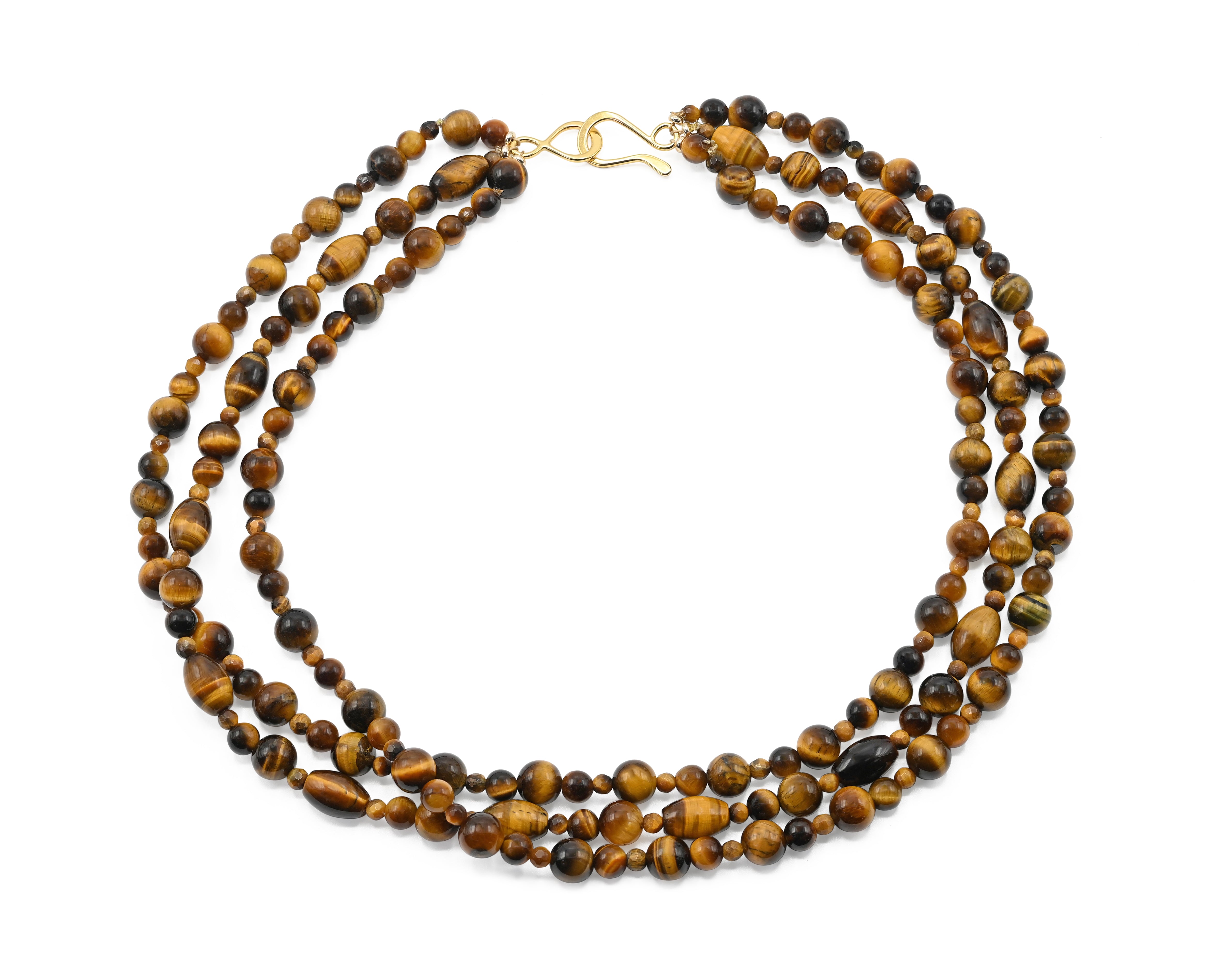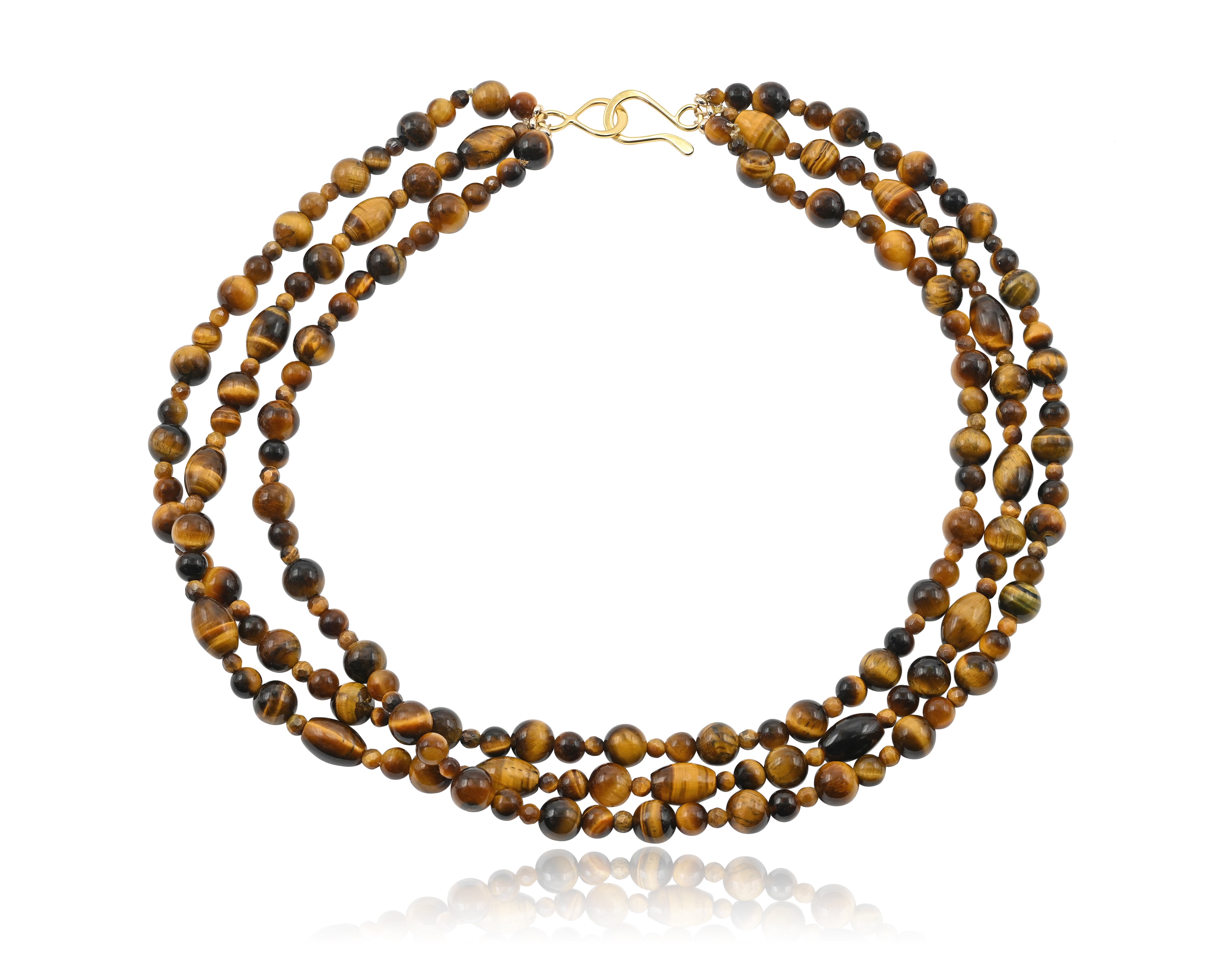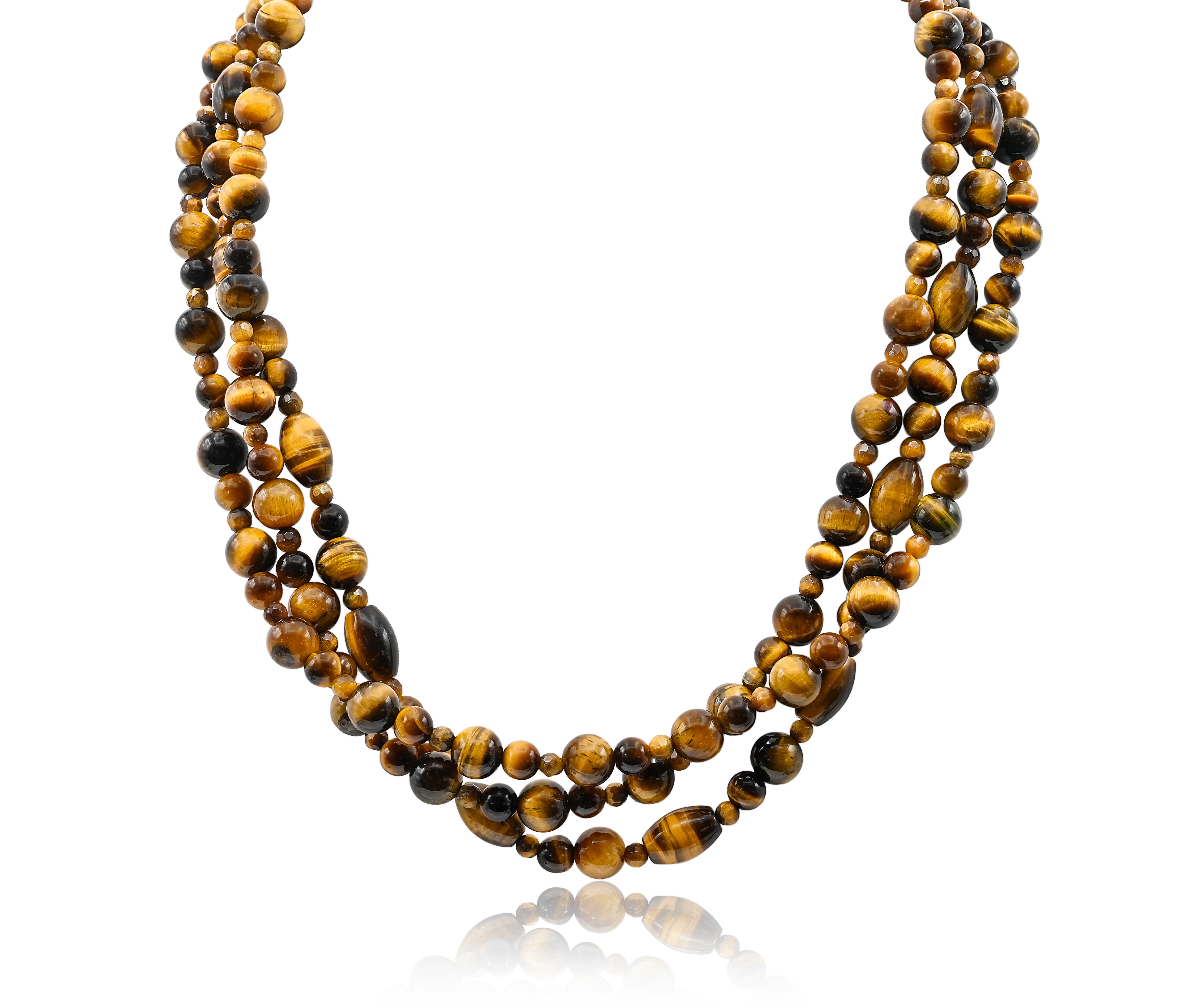 Three Stands Multi size Tiger Eye Statement Necklace.