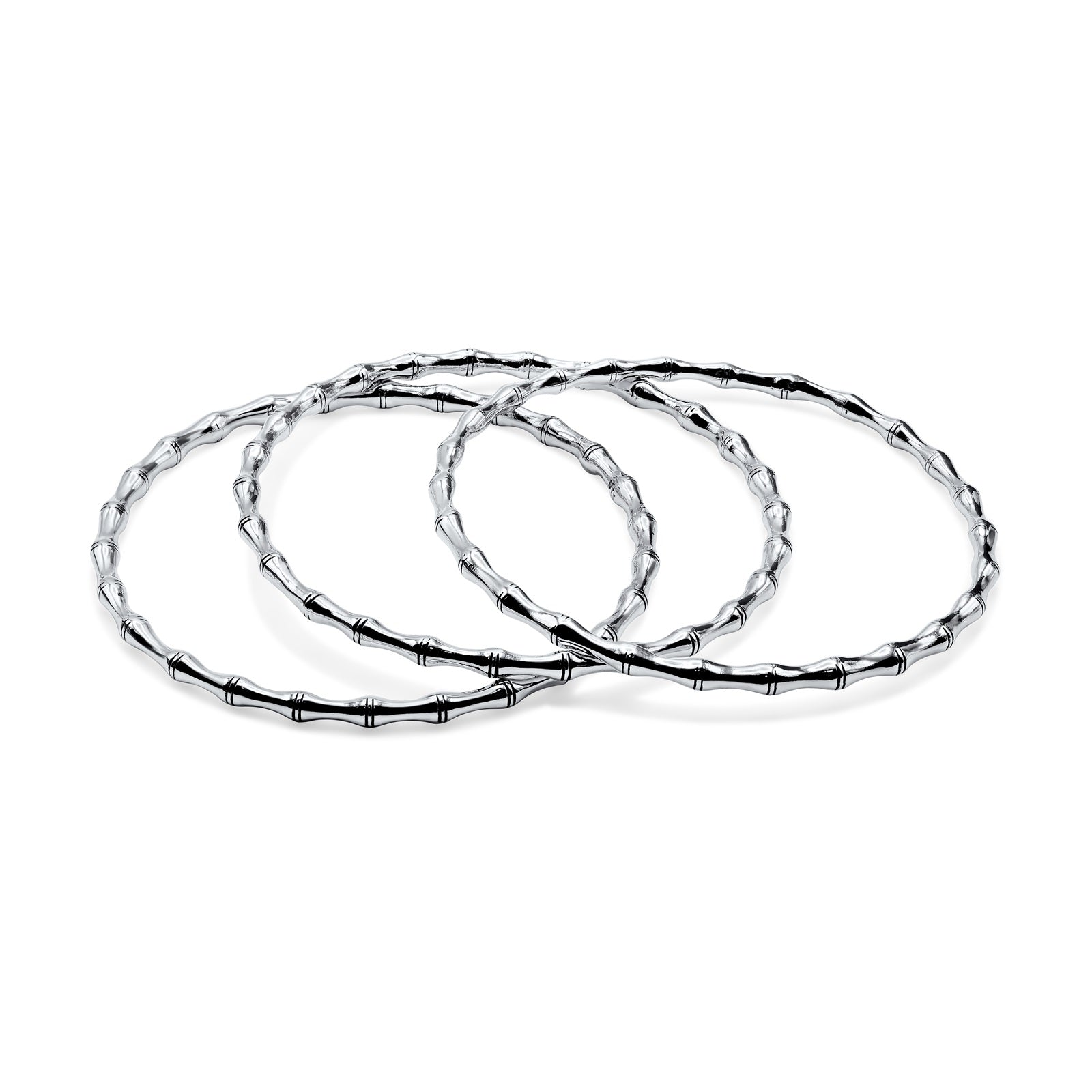 Trio of Sterling Silver Bamboo Bangle Bracelets - Set of 3