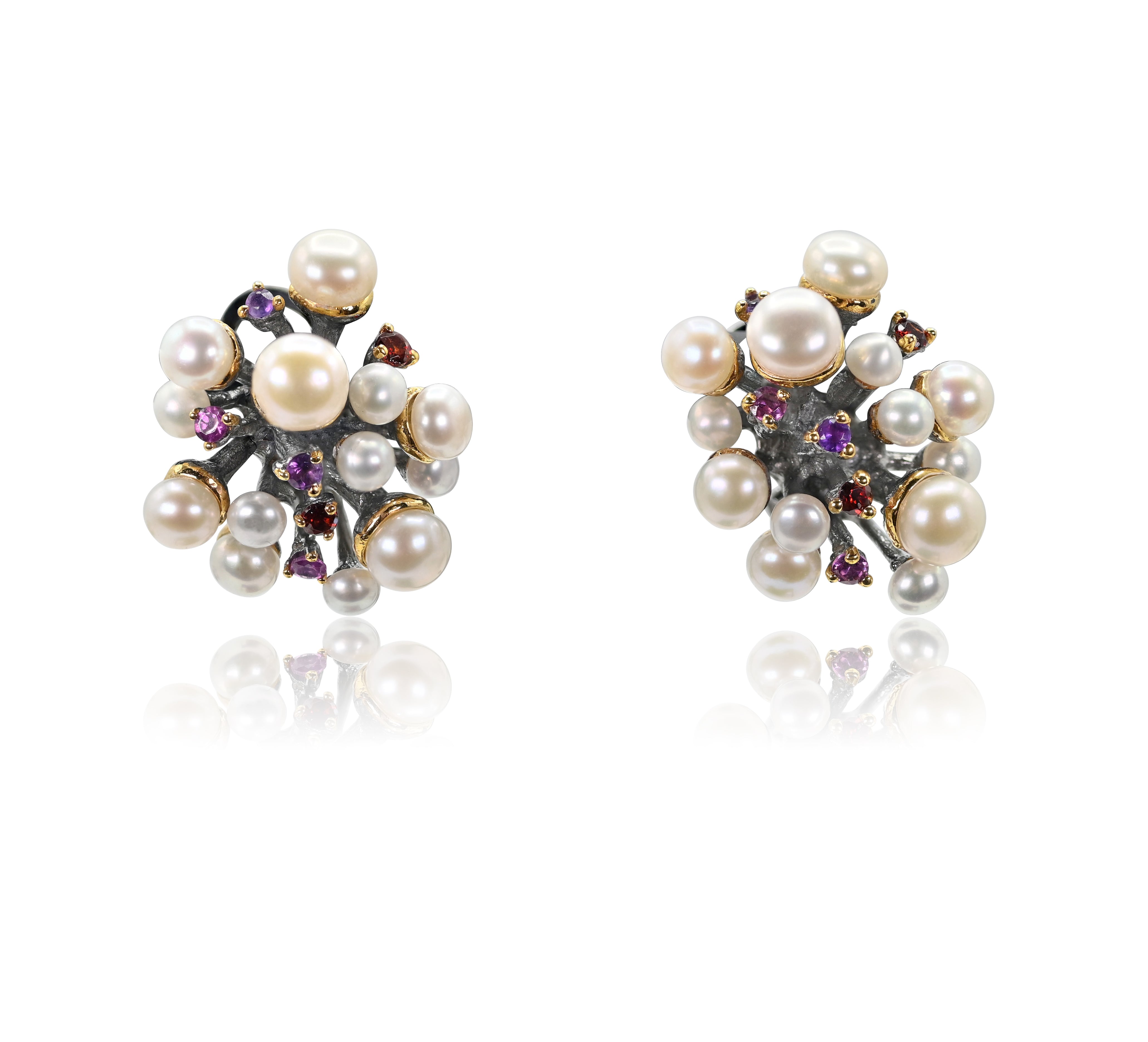 Harness the incredible beauty of the limitless sea and pure artistry with this Brutalist style ring, finely crafted in 925 sterling silver with high-quality craftsmanship and attention to the design. Shimmering white cultured pearls set on a dimensional reef-like motif elegantly bloom from a tapered, brightly polished band.
