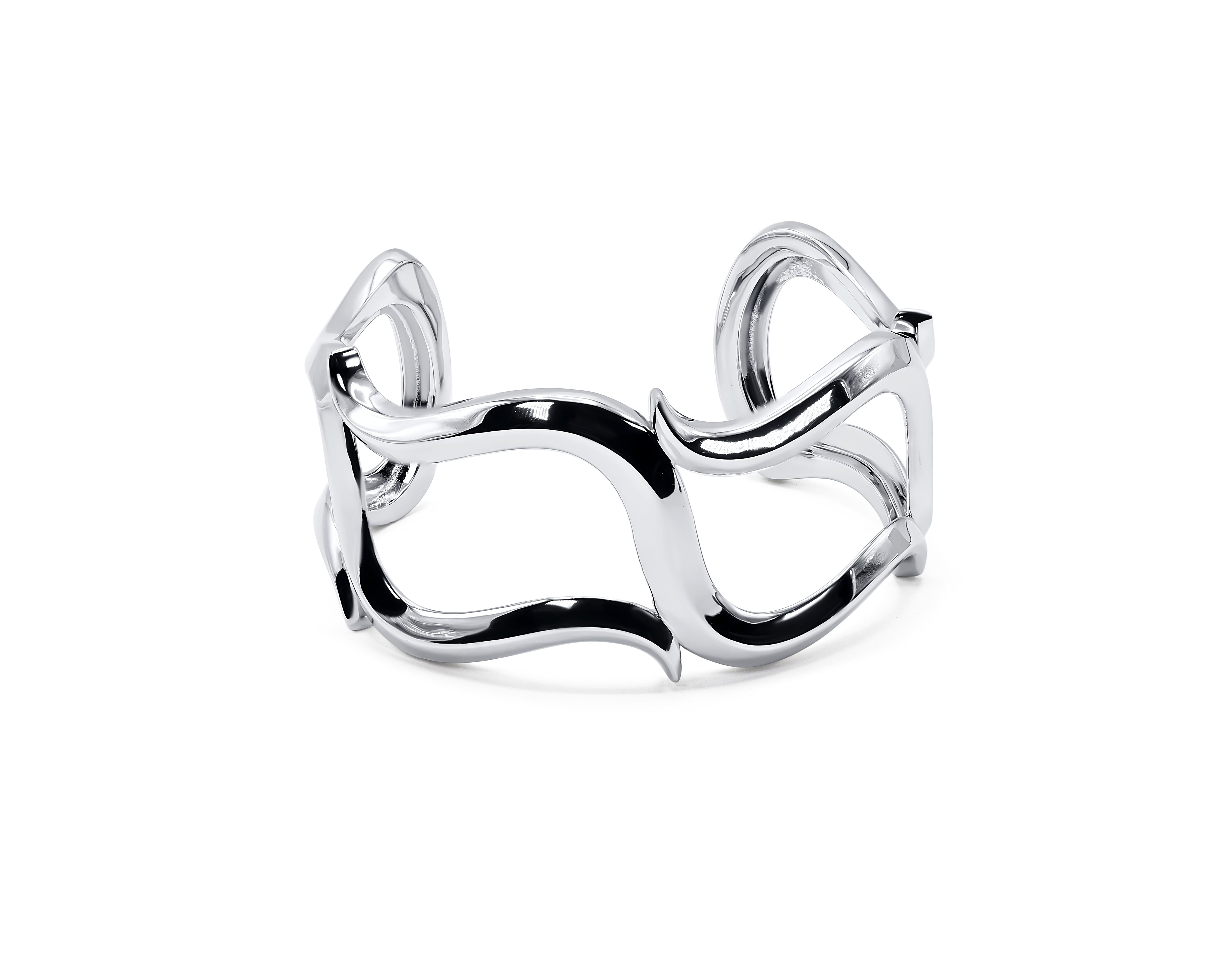 Inspired by the beach and its soothing waves, this stunning bracelet cuff captures the essence of the vibrant Manhattan Beach shoreline in a gorgeous piece of jewelry. This silver bangle features a beautifully dimensional design mimicking oceanic waves as they crash onto the sun-kissed sand, highlighting the 3D effect with its luxurious shine.