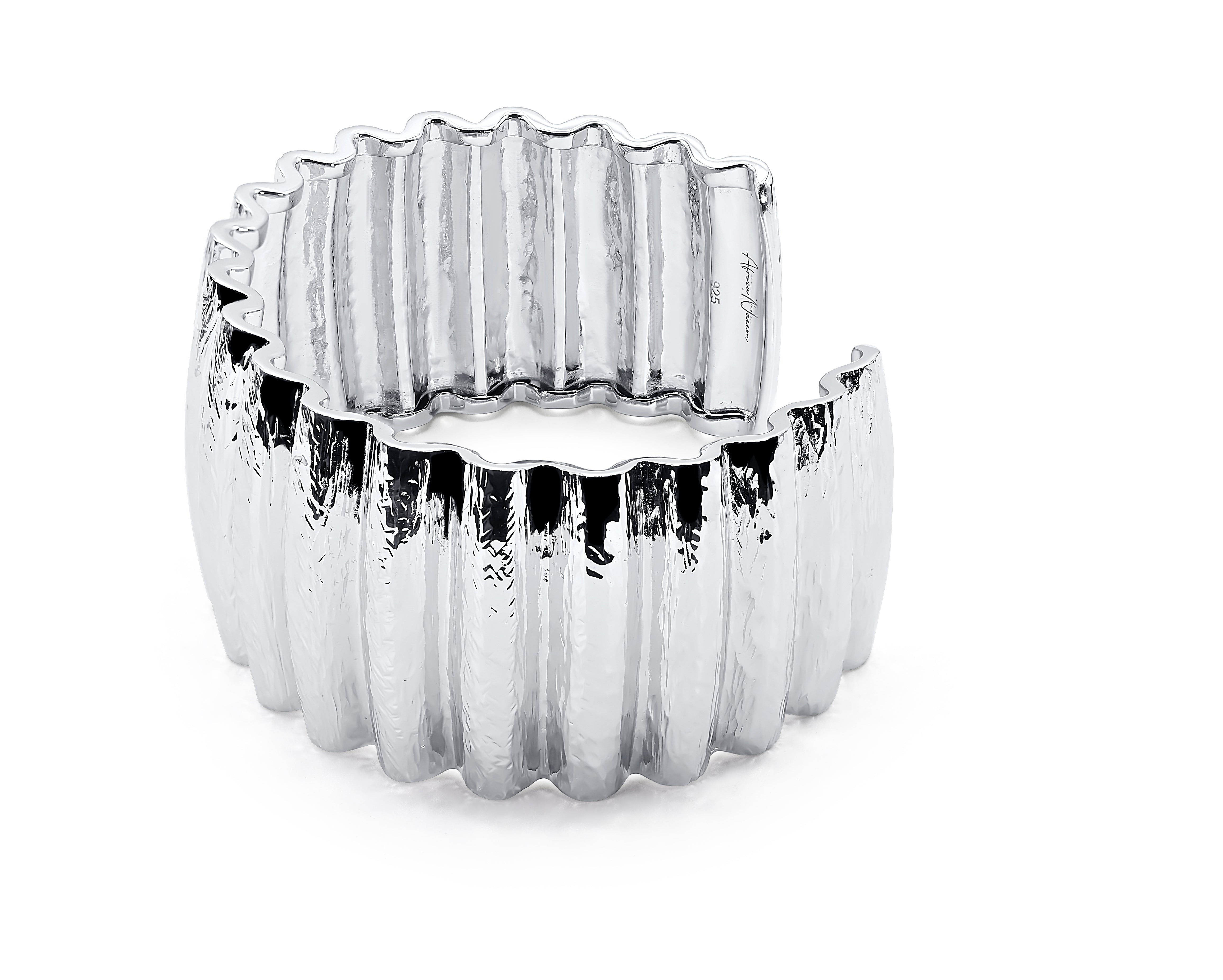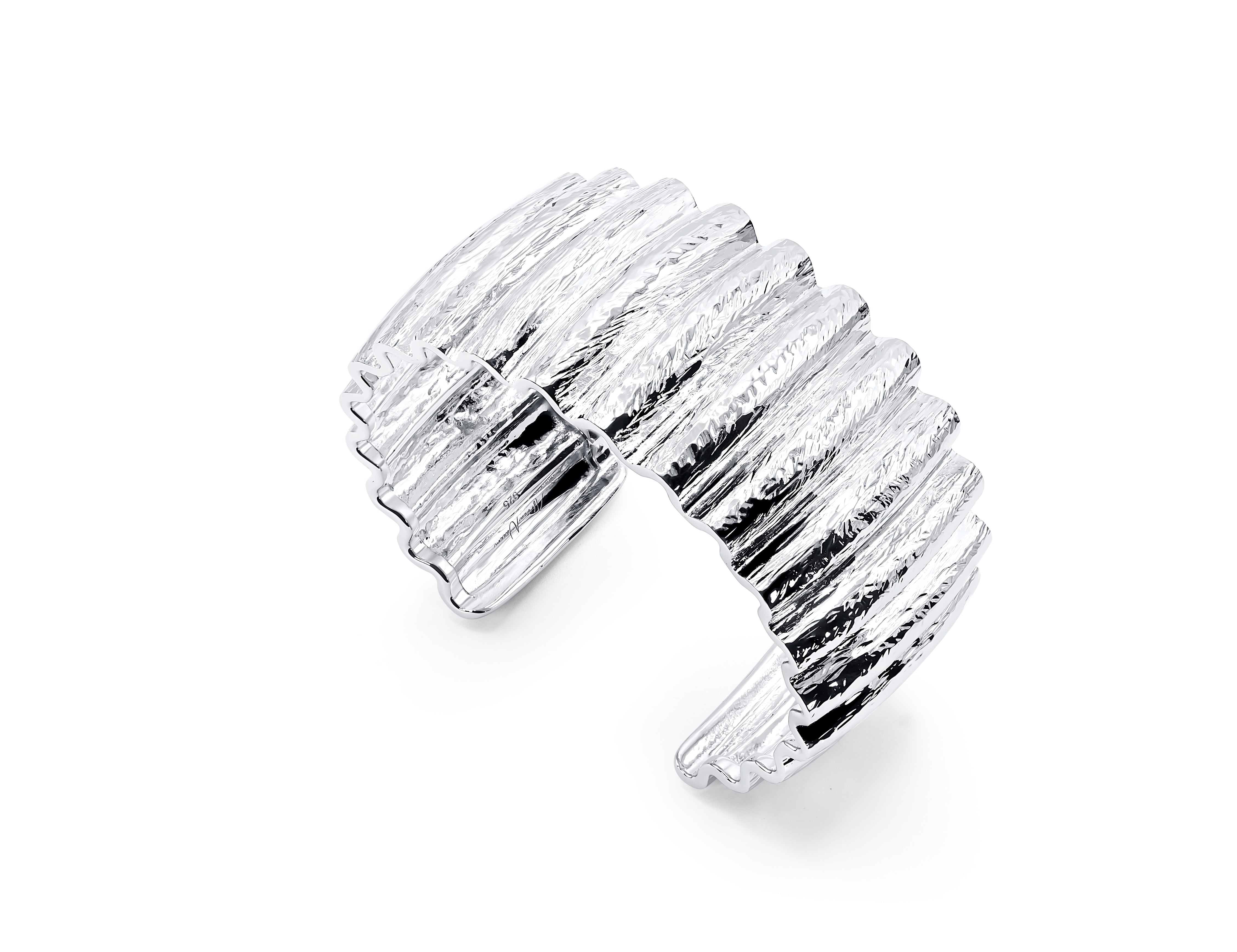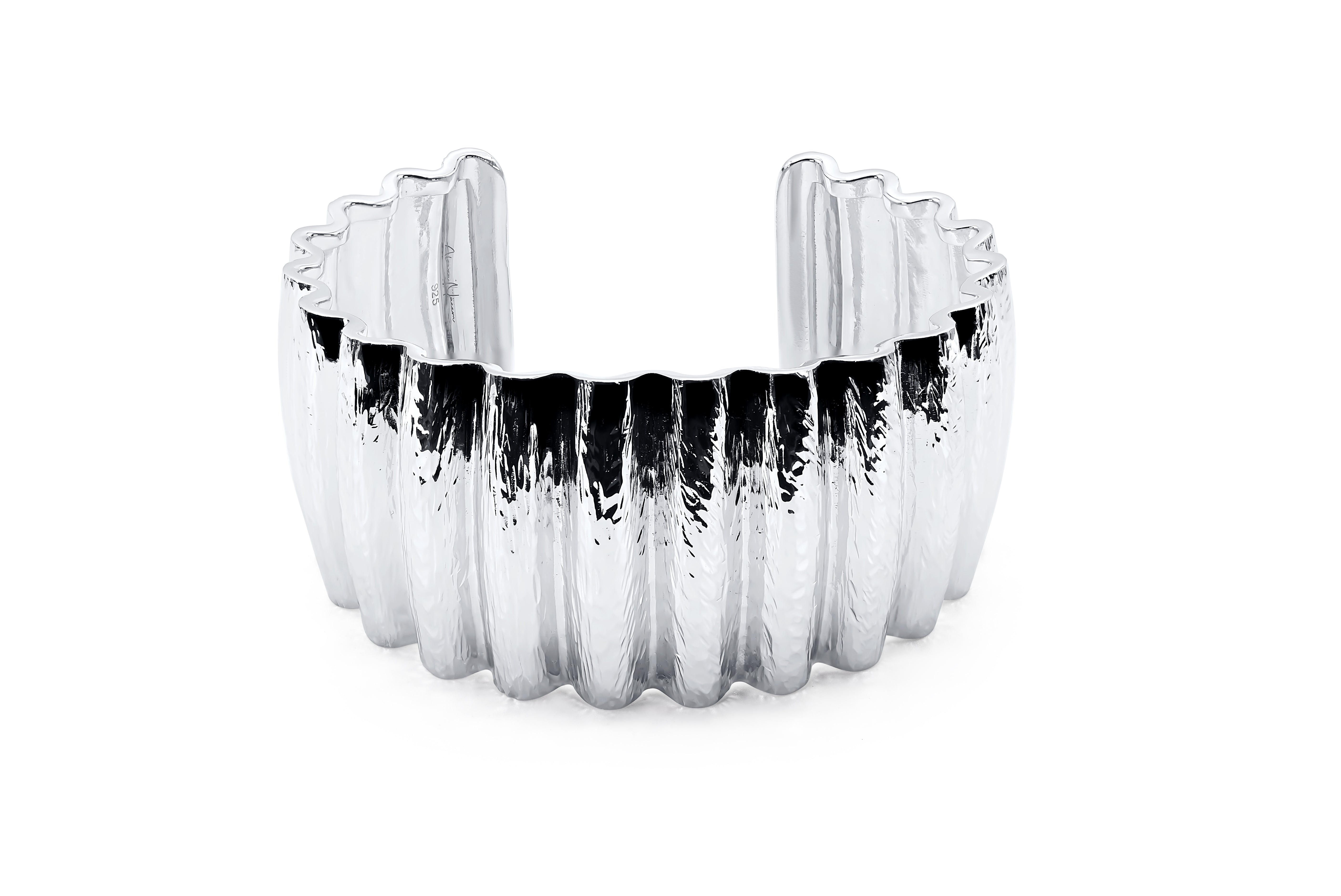 Introducing the Wide Textured Waves Sterling Silver Cuff Bracelet, a statement piece that effortlessly combines elegance and boldness. Crafted from high-quality sterling silver, this cuff bracelet features a unique wave texture that exudes contemporary style with a touch of nature-inspired beauty. Its substantial weight and wide design make it a standout accessory, perfect for those who wish to make a memorable impression. The bracelet's open cuff style ensures a comfortable fit for various wrist sizes, while its polished finish adds a captivating shine. Whether worn alone or paired with other pieces, this sterling silver cuff is ideal for any occasion, from casual outings to formal events, adding a touch of sophistication to any ensemble.