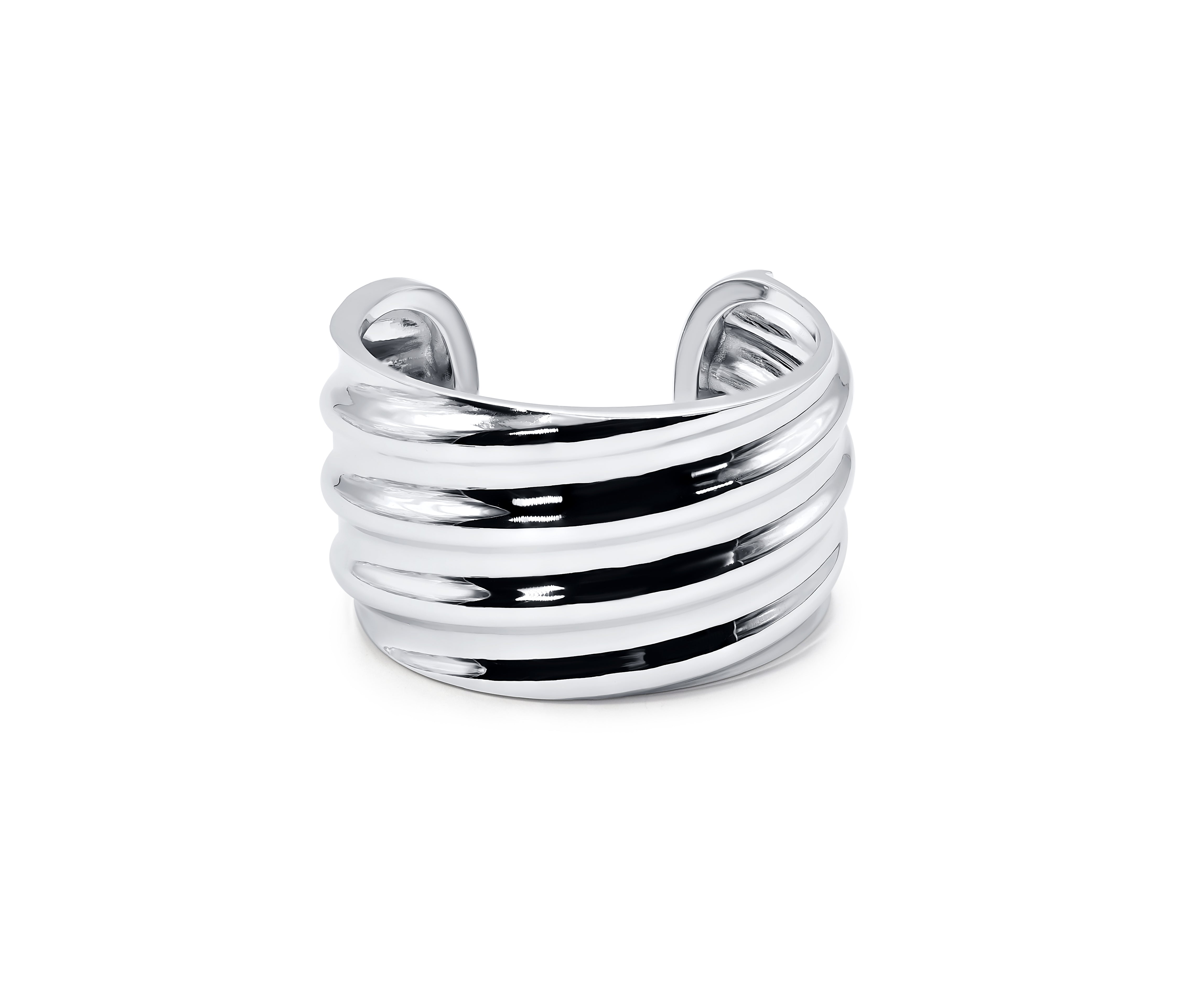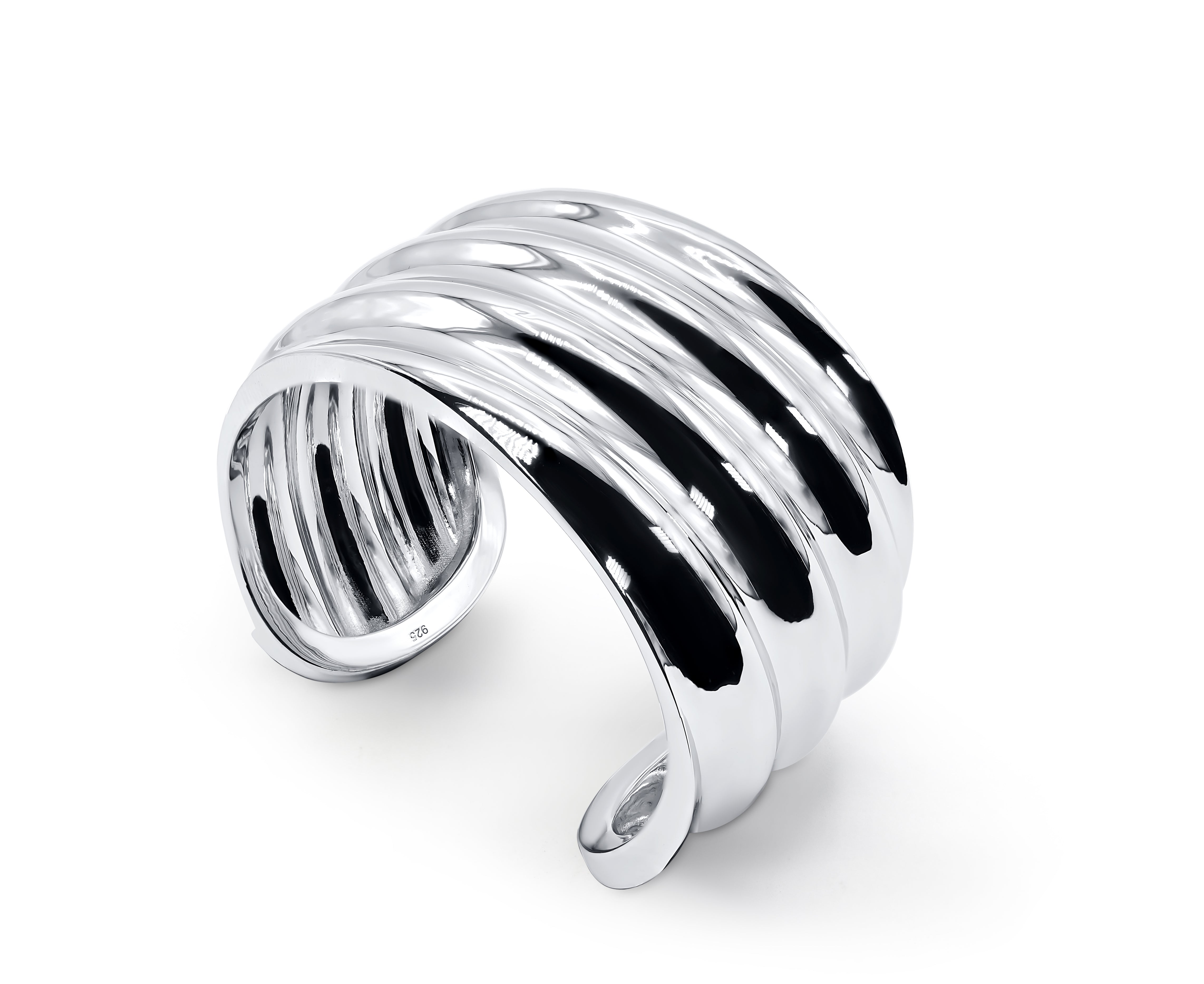 Elevate your style with the Very Wide Waves High Polish Sterling Silver Rhodium Plate Statement Cuff Bracelet. This exquisite piece is crafted from high-quality sterling silver and finished with a sleek rhodium plating, ensuring lasting shine and resistance to tarnish. The bracelet's wide, wave-inspired design commands attention, making it an ideal statement piece for any occasion. Its heavy-duty construction speaks to its durability, while the high polish finish adds a touch of elegance and sophistication. Perfect for those who appreciate bold, contemporary jewelry, this cuff bracelet effortlessly complements both casual and formal ensembles, adding a unique flair to your accessory collection.