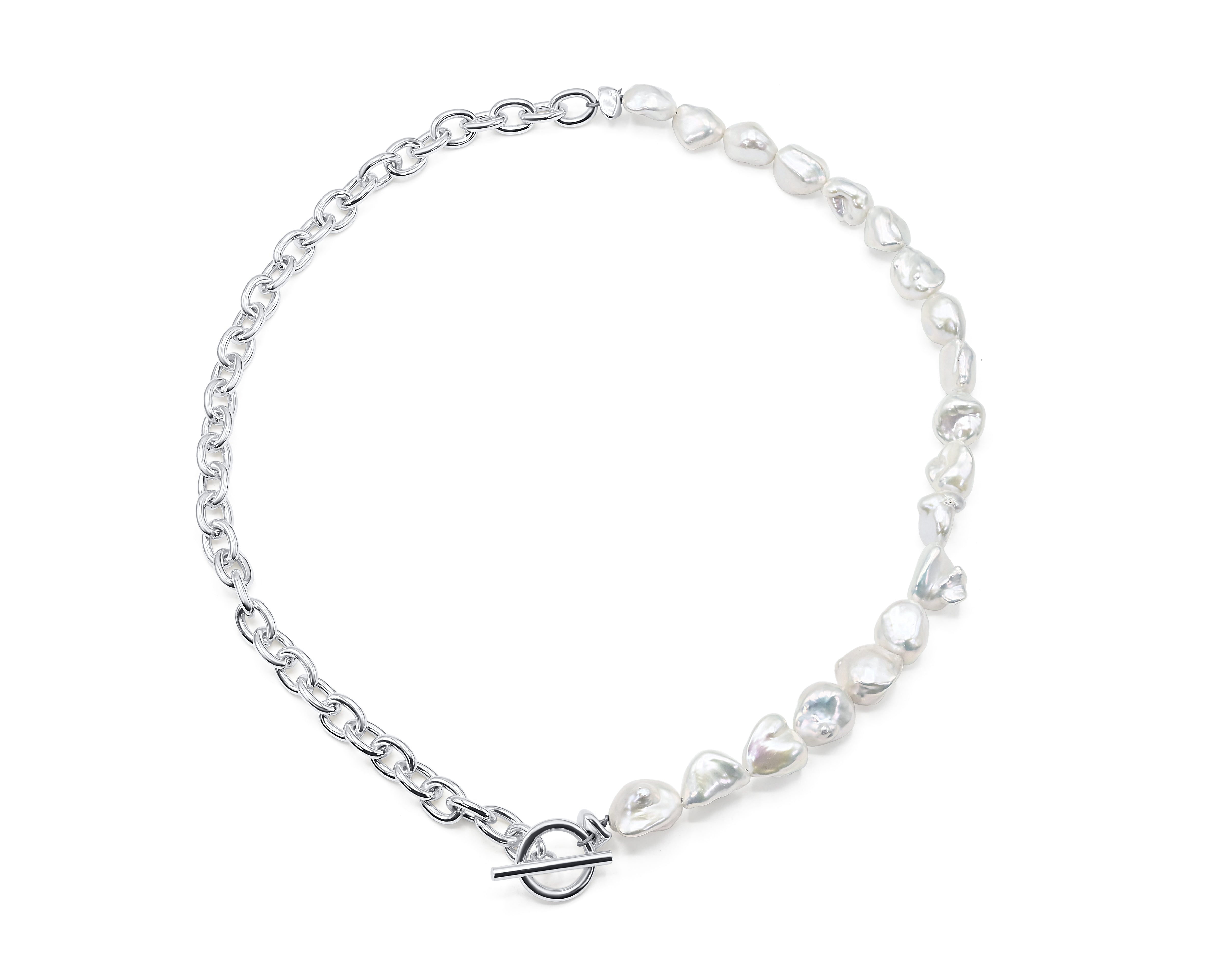 10mm wide oval link chain and 12-14mm Keshi pearl.